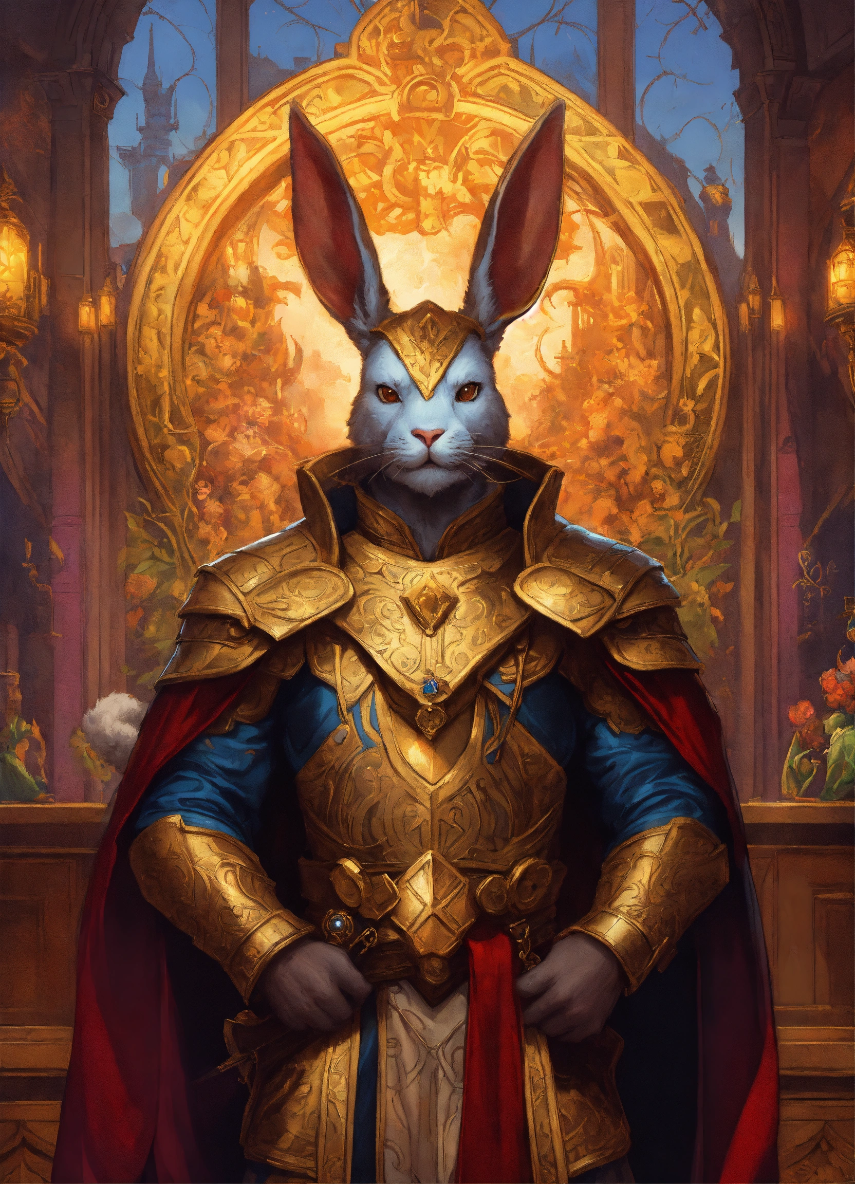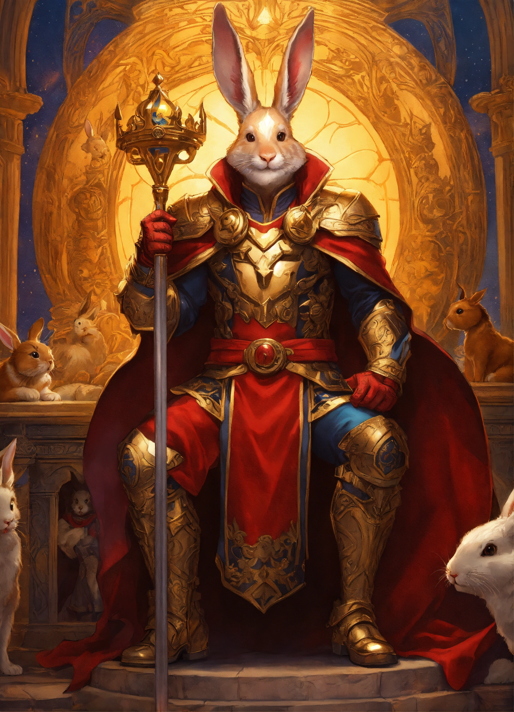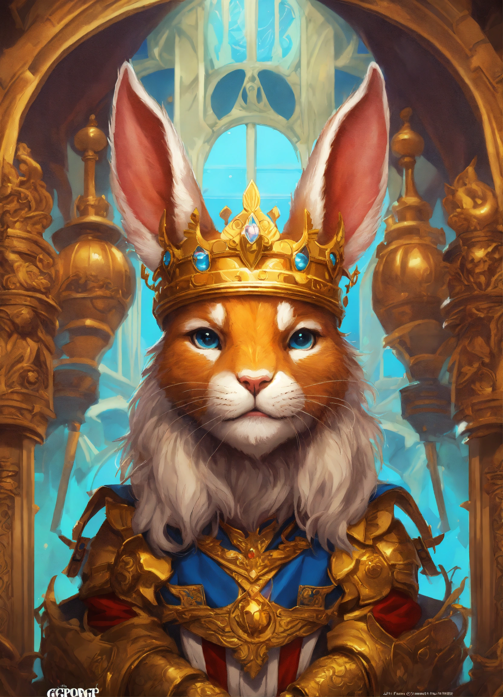 King with two rabbit ear, fantasy, fable, disney style, intricate insanely detailed, george perez art, jim lee art, artgerm, artstation, jordan grimmer art