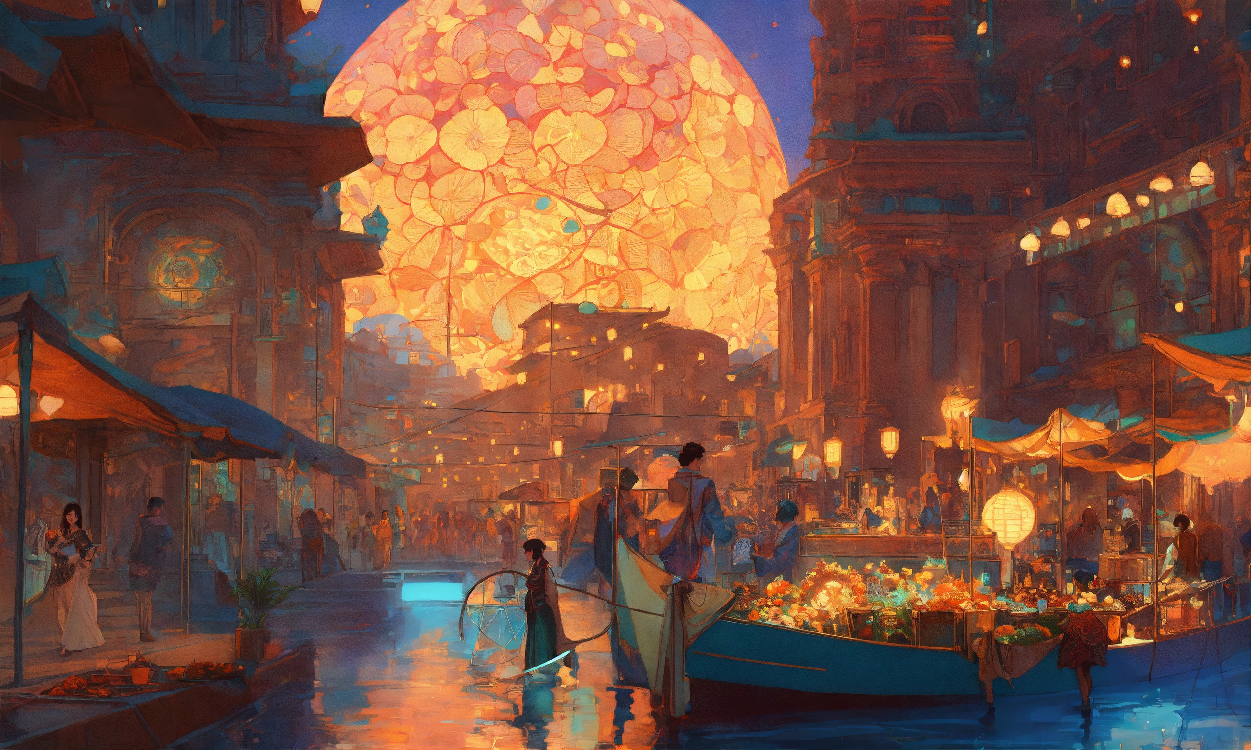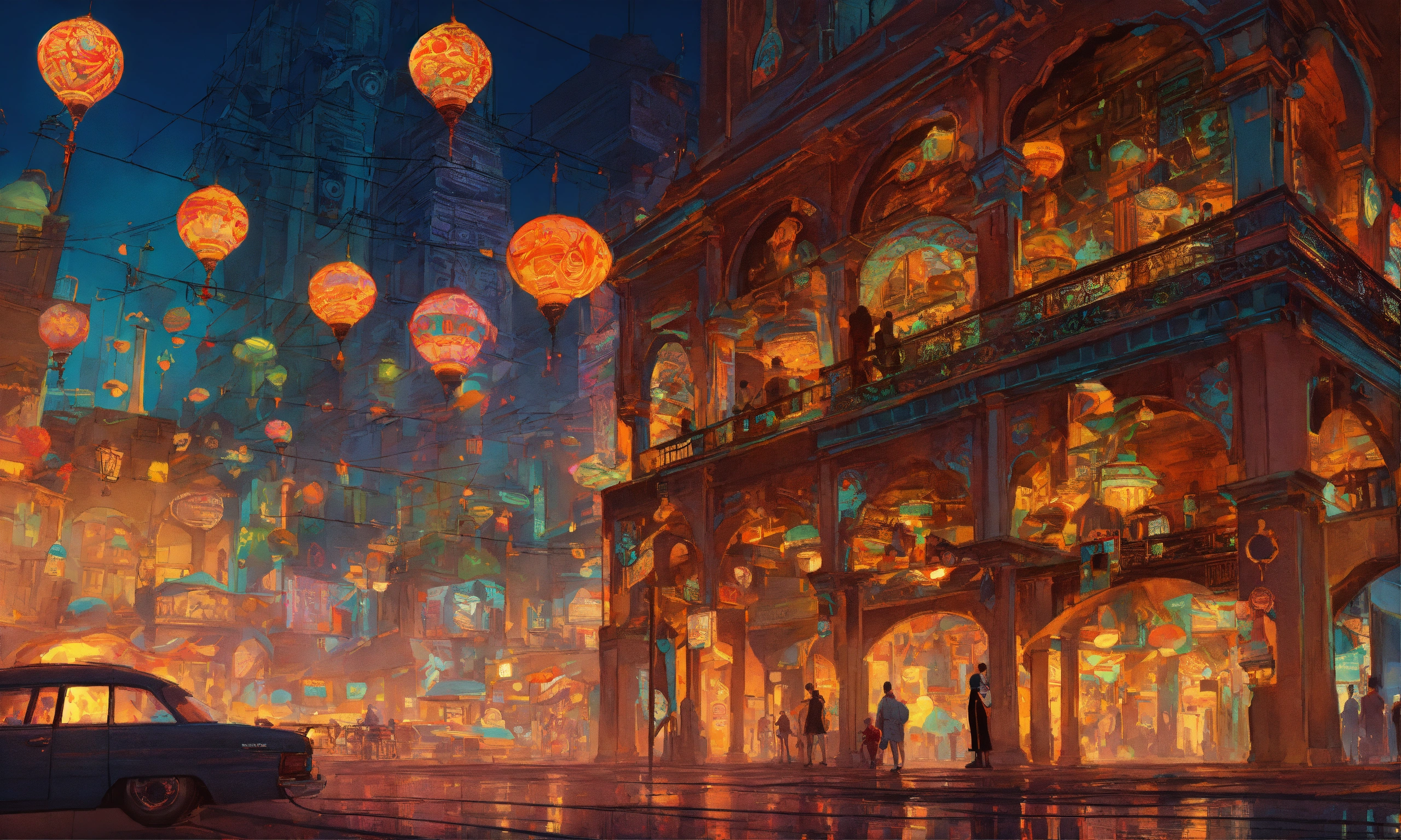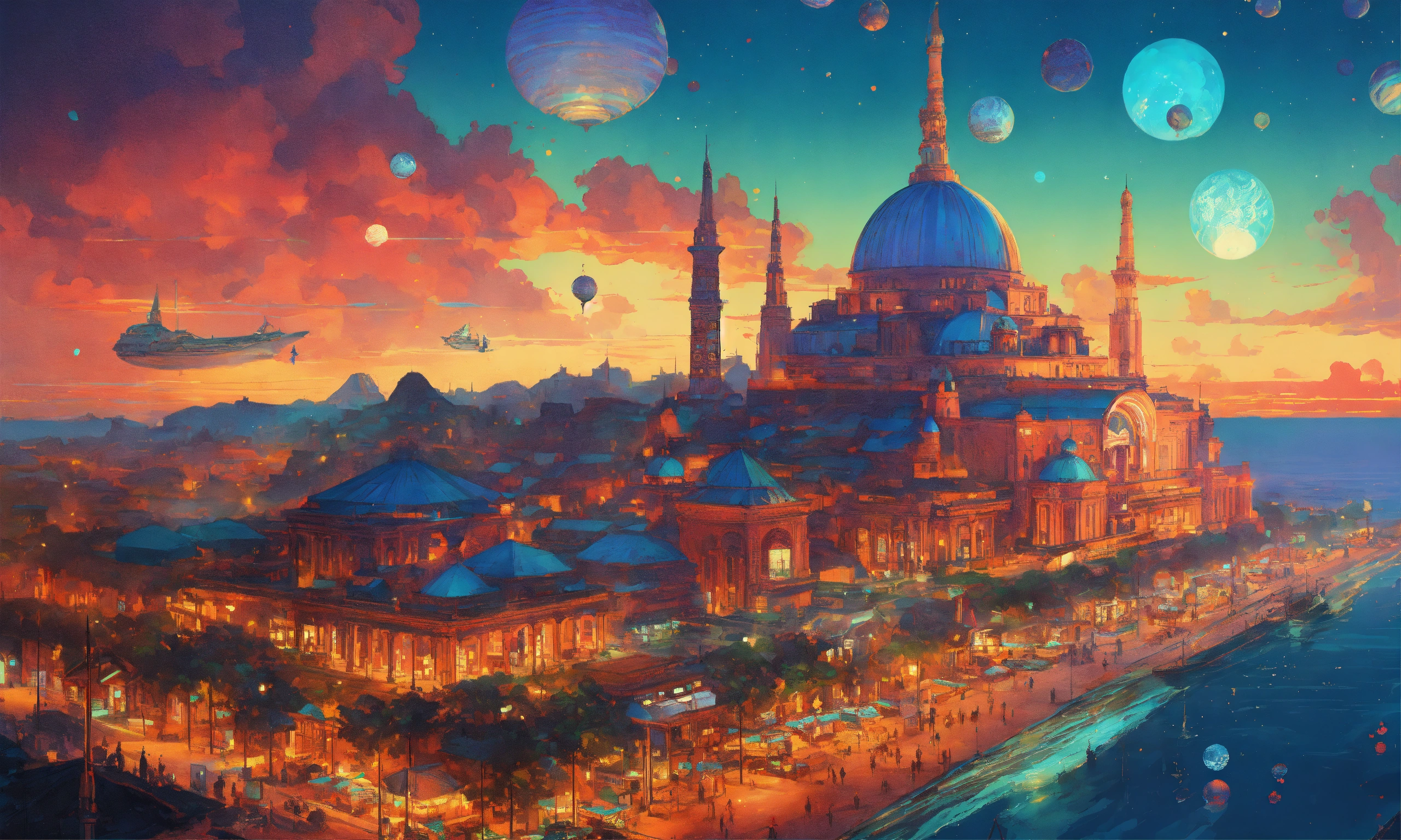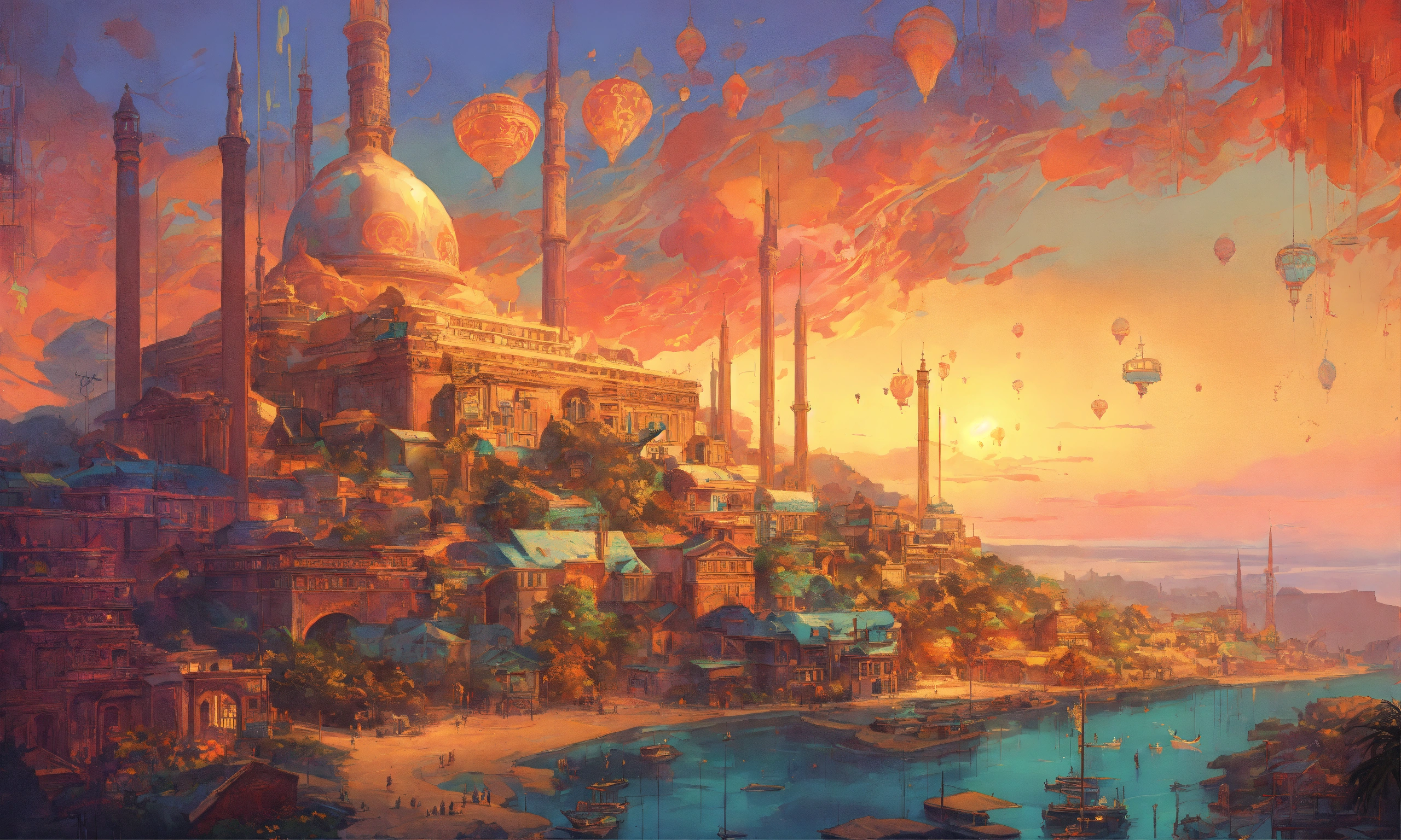 Fantasy city, egyptian architecture, ernst haeckel maria sibylla merian. tristan eaton, victo ngai, artgerm, rhads, ross draws, kaethe butcher, hajime sorayama, greg tocchini, virgil finlay, fantasy, colors, neon lights, digital painting, pixiv, by ilya kuvshinov, neon lights, 3d, perspective