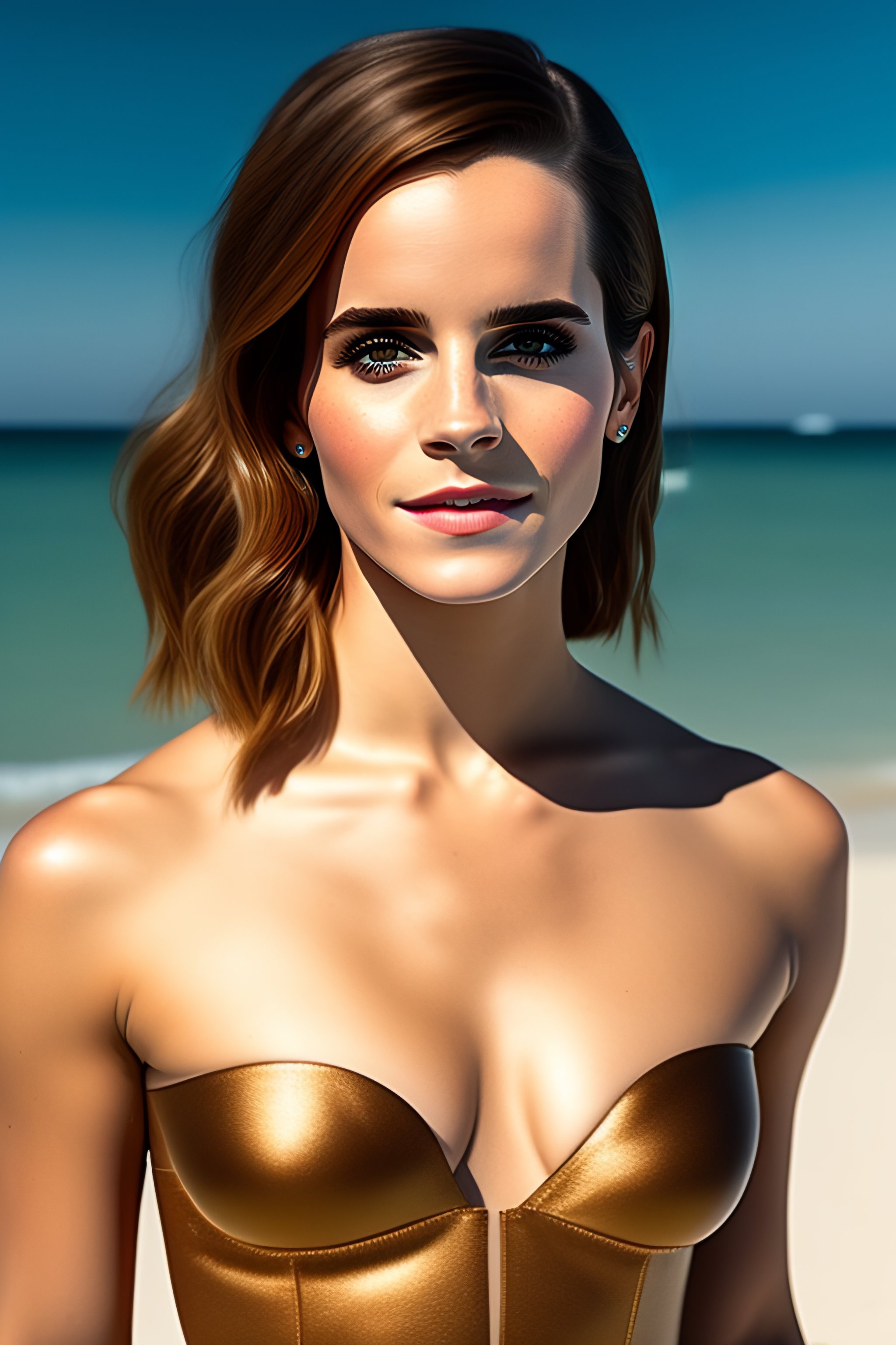 Emma watson wearing a plastic see thru tube top tanning on the beach