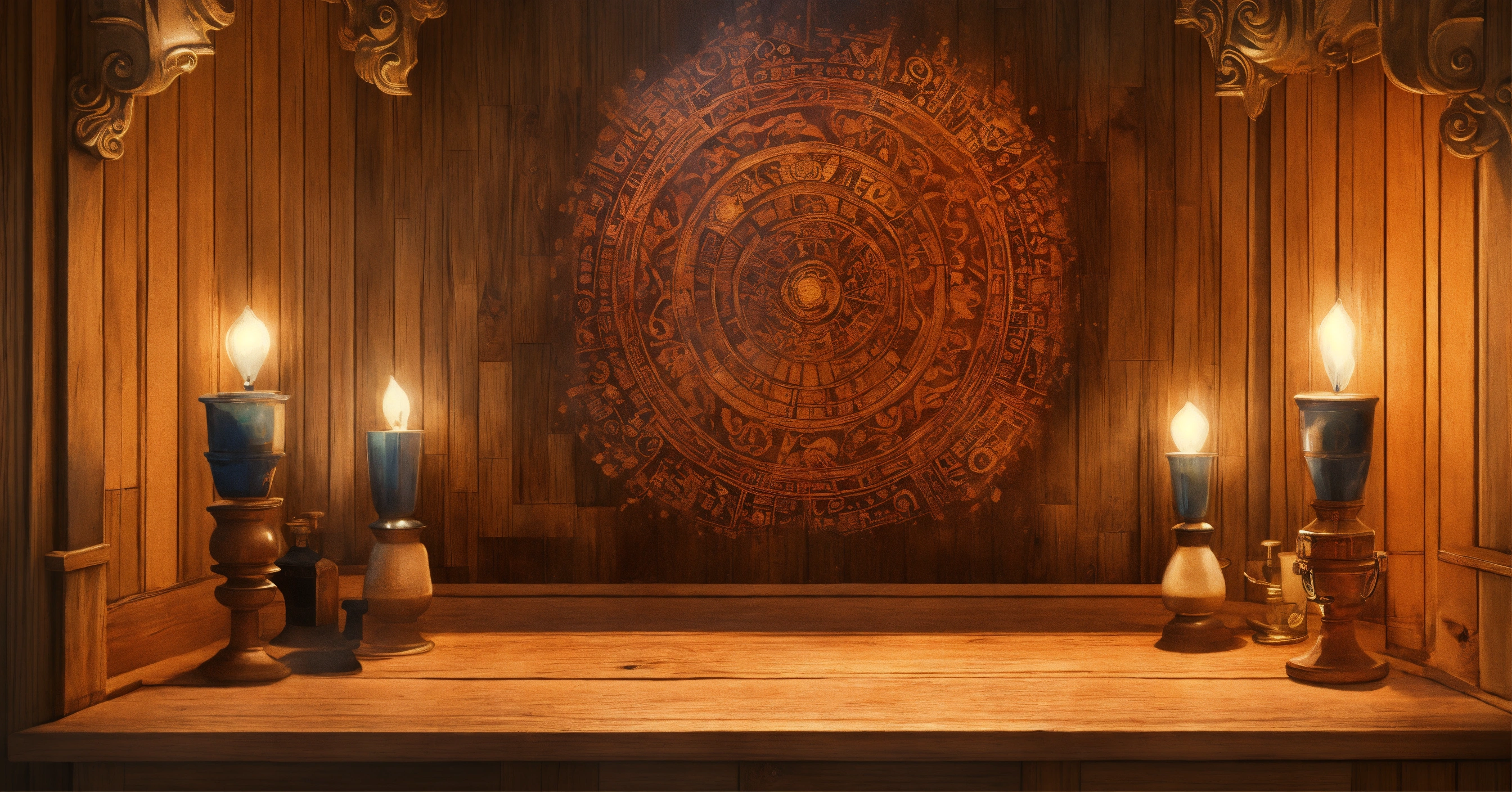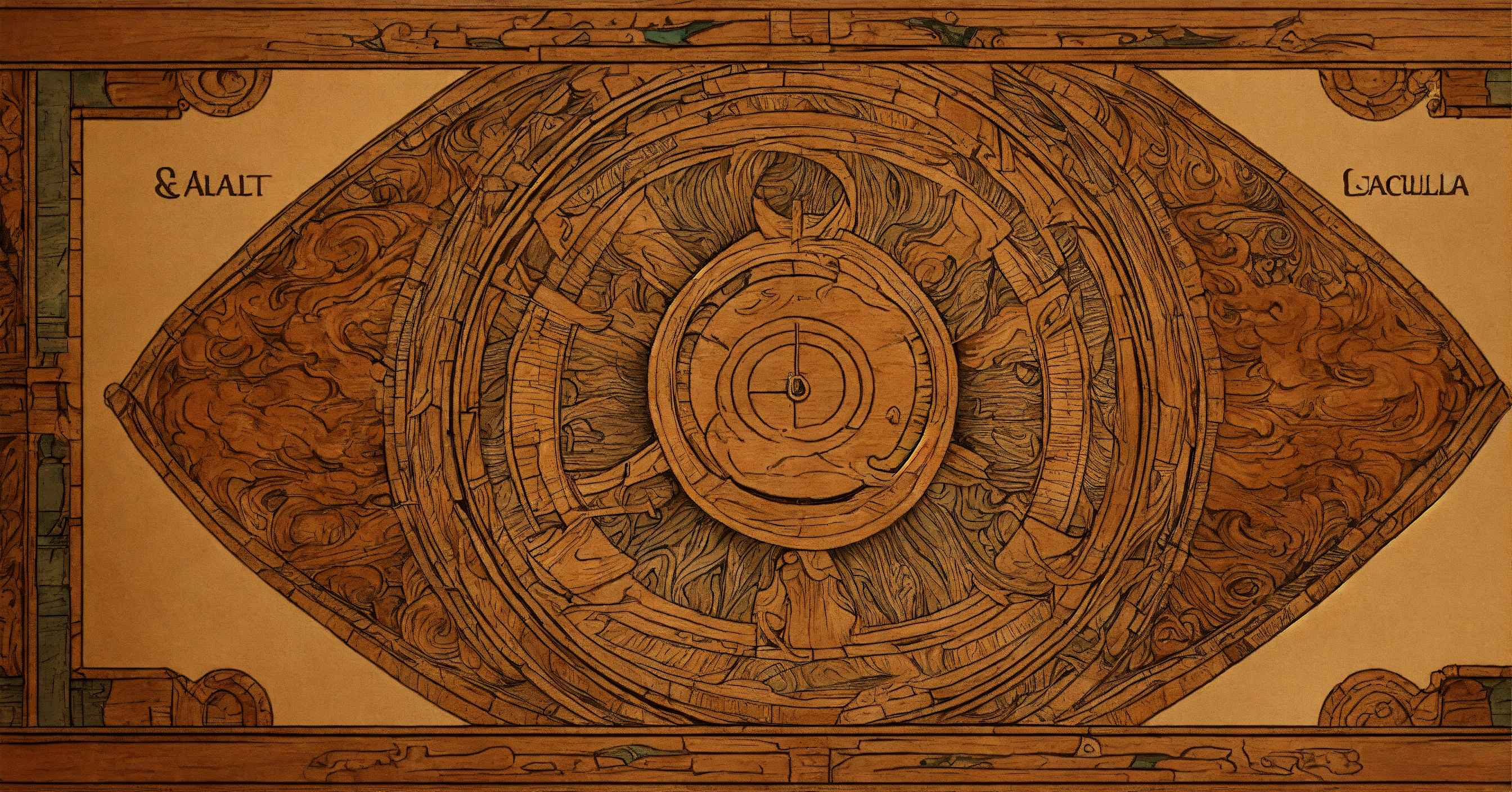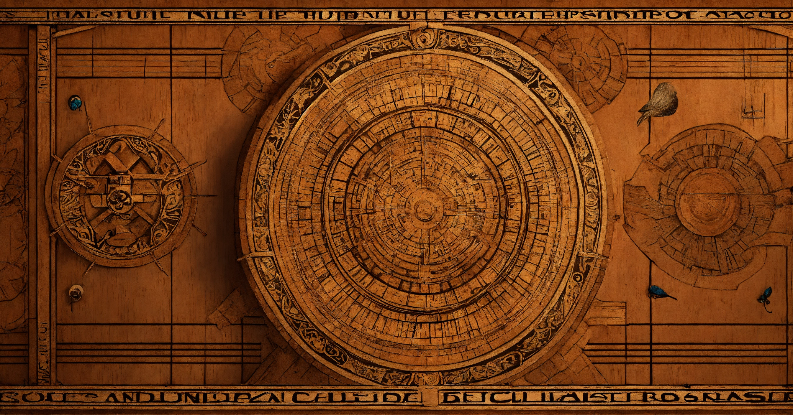Dame una ilustración tipo poster como de escritos antiguos y estilo ocultista de madera tallada esculpida muy detallada y realista