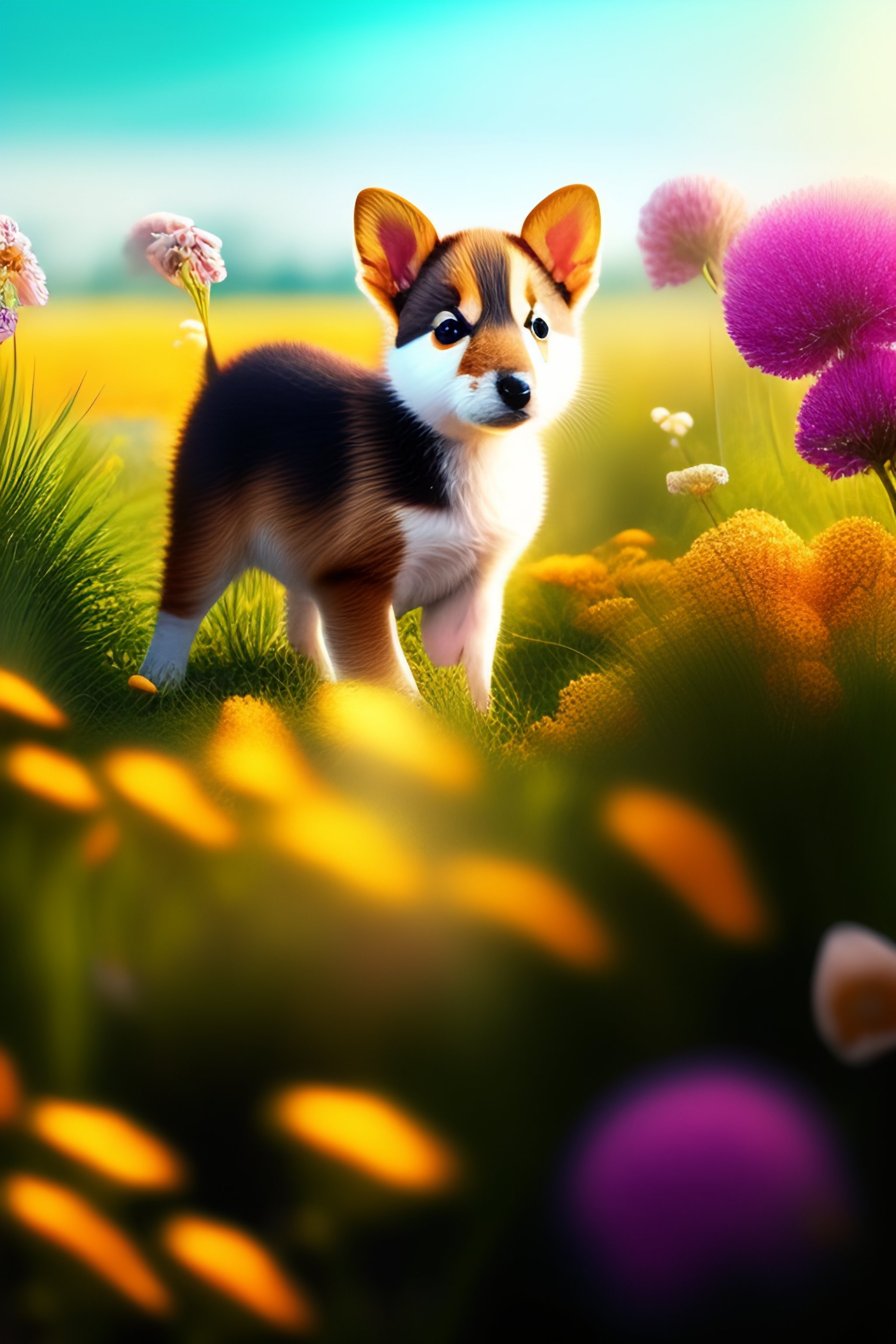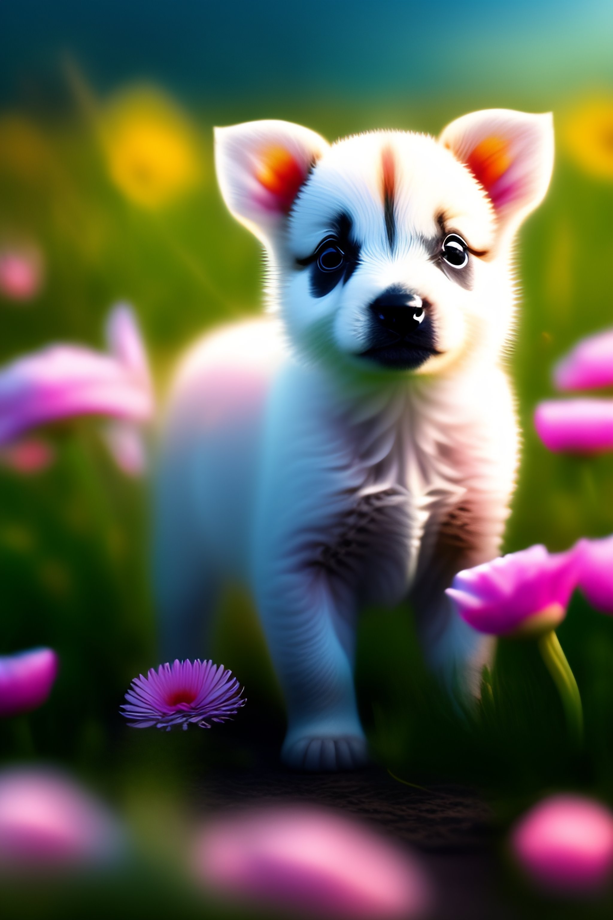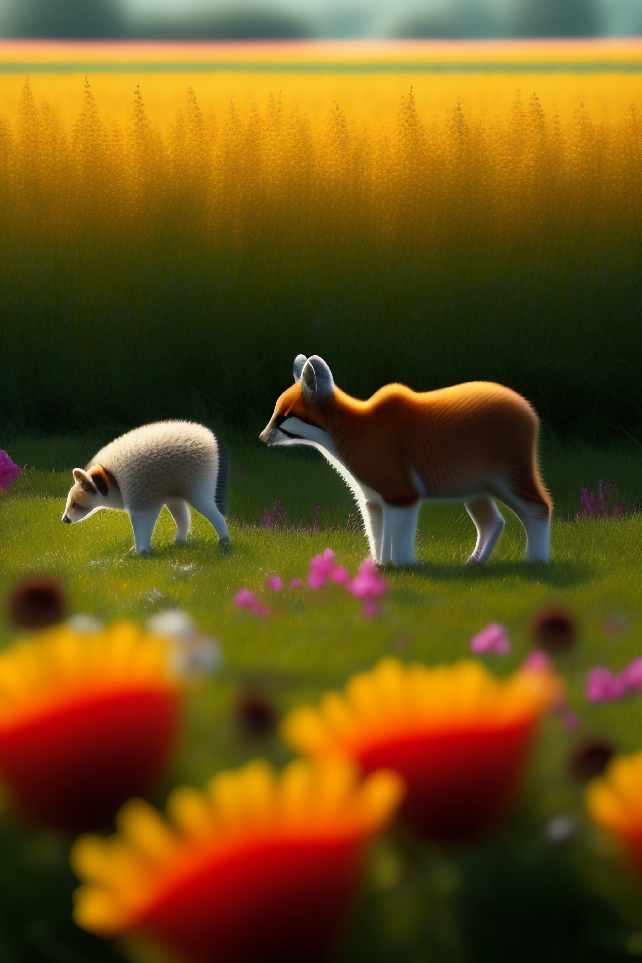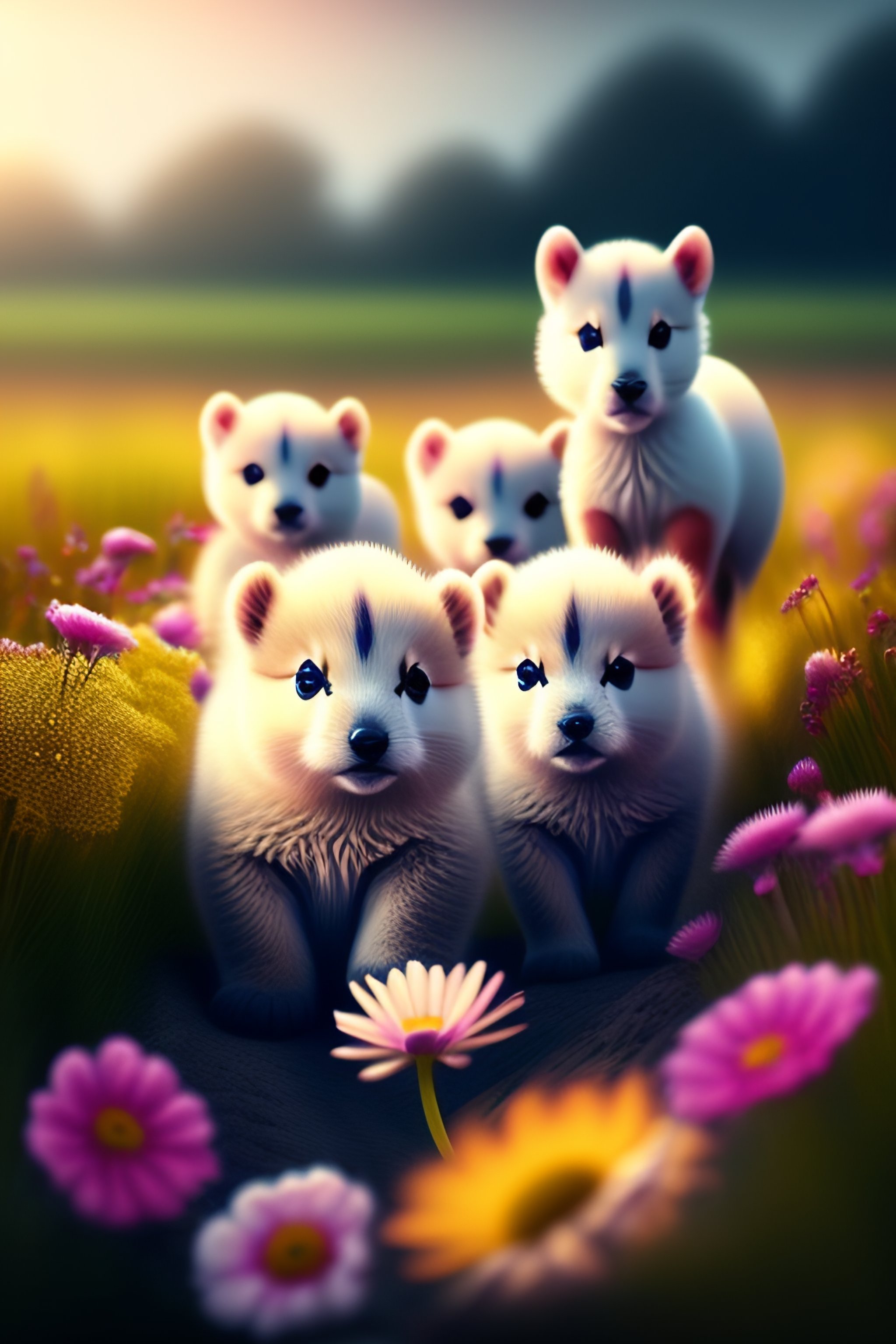 Cute baby animals on a field of flowers