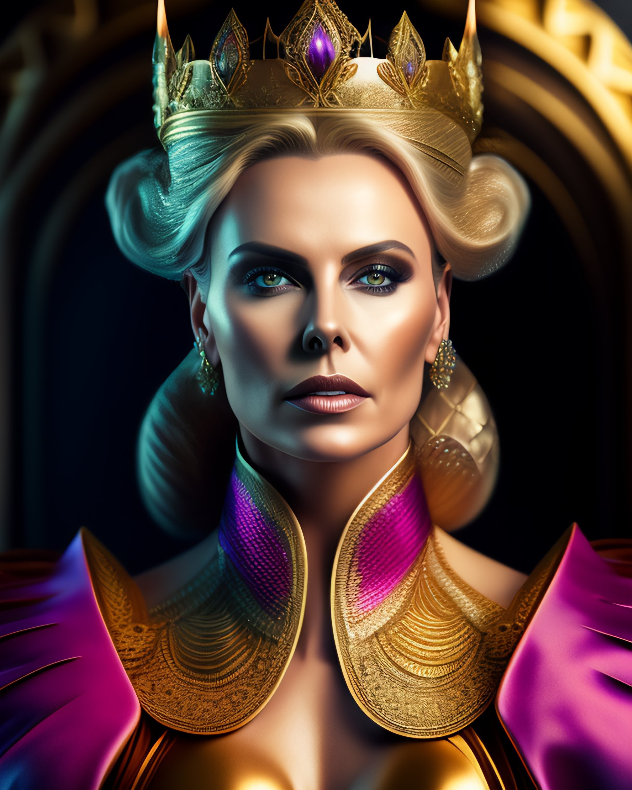 Portrait shot of 3/4 charlize theron as queen ravenna, an evil woman, very angry face, shot using sony a1, 8k, 85mm 1.2f, soft light, volumetric lighting, highly detailed, fine art portrait photography of in style of paolo roversi, britt marling style 3/4 face merging with stormy clouds in metamorphosis complex 3d render, 150 mm lens, art nouveau fashion embroidered, intricate details, elegant, hyper realistic, ultra detailed, octane render, etheric, out worldly colors, emotionally evoking, head in focus, fantasy, ornamental, intricate, elegant, 8k, soft light, volumetric lighting, highly detailed, refined, soft lighting colors scheme, fine art photography, hyper realistic, photo realistic