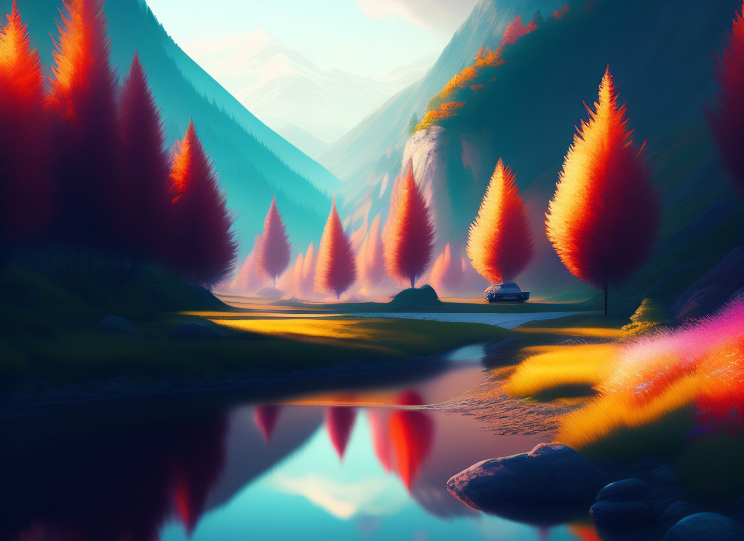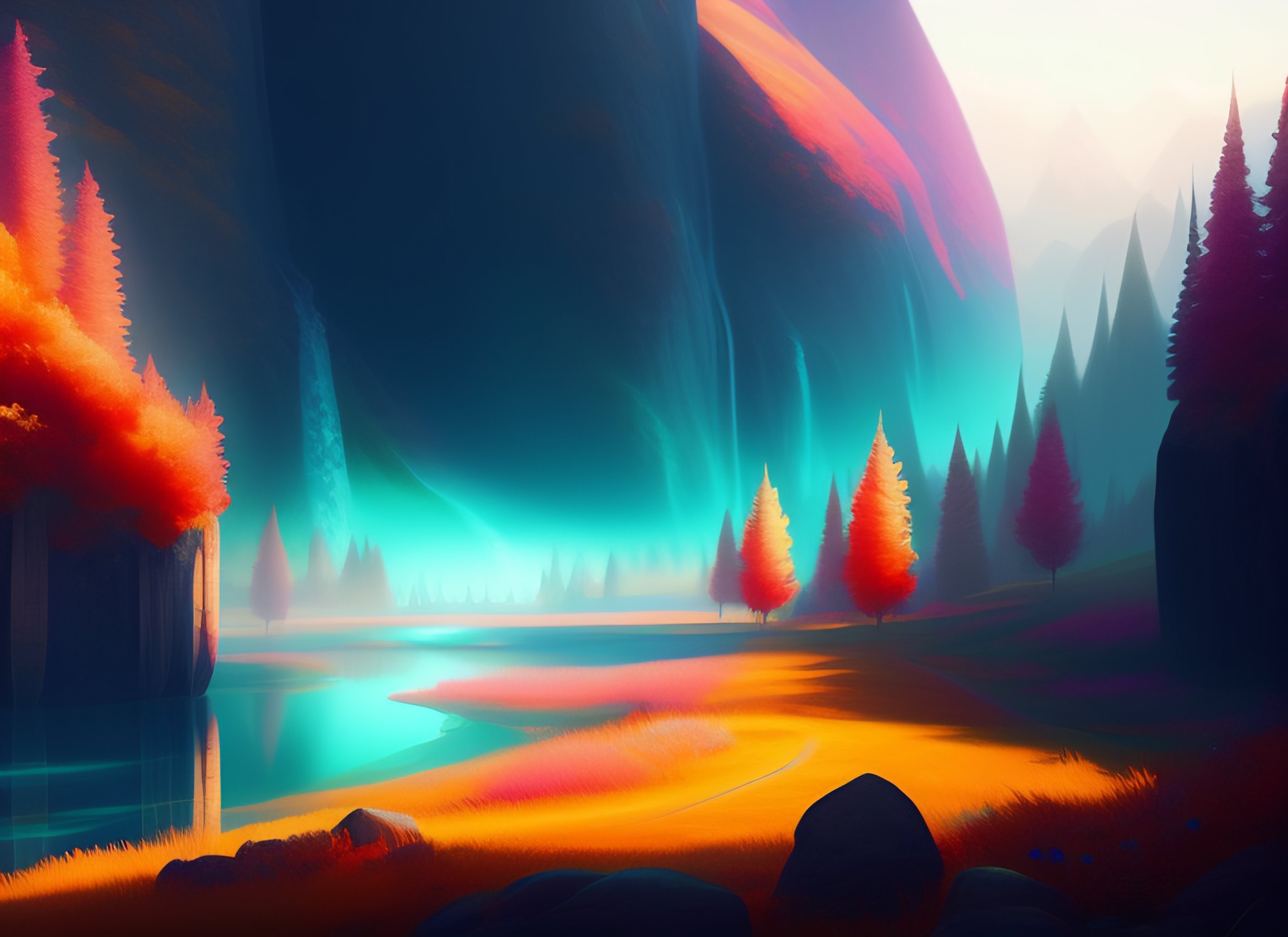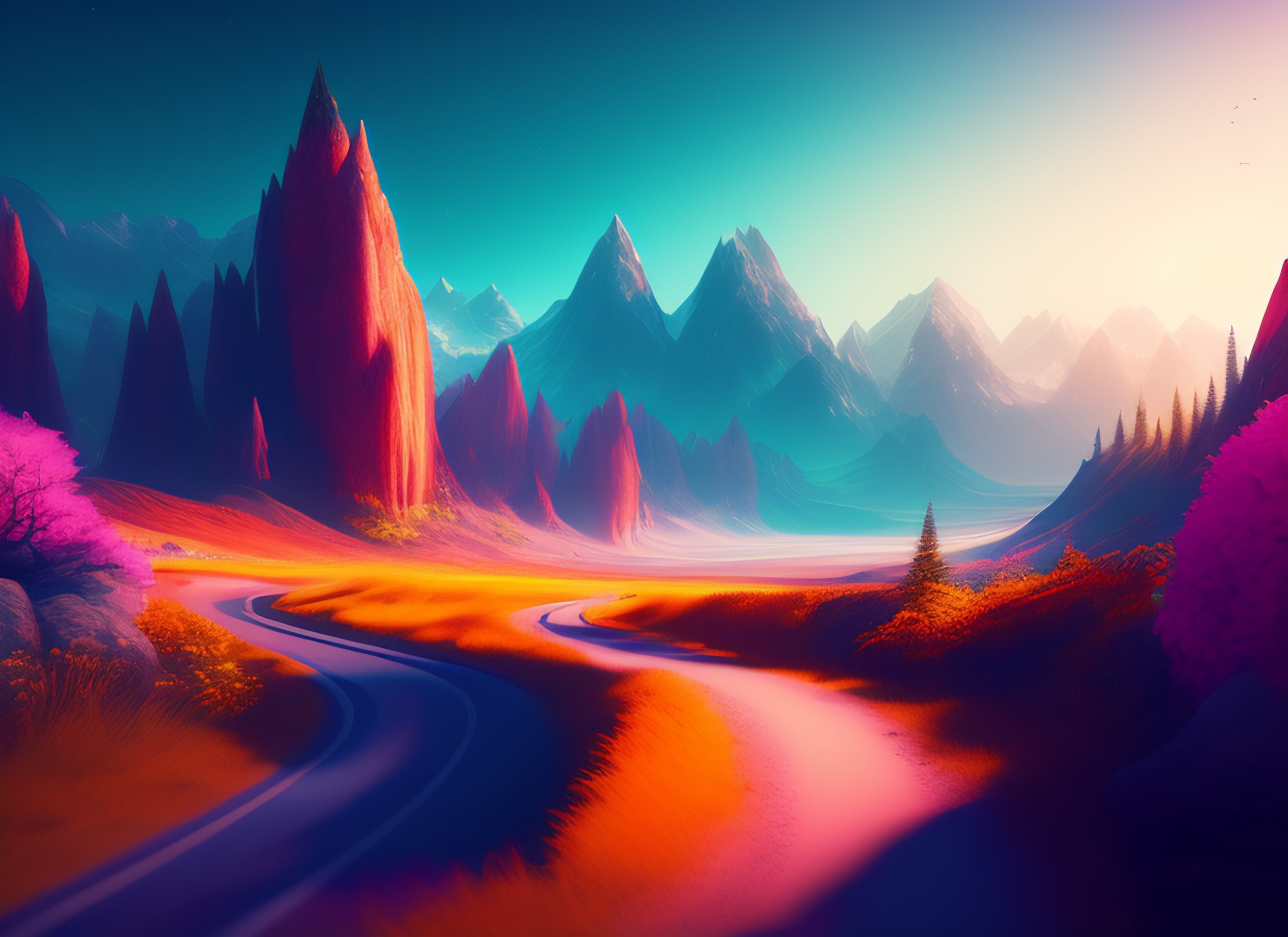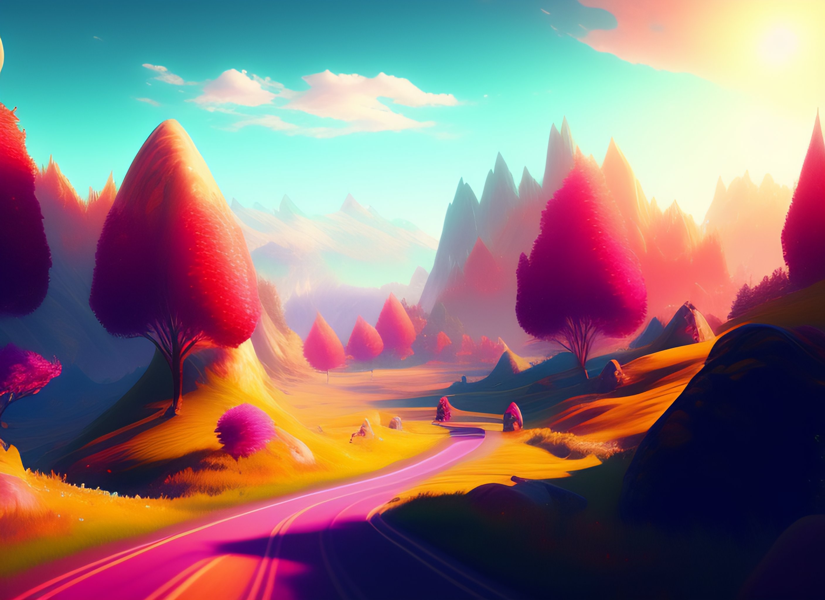 Wonderland fairytale valley landscape crossroad beauty vibrant digital matte artstation, cgsociety, 8k beeple charlie bowater dynamic raimbow radiating a bokeh color filter harmony