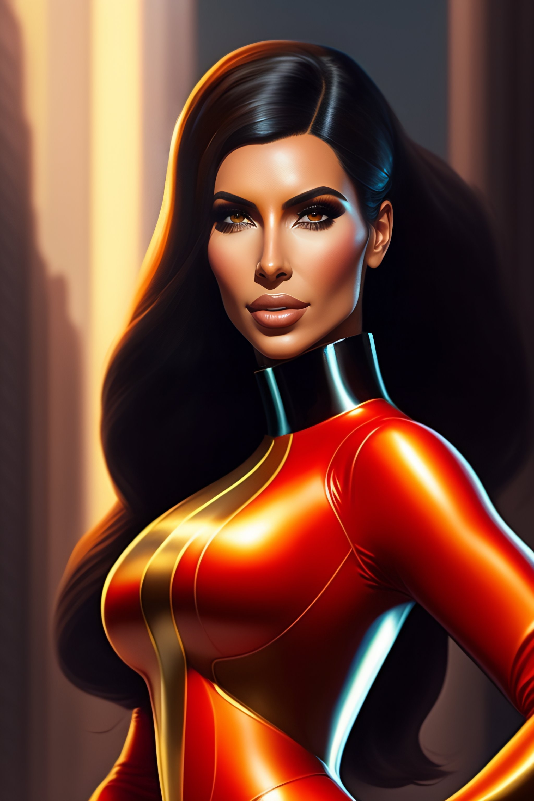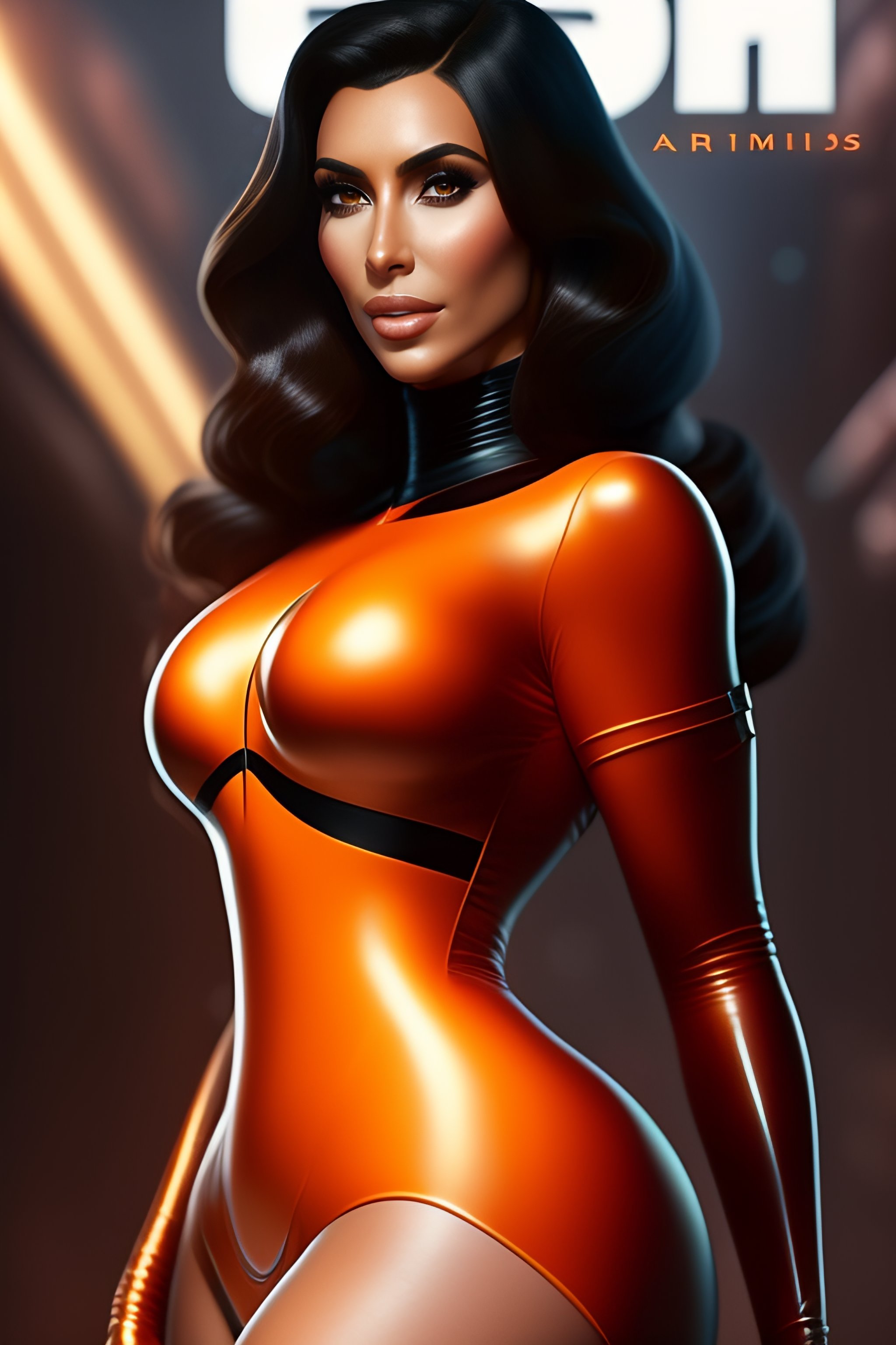 Kim kardashian as elastigirl the incredibles profile picture by greg rutkowski, dynamic pose, intricate, futuristic, fantasy, elegant, by stanley artgerm lau, greg rutkowski, thomas kindkade, alphonse mucha, loish, norman rockwell, fantasy lut, asymmetric, long hijab, retro computer graphics, video game, fluid lines