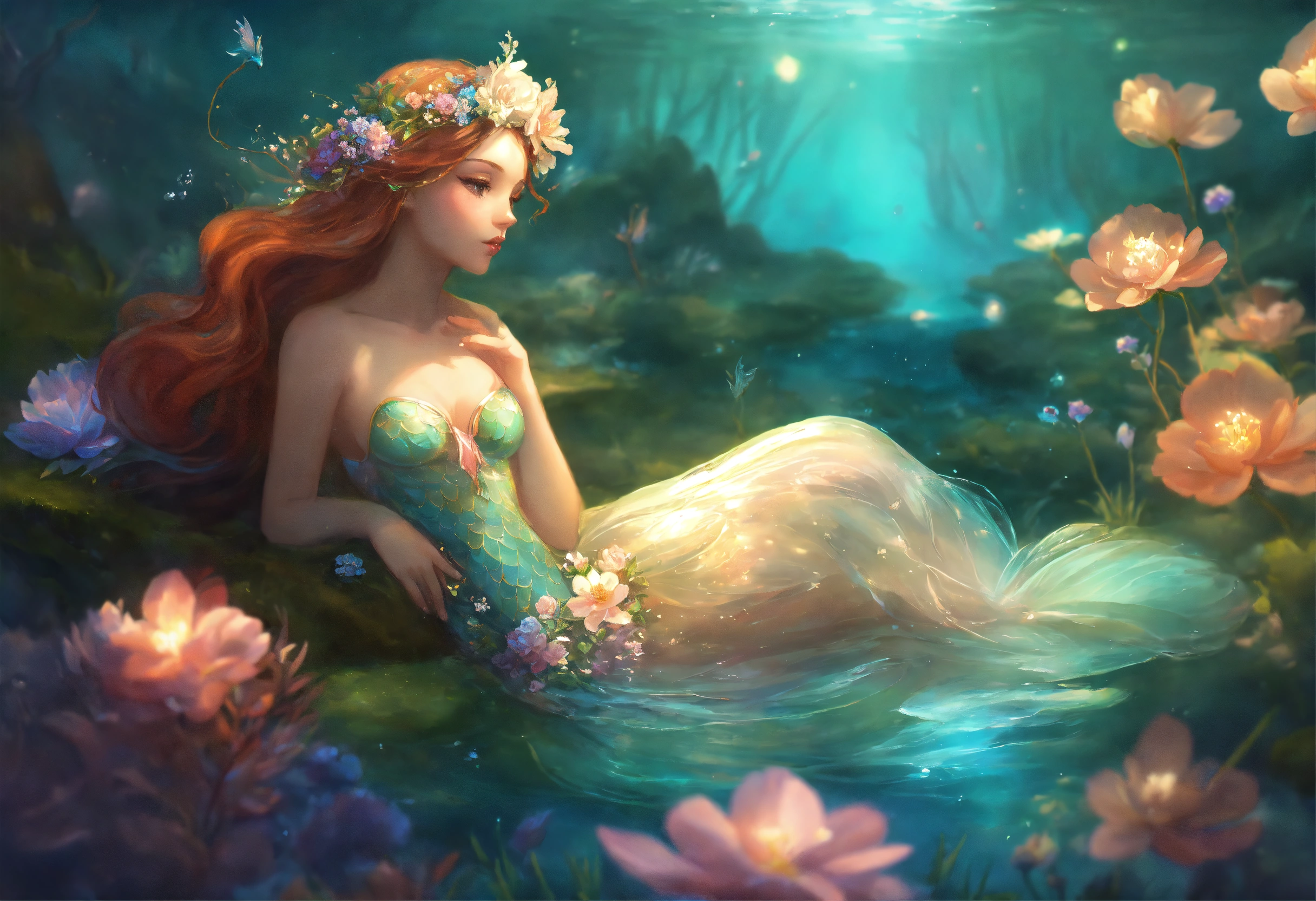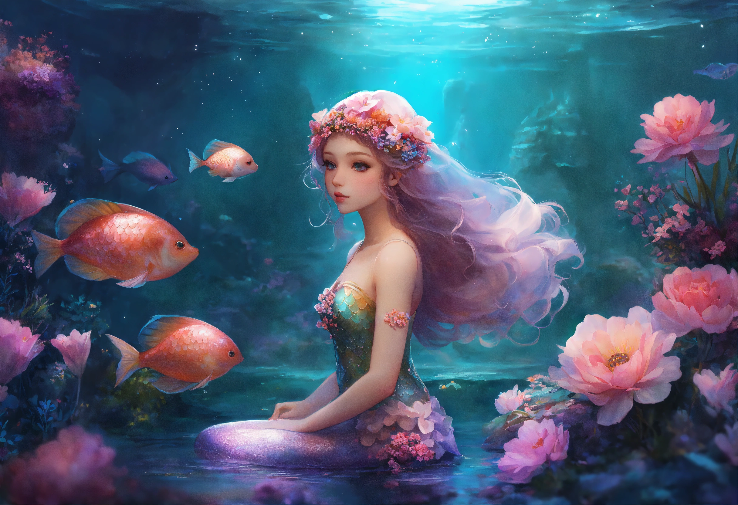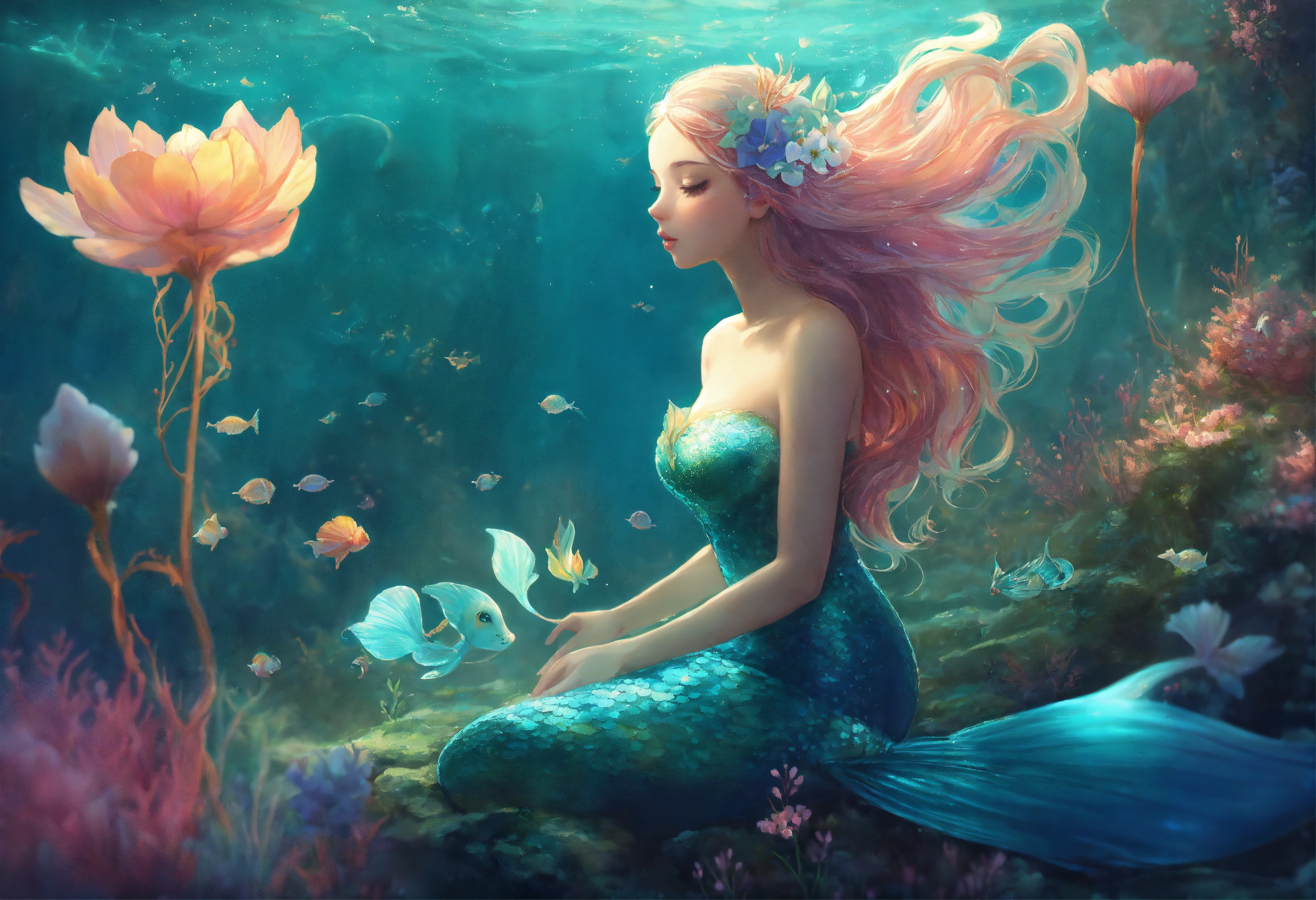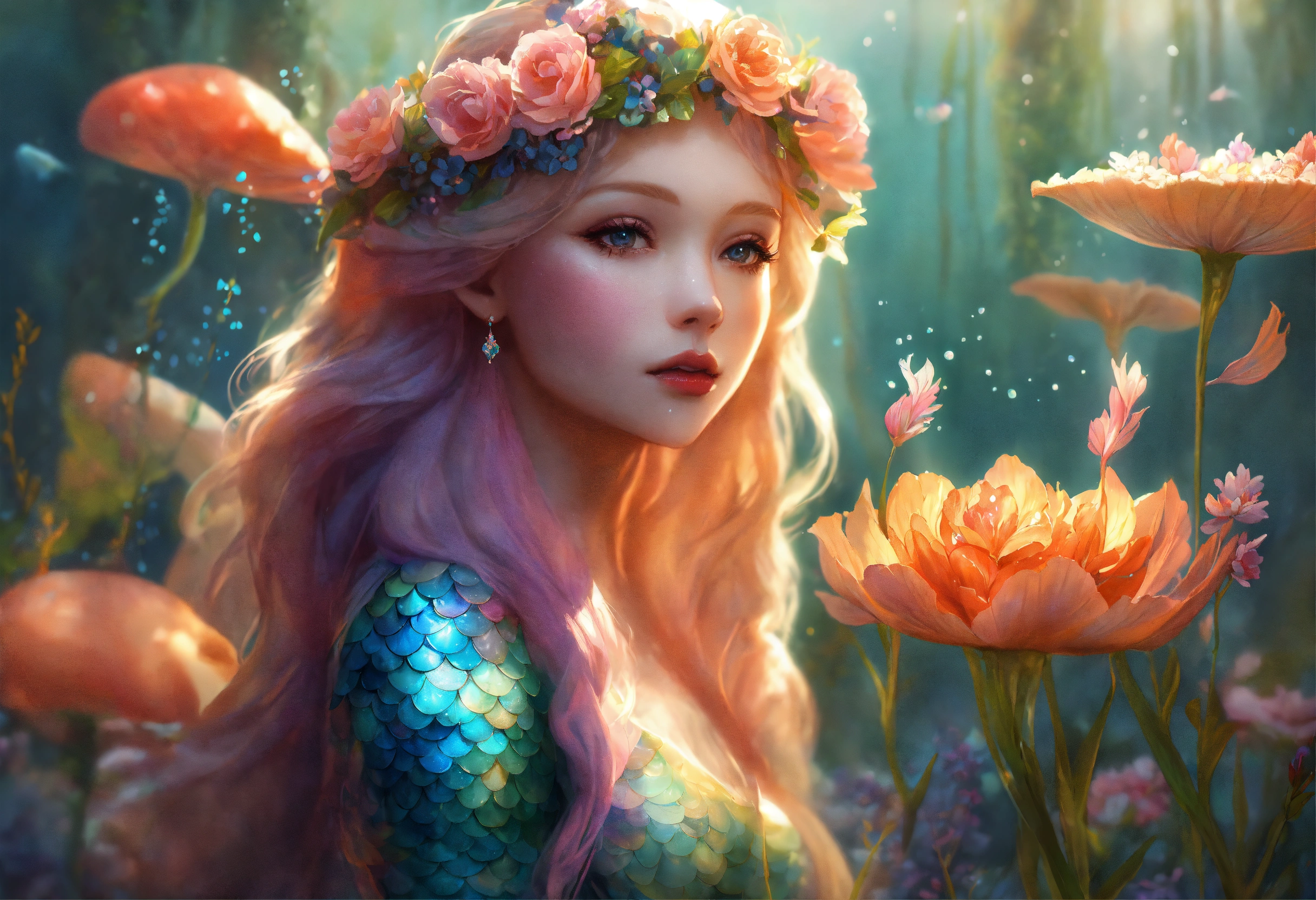 Ethereal fantasy concept art of tiny mermaid princess whimsical