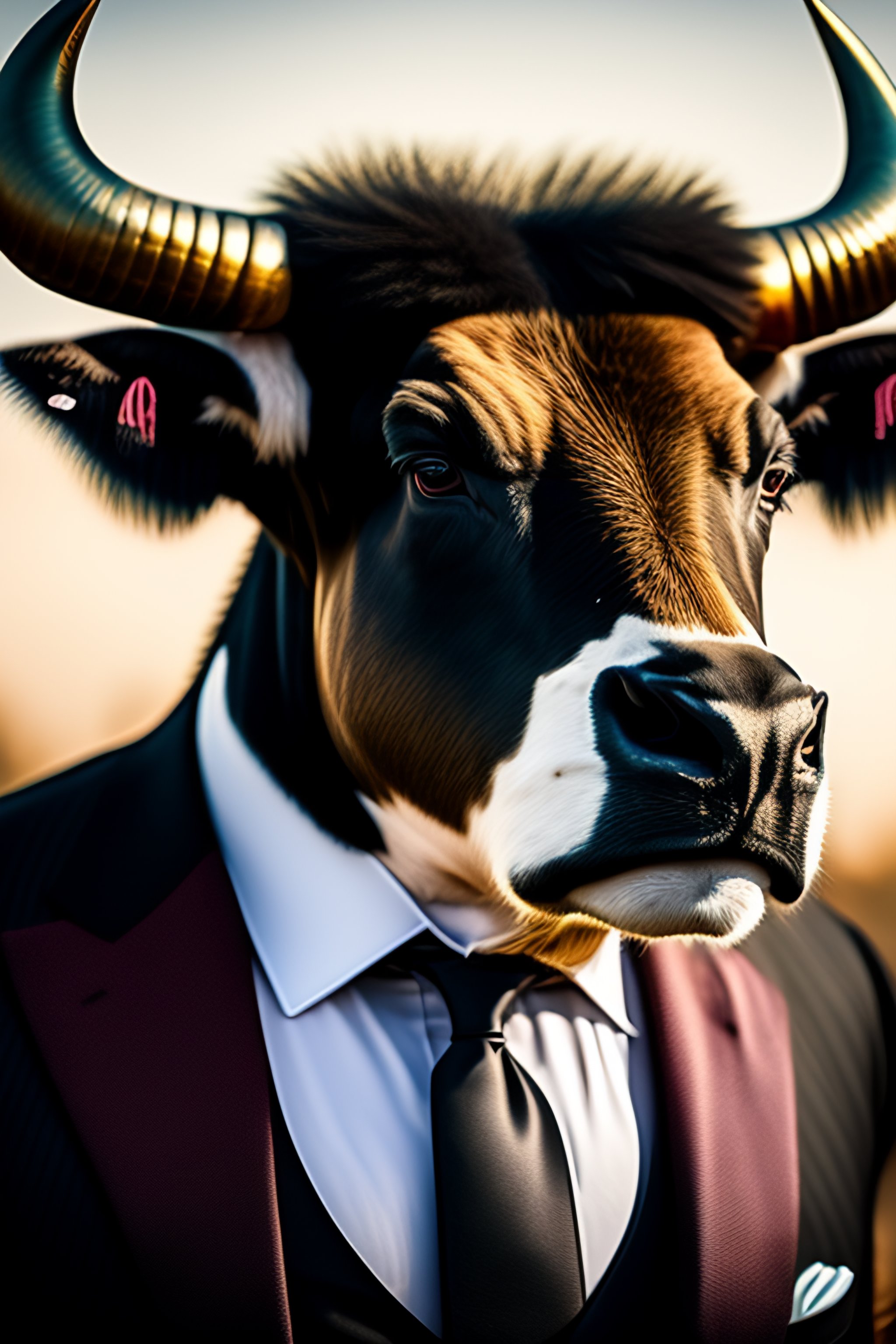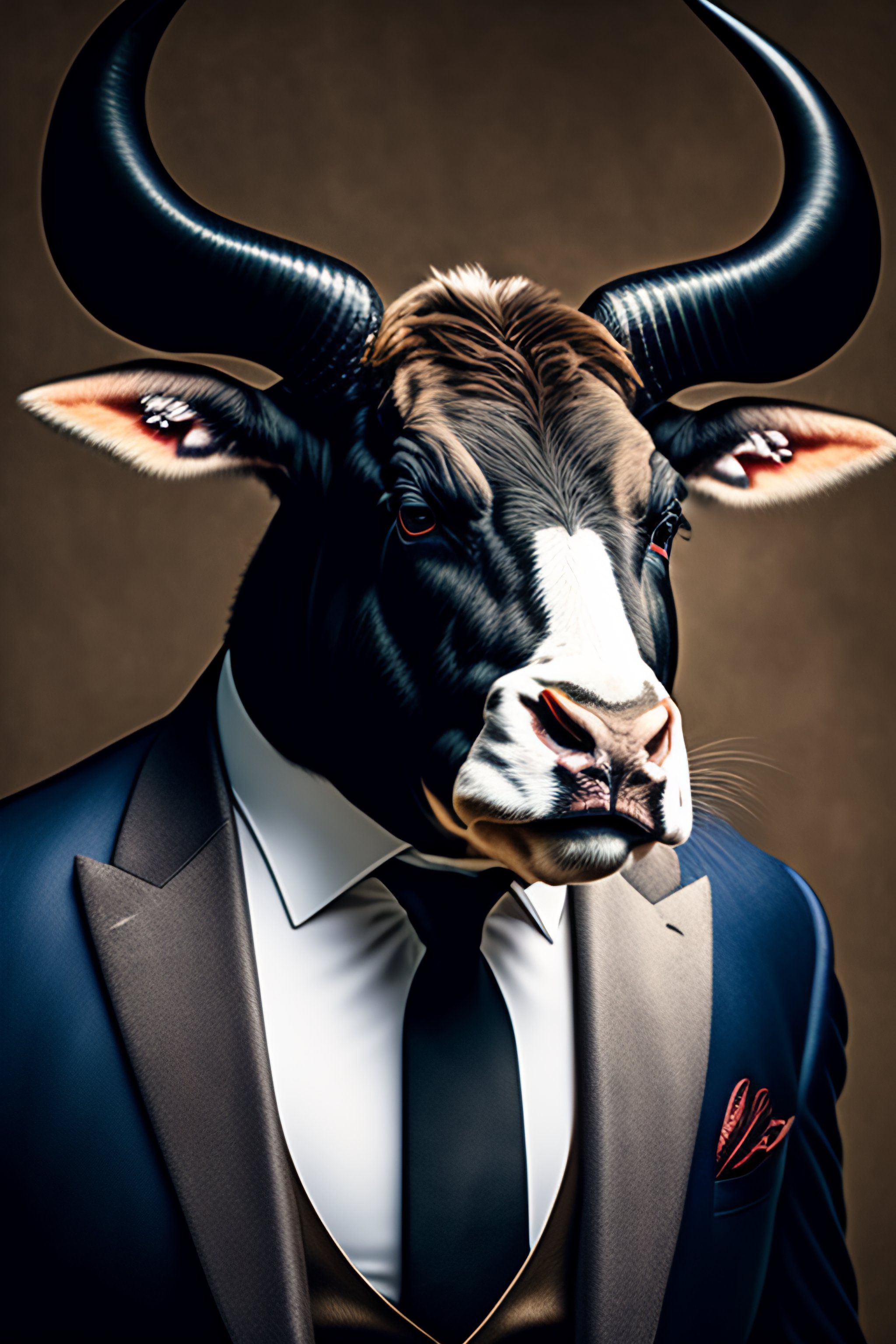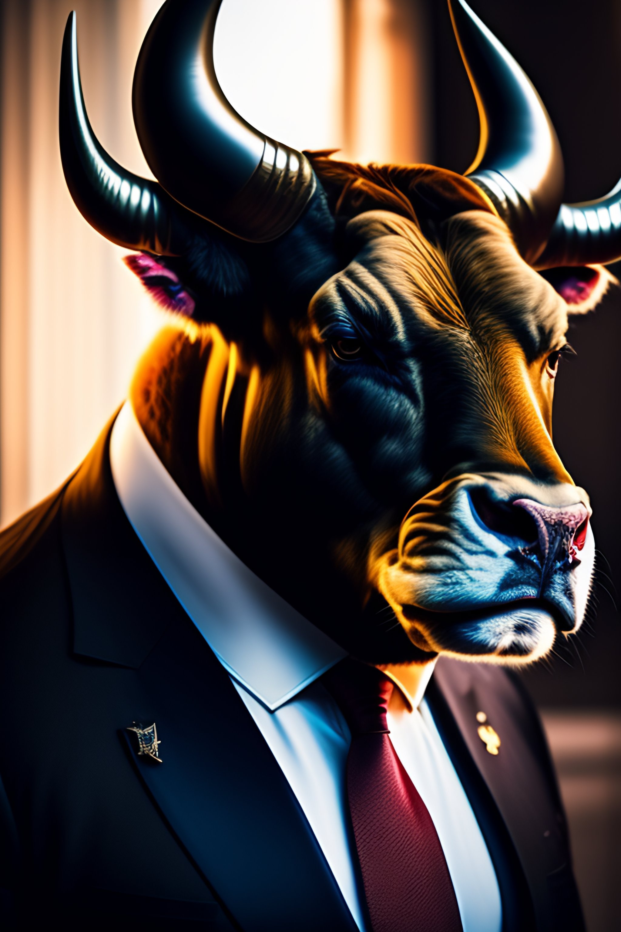 Award winning photo of a mobster boss bull head, horns, angry, textured, furry, dressed up, majestic, highly detailed