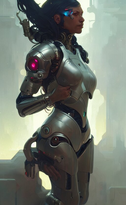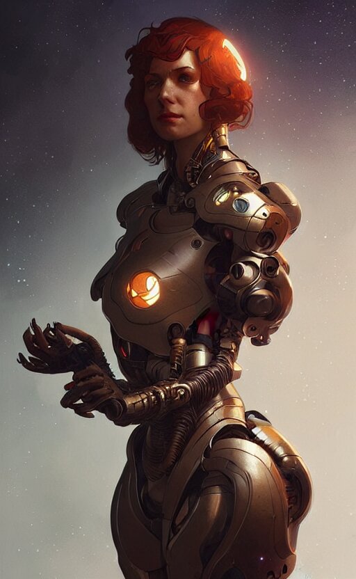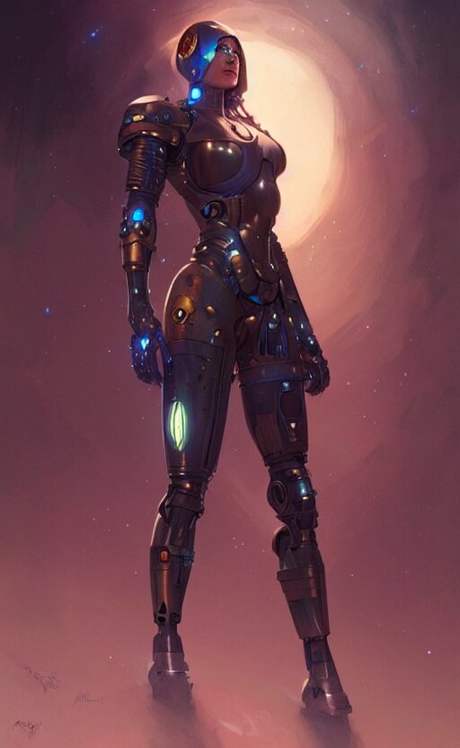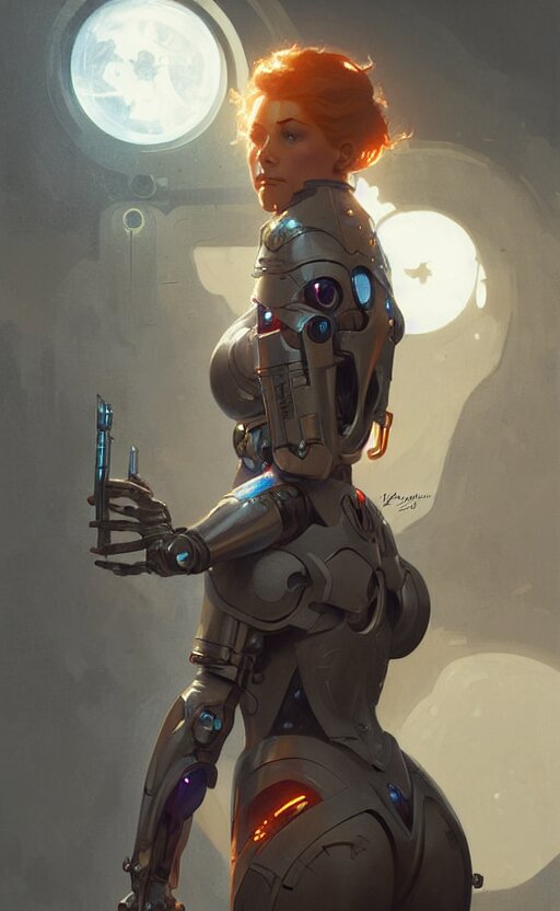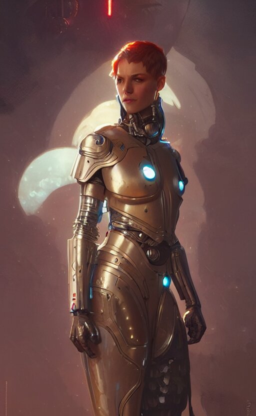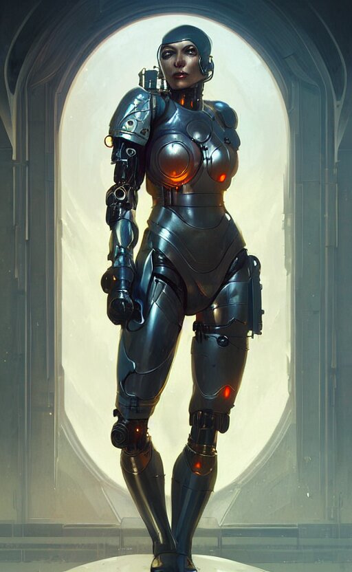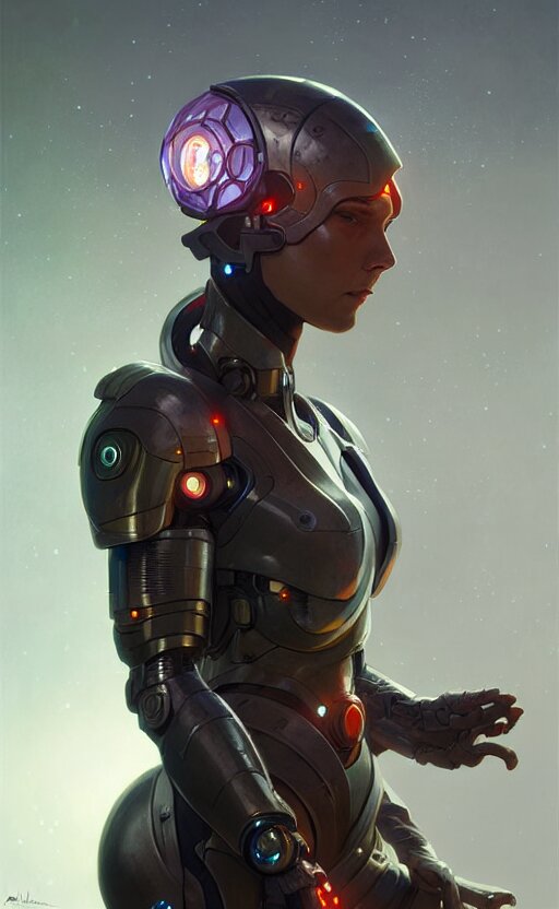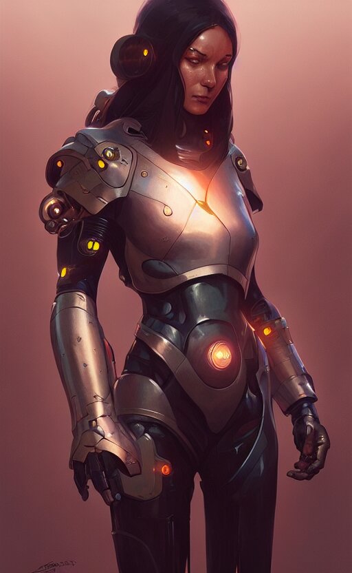 Cyborg medieval night female, sci-fi, highly detailed, digital painting, artstation, concept art, smooth, sharp focus, illustration, art by artgerm and greg rutkowski and alphonse mucha