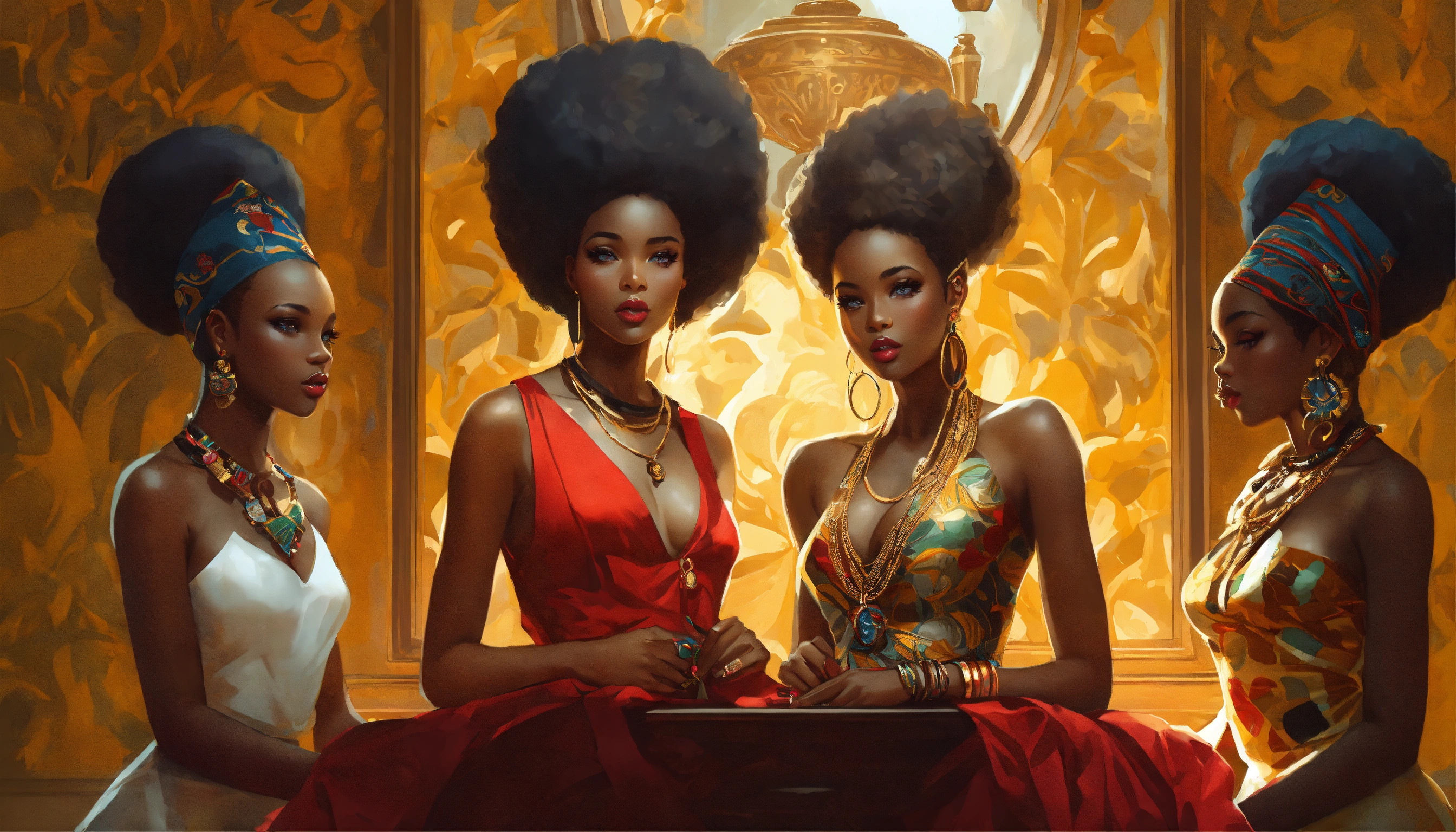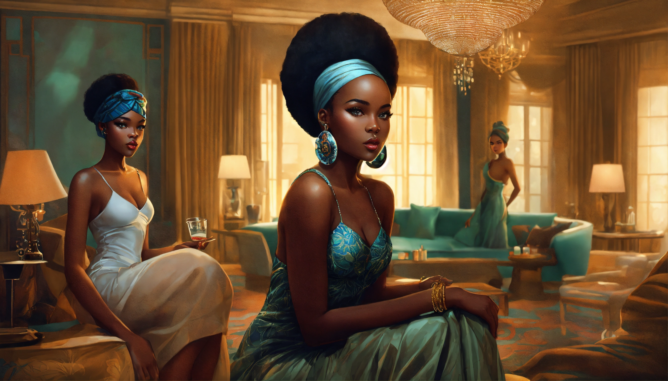 5 beautiful african girls in a luxurious room, dressing up for night out, smooth, pixar style by tristan eaton stanley artgerm and tom bagshaw