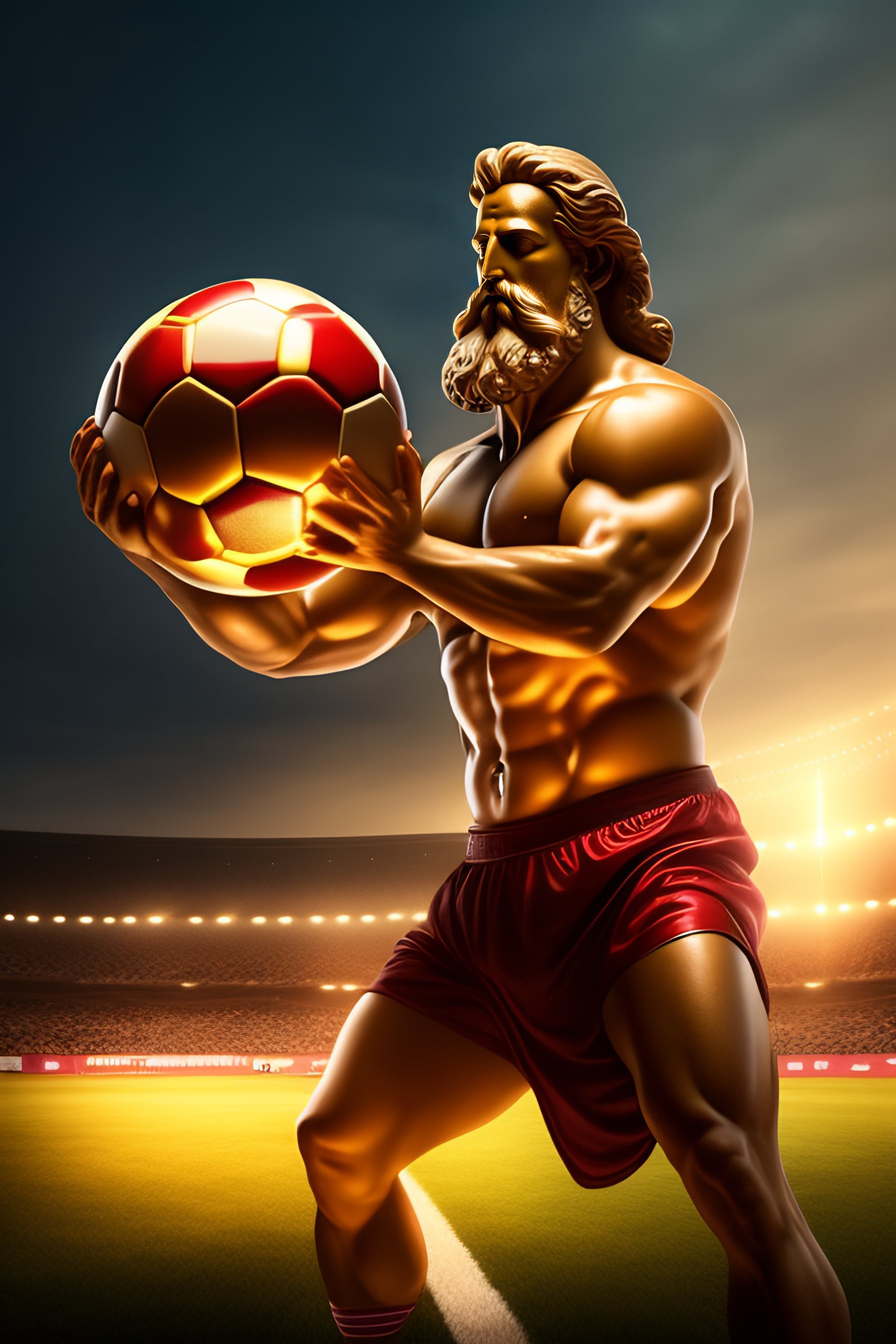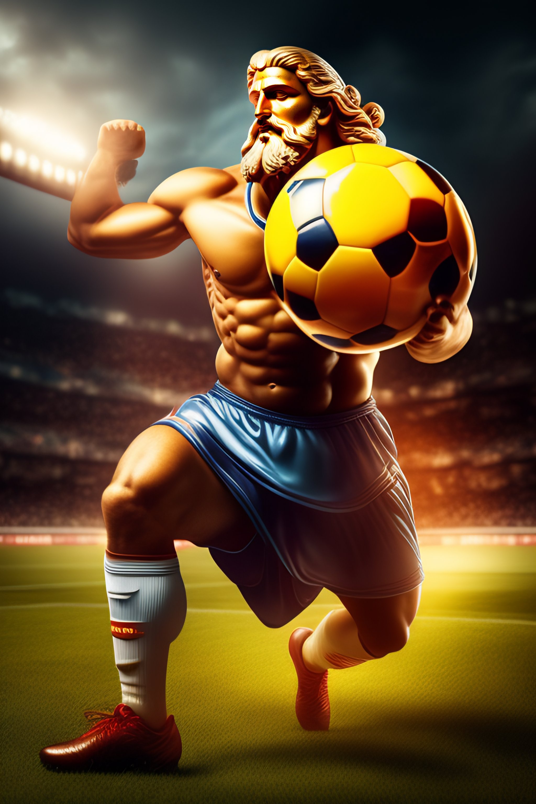 Ancient greek god zeus keeping in his hand a soccer ball3