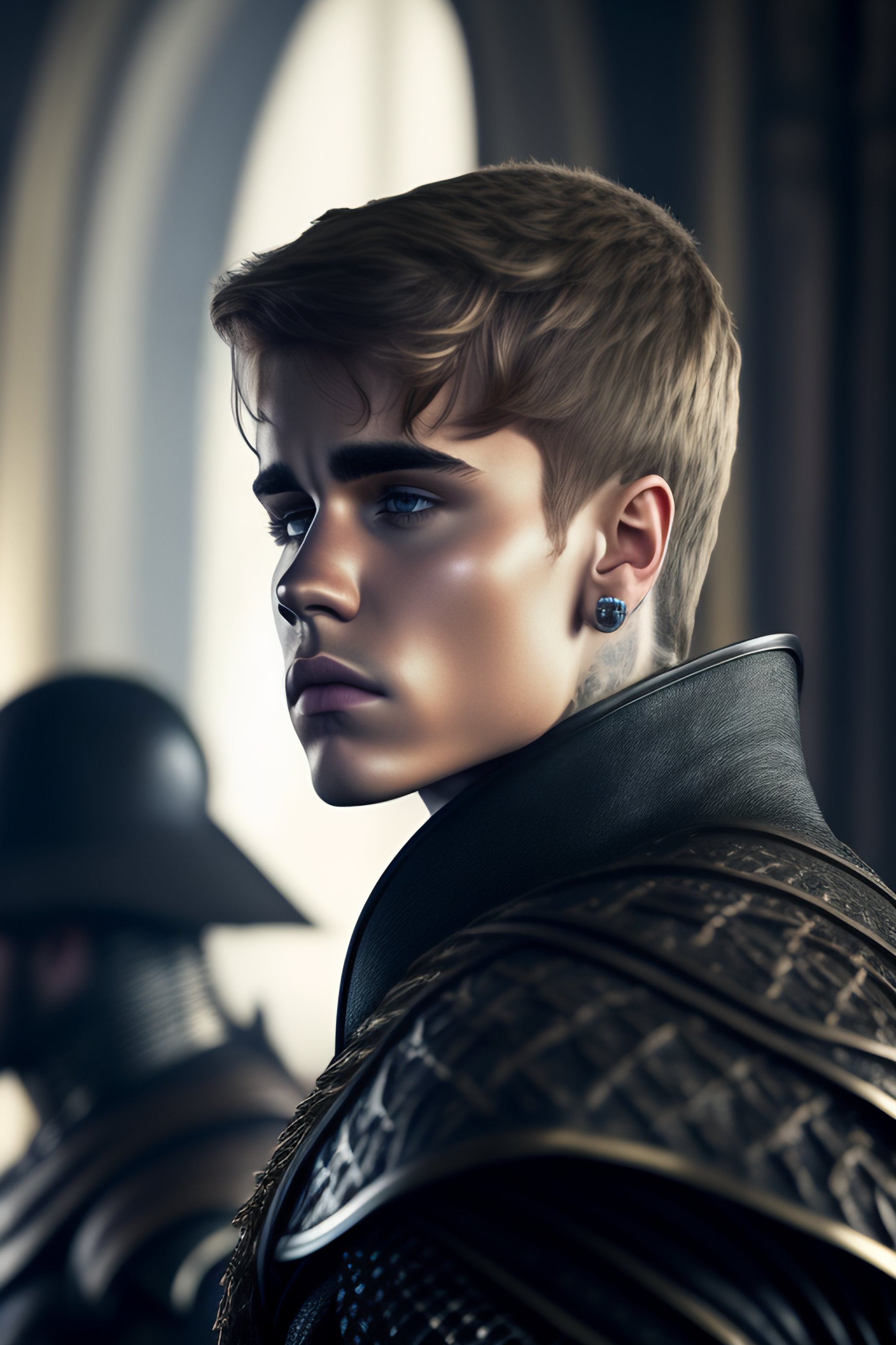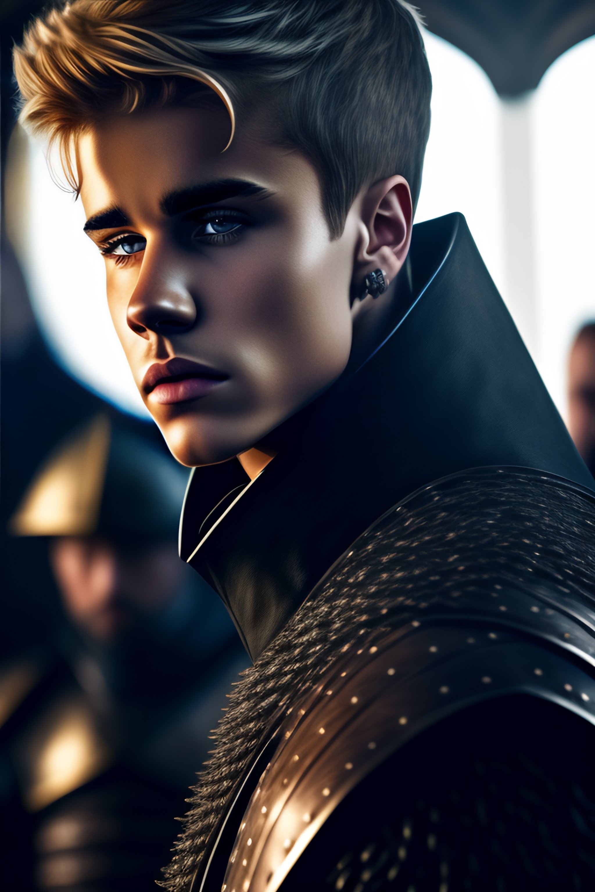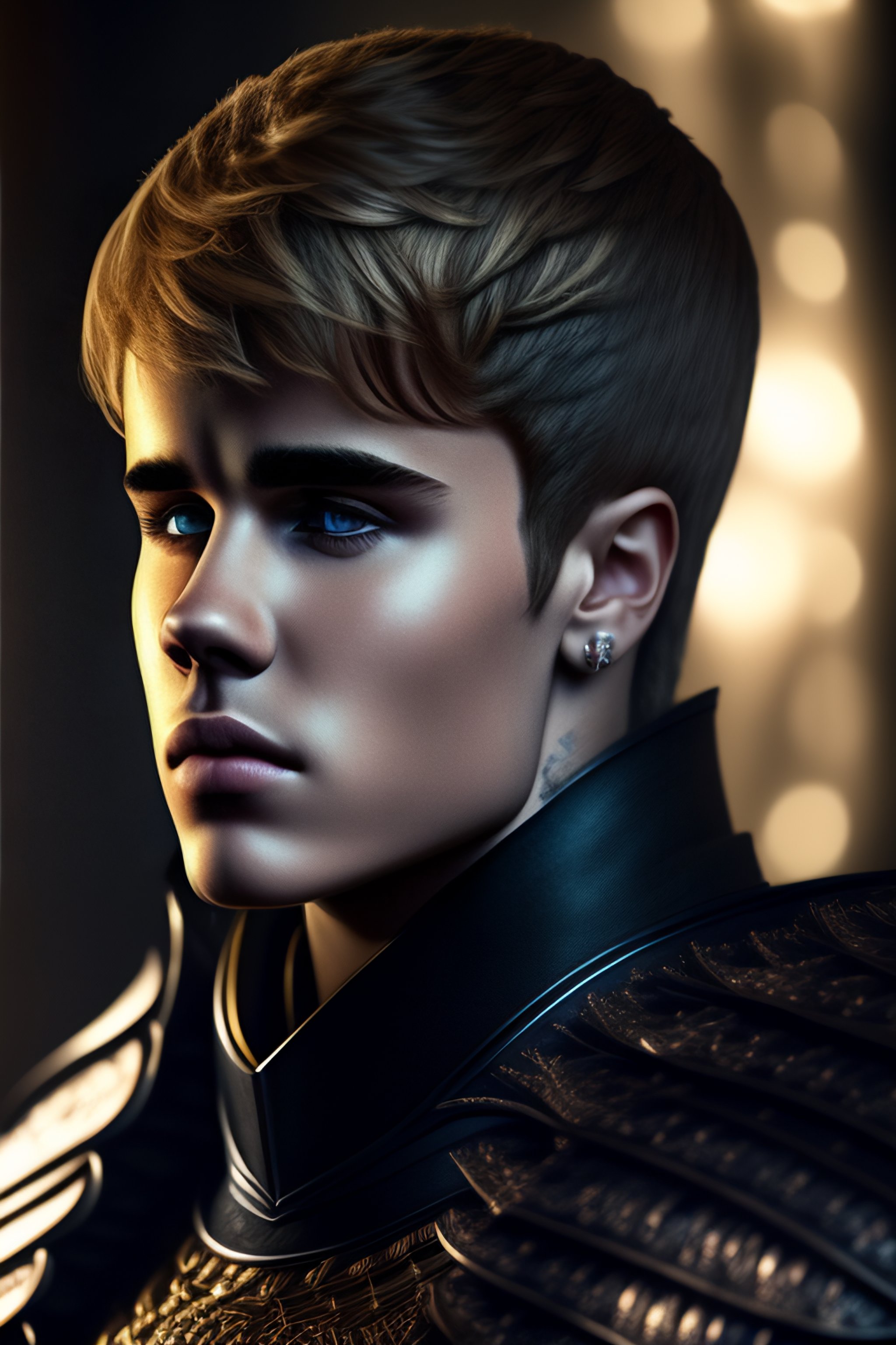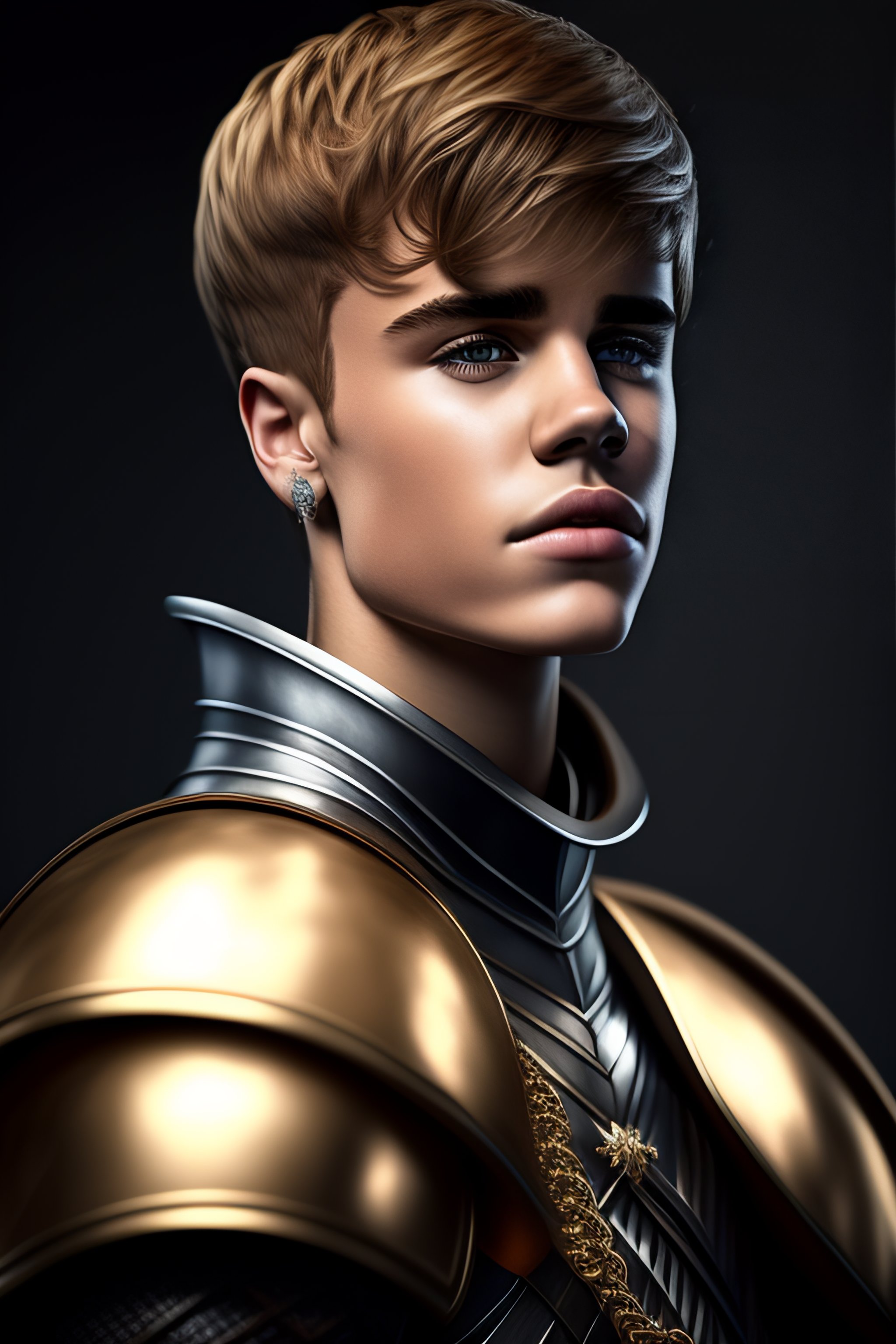 Justin bieber with his hands on his chin