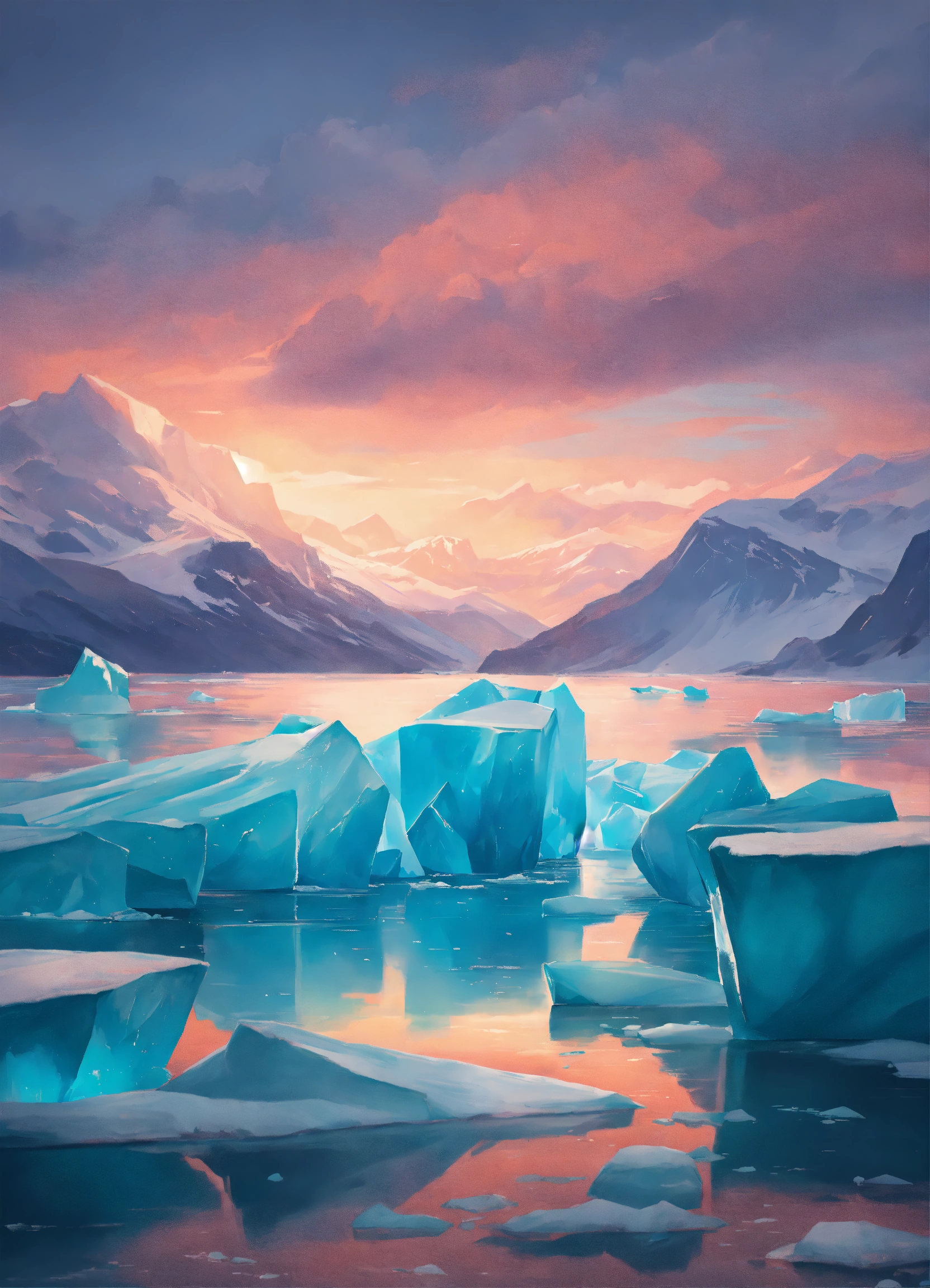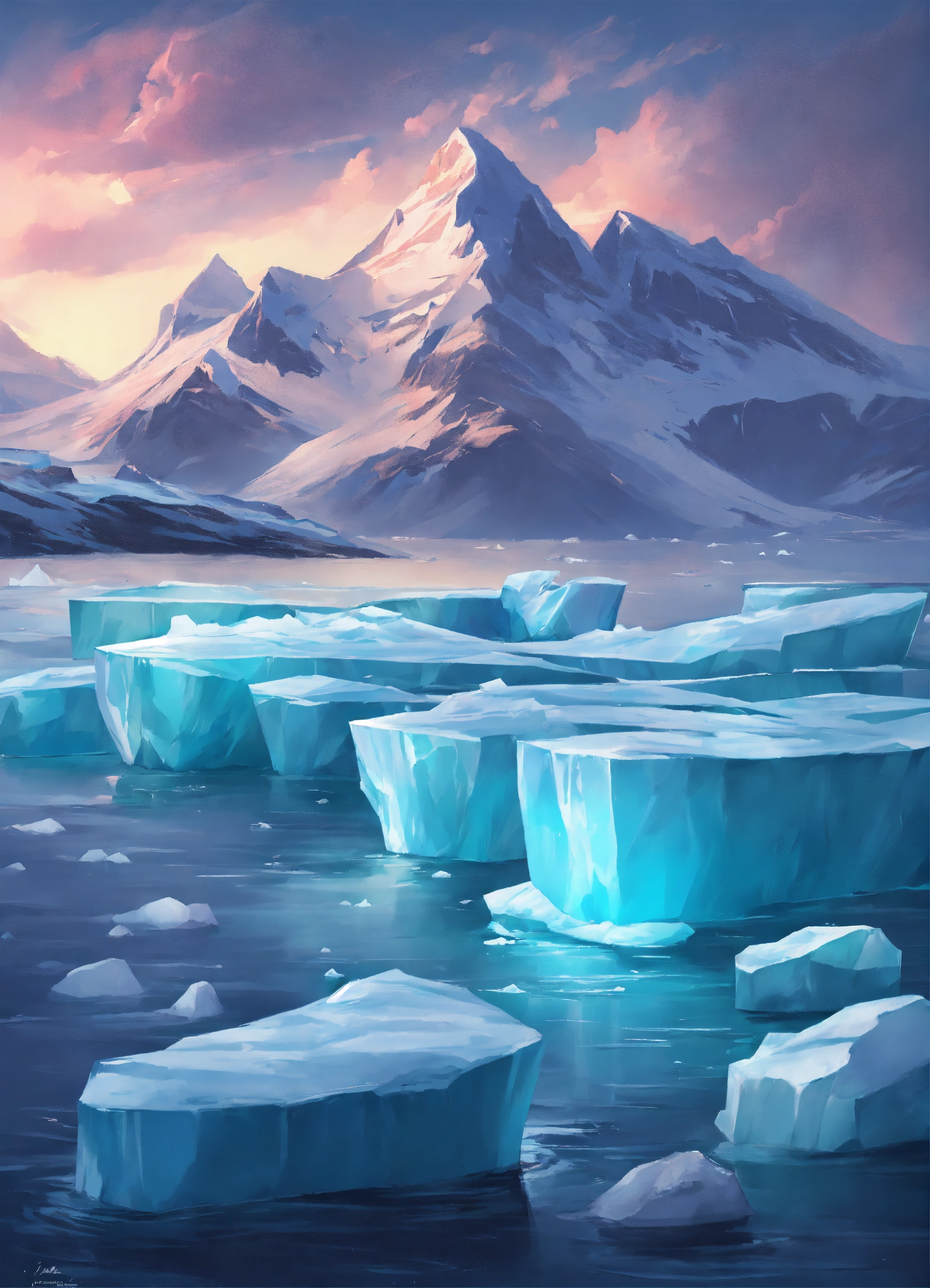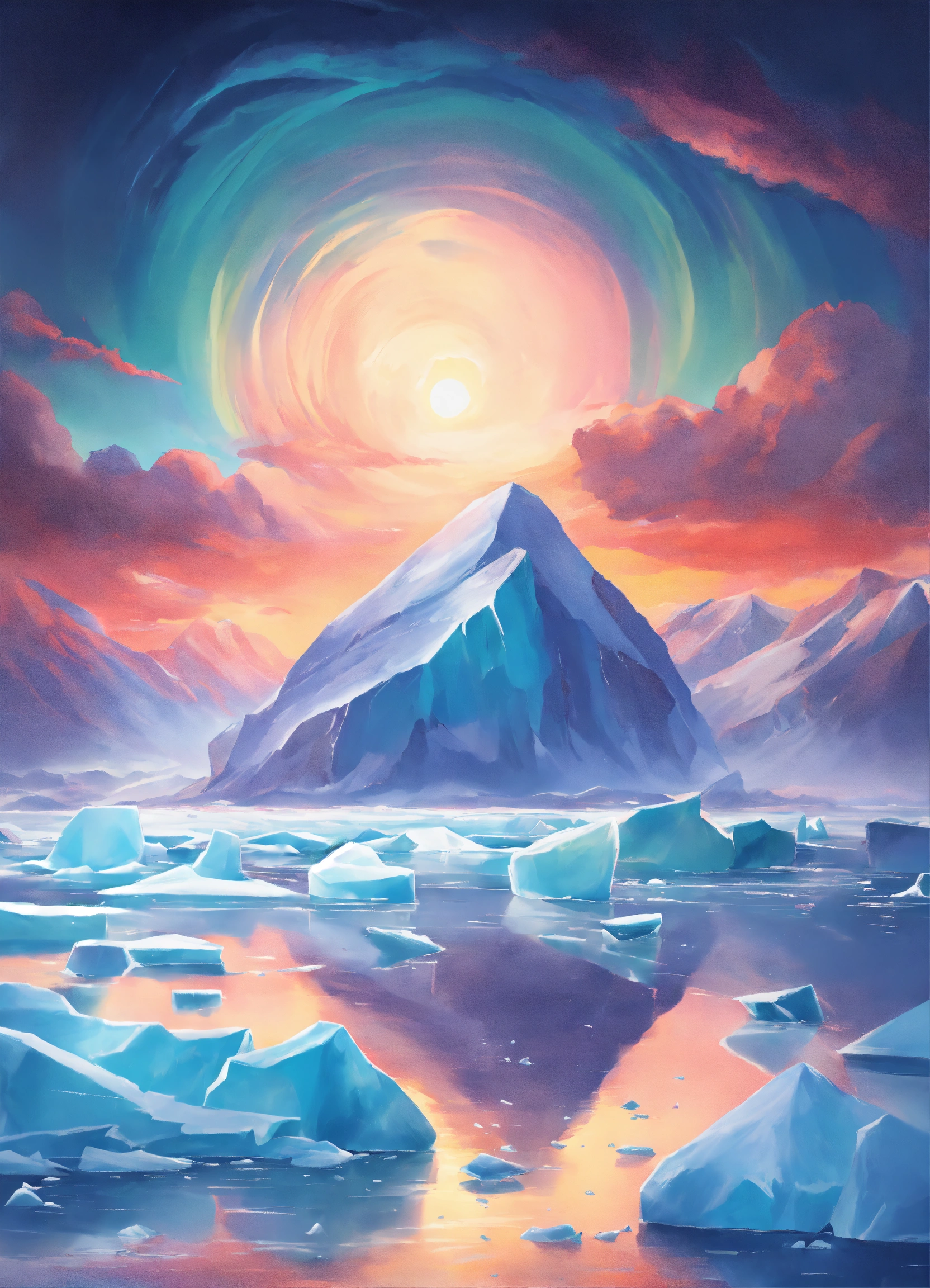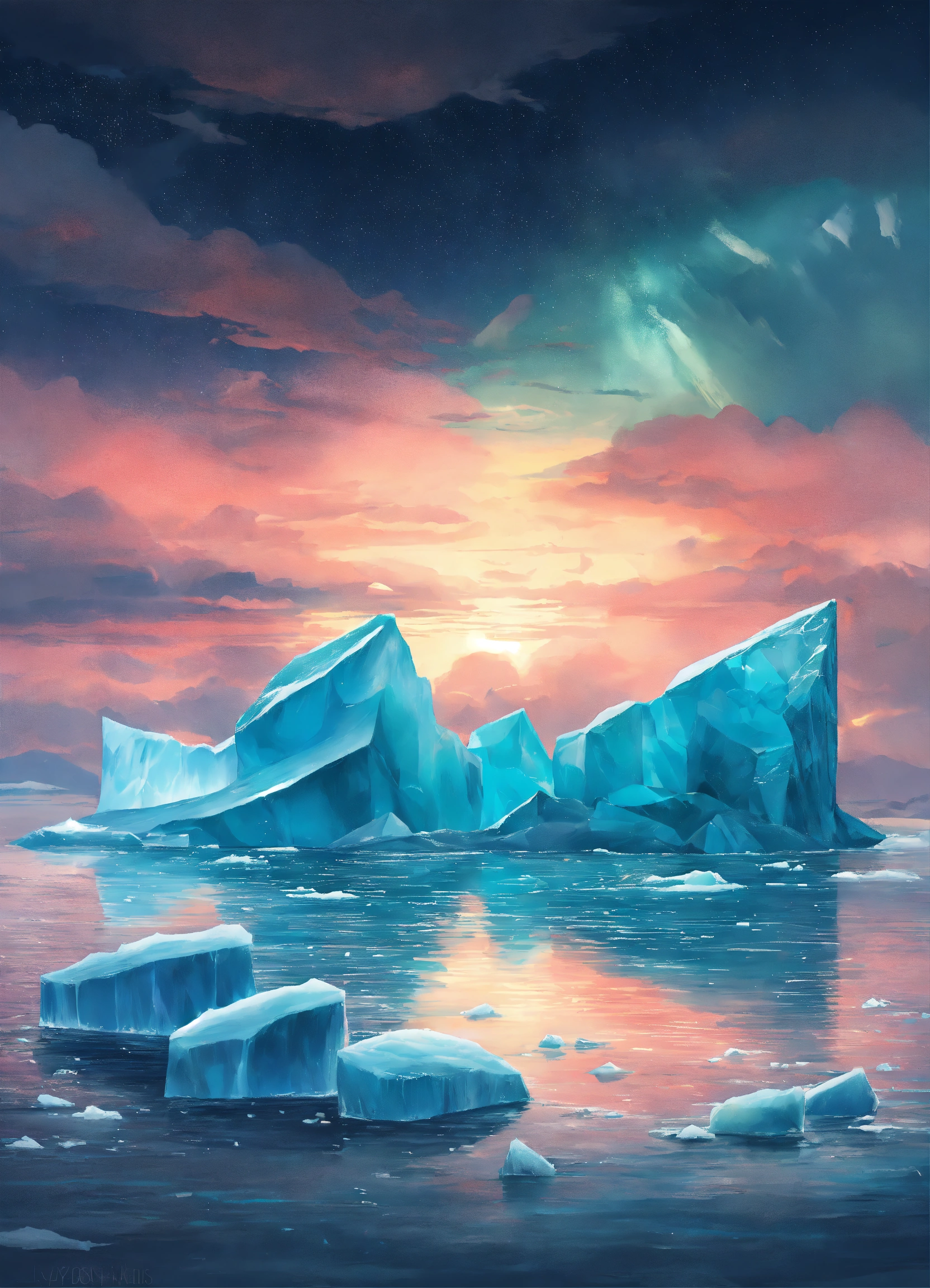 Icebergs northlights heaven illustration
