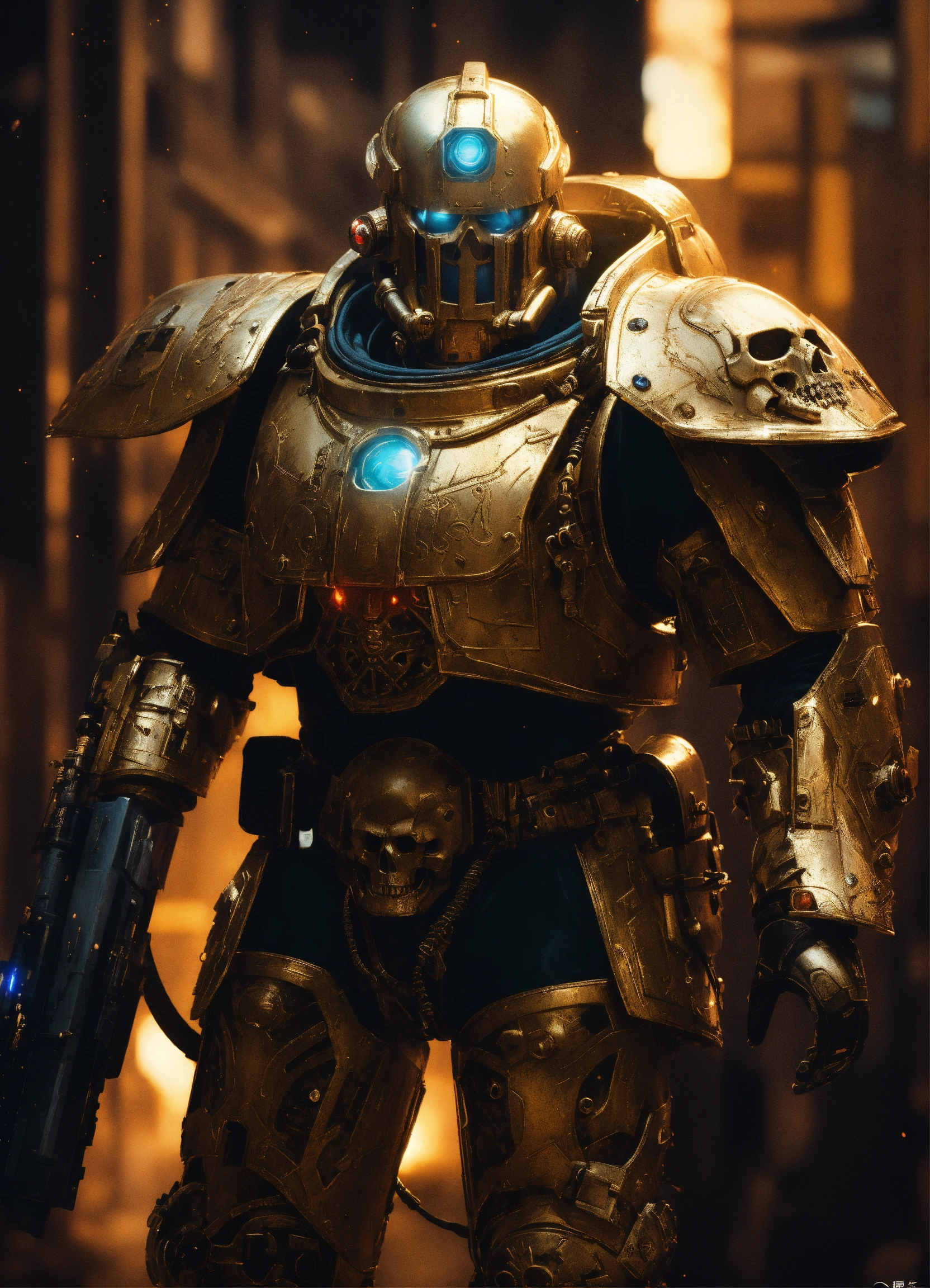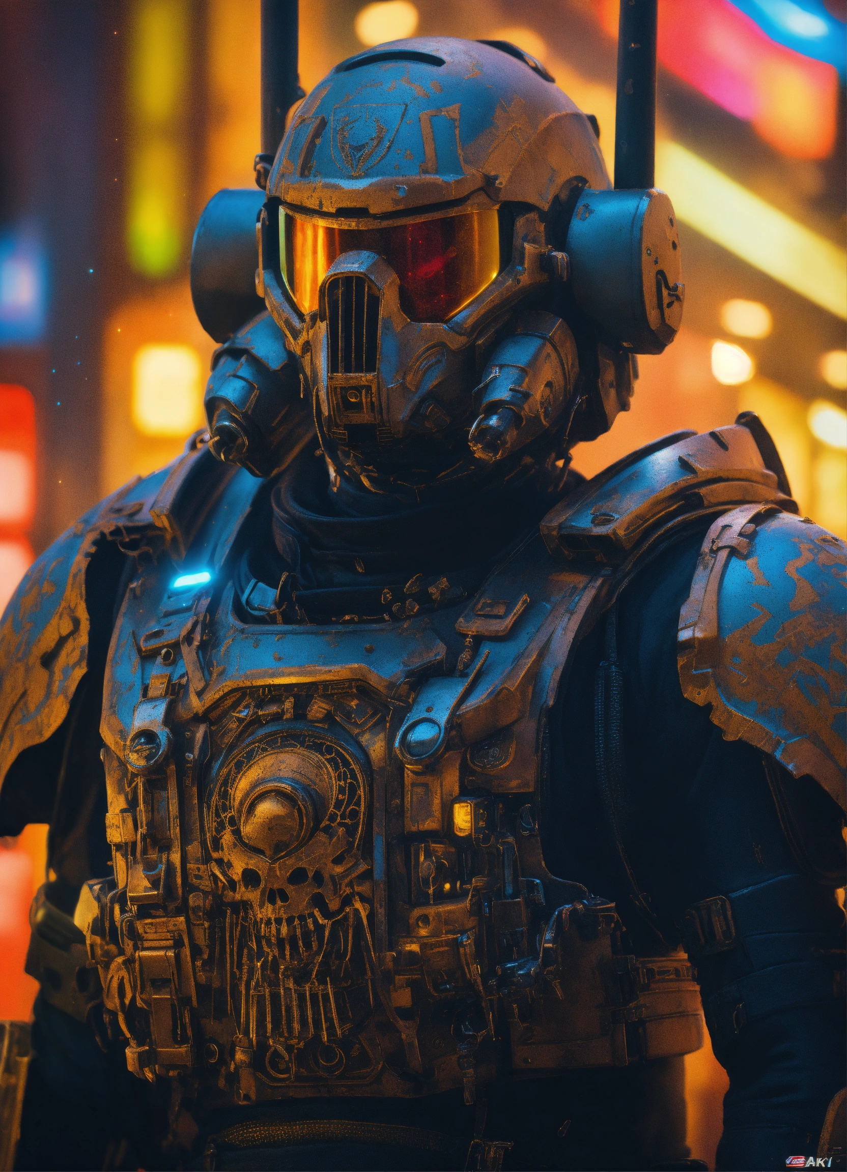 Cyberpunk, sci-fi, dark-fantasy, kodak portrait 400, 8k, soft light, volumetric lighting, highly detailed, britt marling style 3/4, portrait photo of a battle hardened space marine, face is skullbone with scars, intricate, elegant, highly detailed, devil-armor, 2d motifs detailed dark fantasy digital painting, artstation, concept art, smooth, sharp focus, illustration, art by otomo katsuhiro and shirō masamune and oshii mamoru. cosmic light in backfront