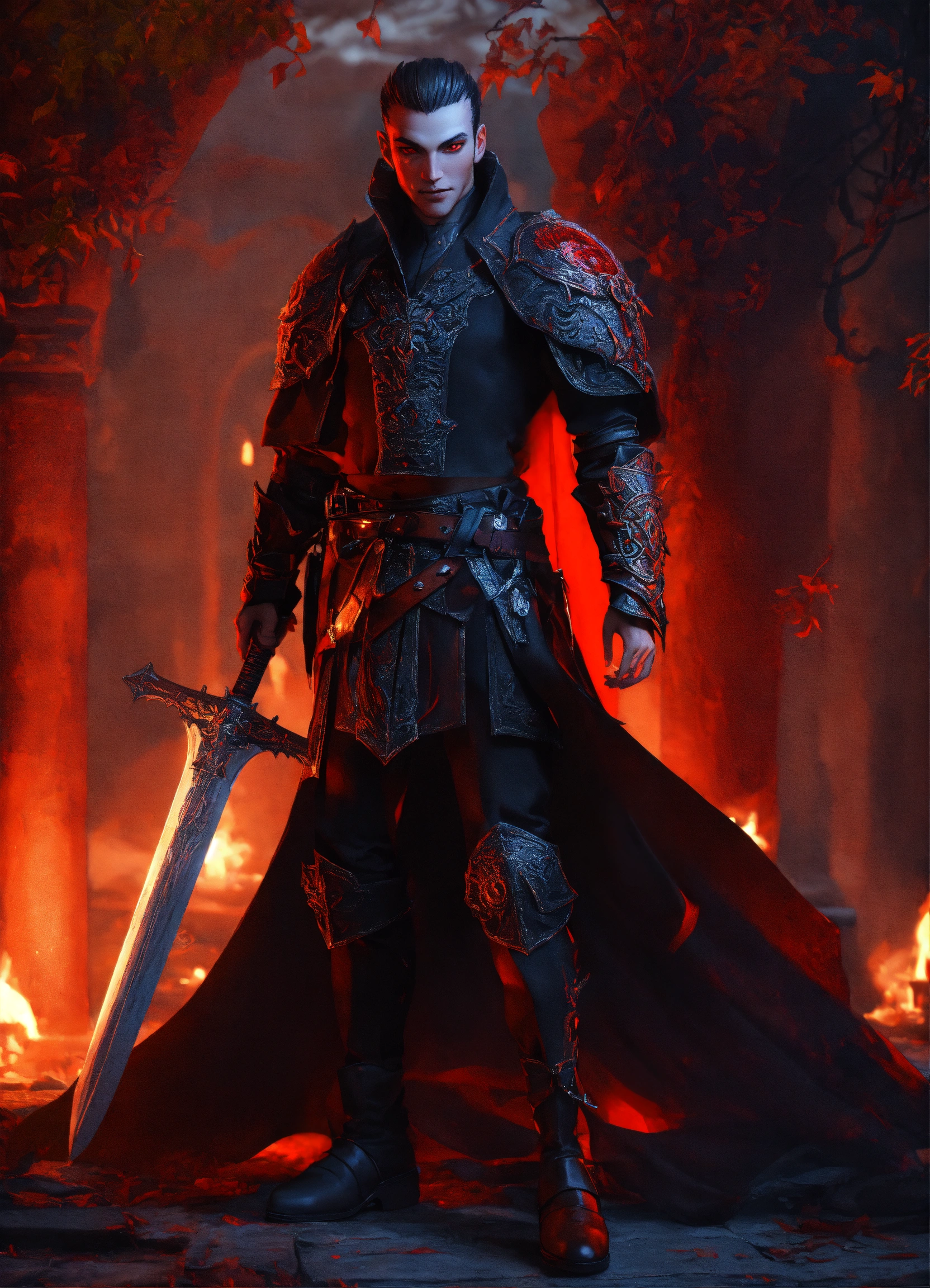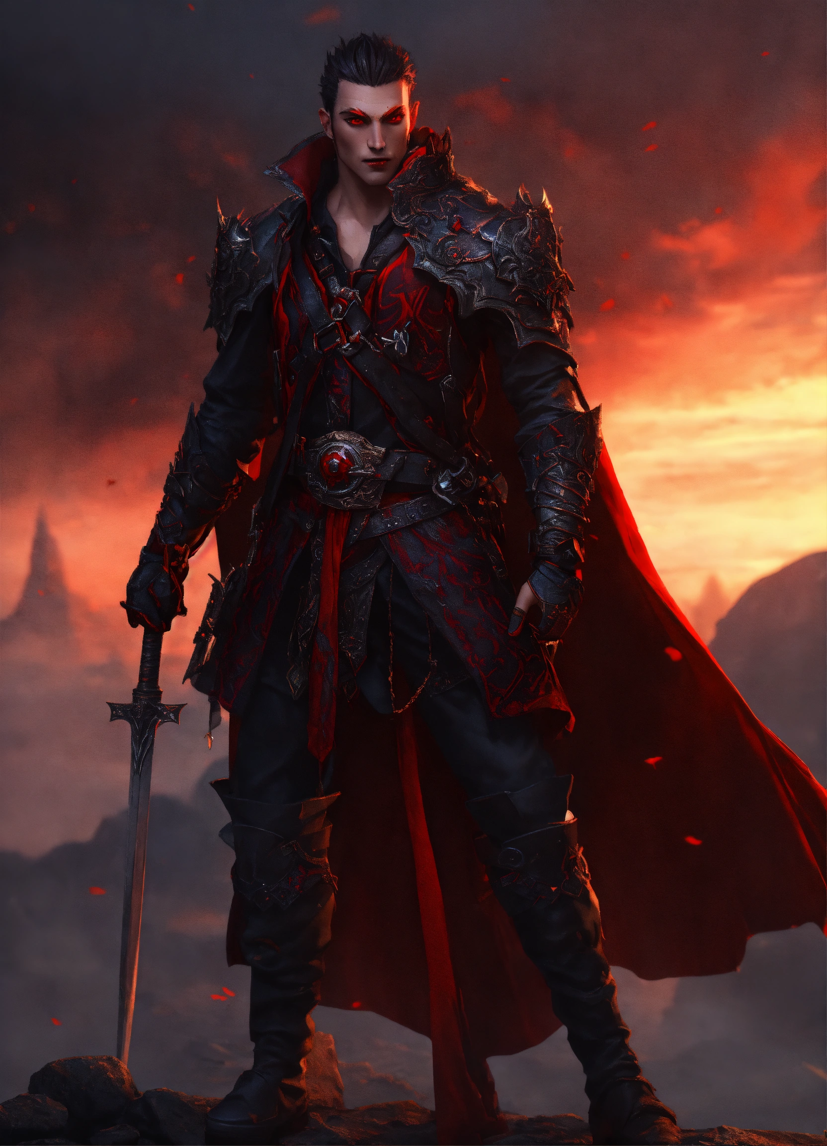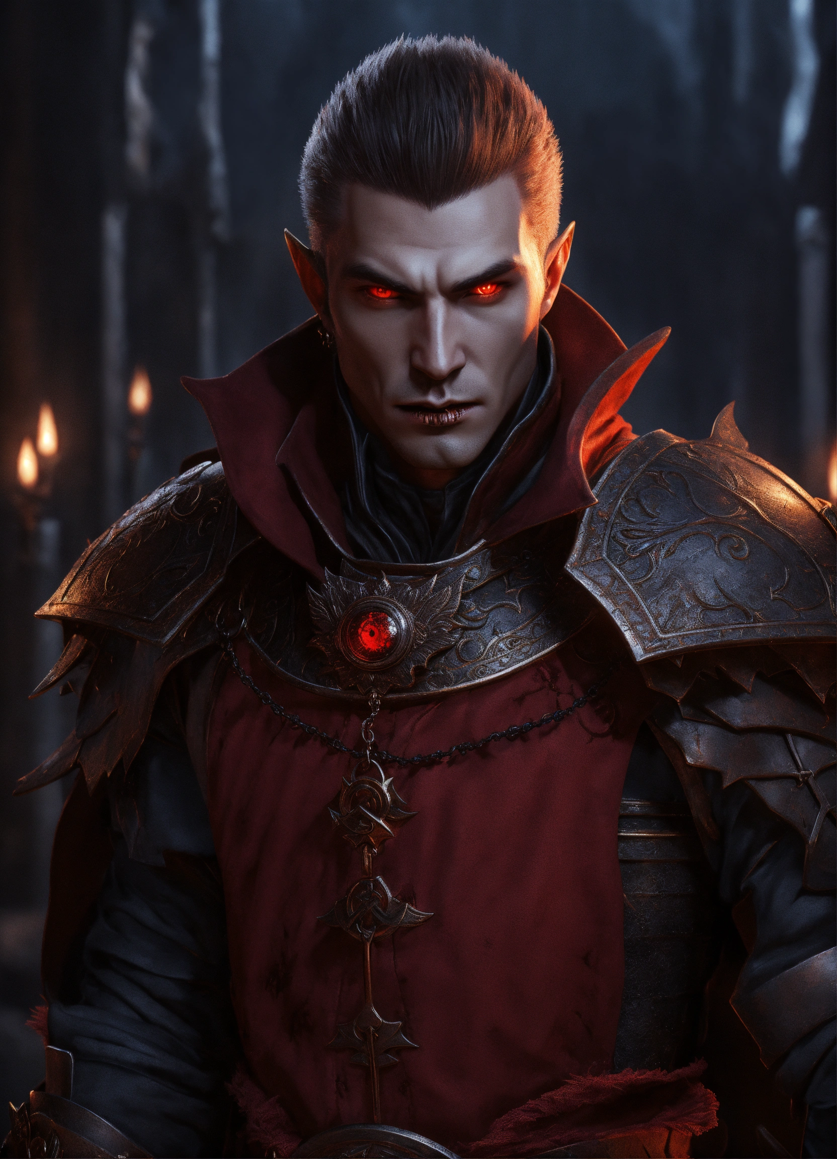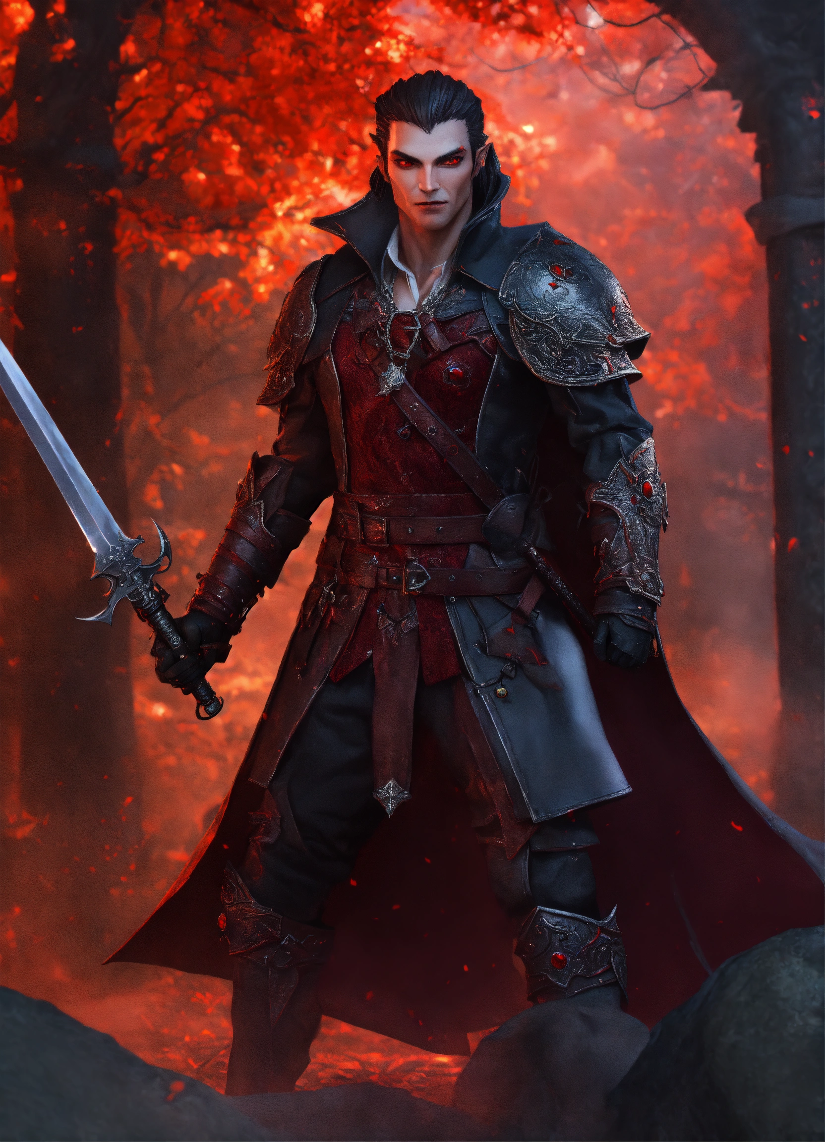 A red eyed gorgeous male vampire warrior 3d d&d fantasy art