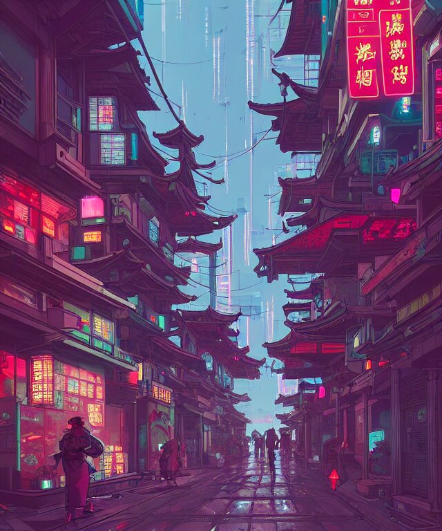 A street view of a cyberpunk chinatown, fantasy, elegant, digital painting, artstation, concept art, matte, sharp focus, illustration, art by josan gonzalez