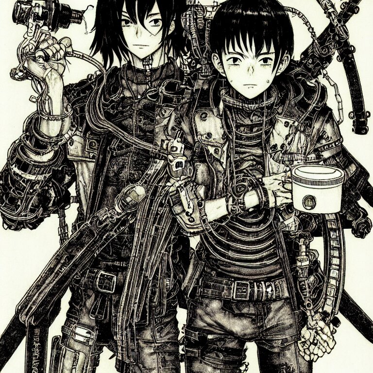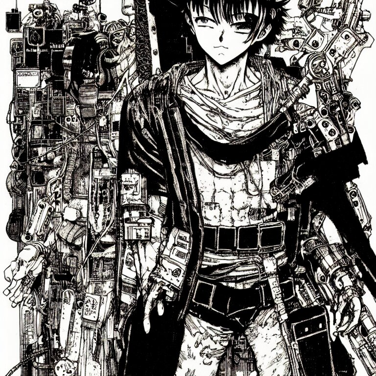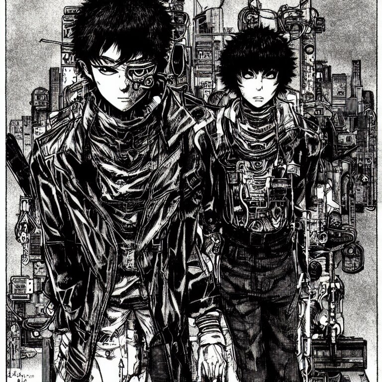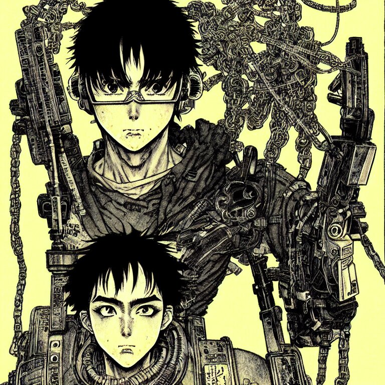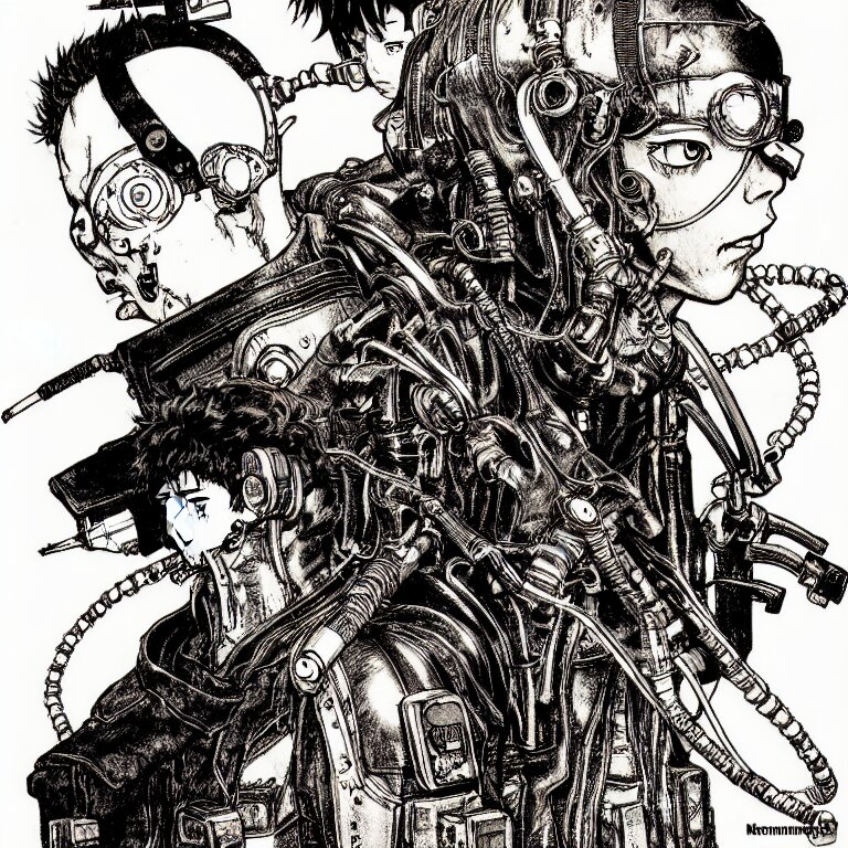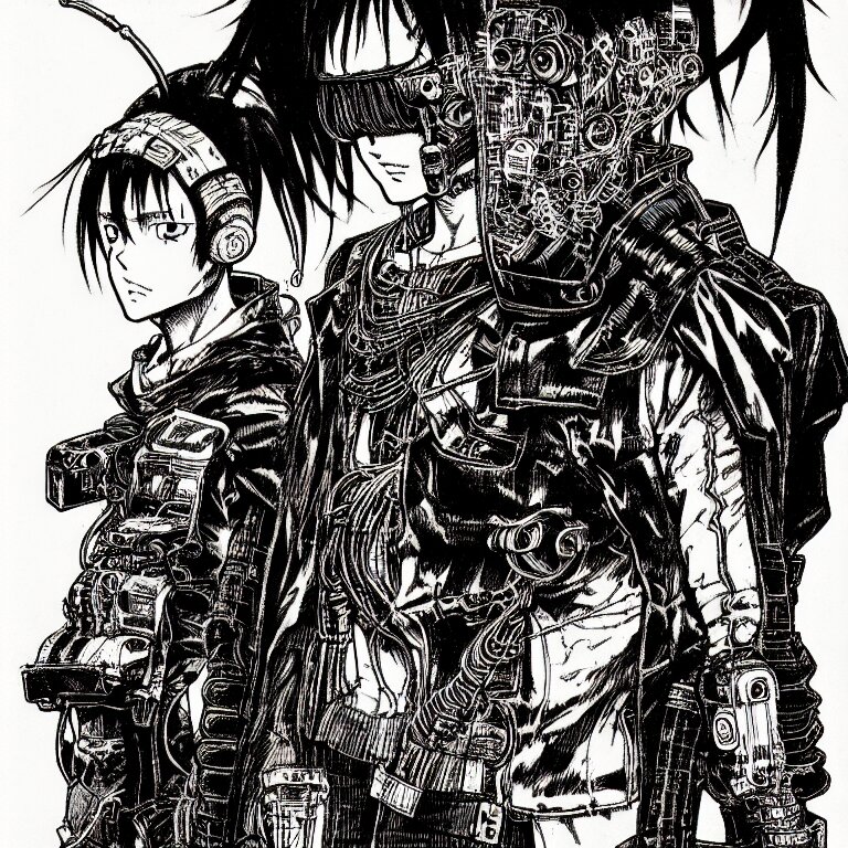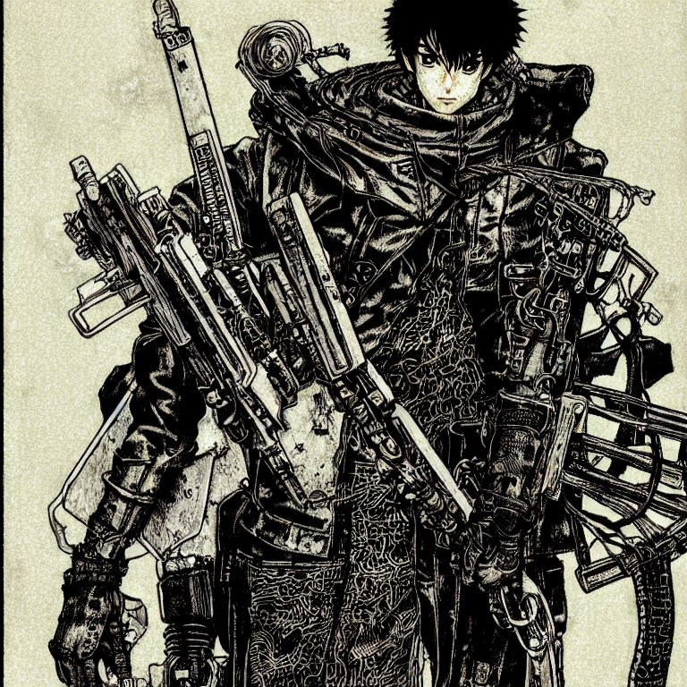 Cursed illustration of cyberpunk wired hunter, manga style of kentaro miura, by norman rockwell, weirdcore