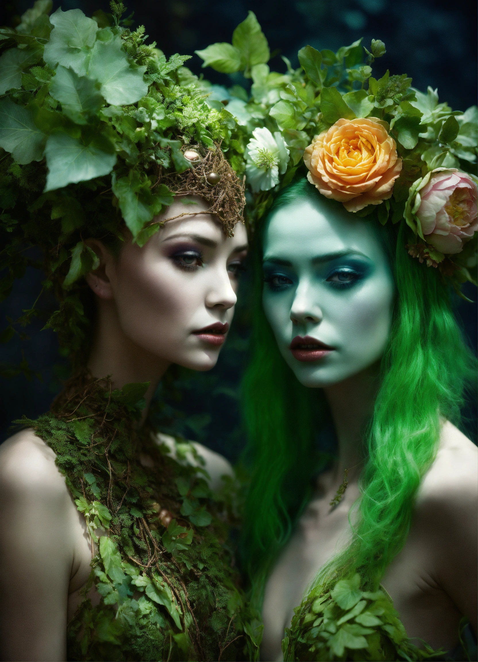 Subject light dryad vs dark dryad, style multidimensional, by marie severin, natalie shau, rafael albuquerque, sabbas apterus