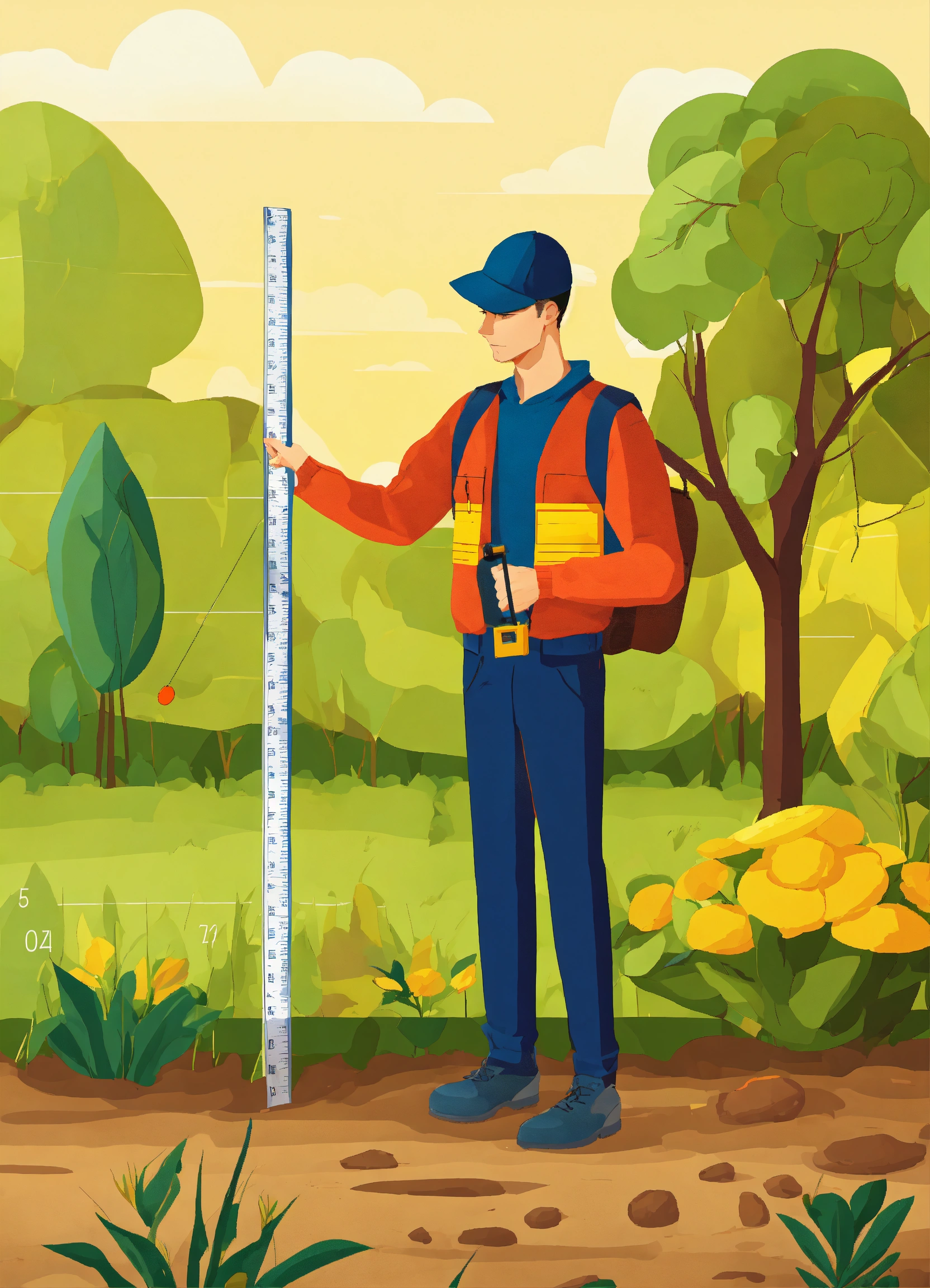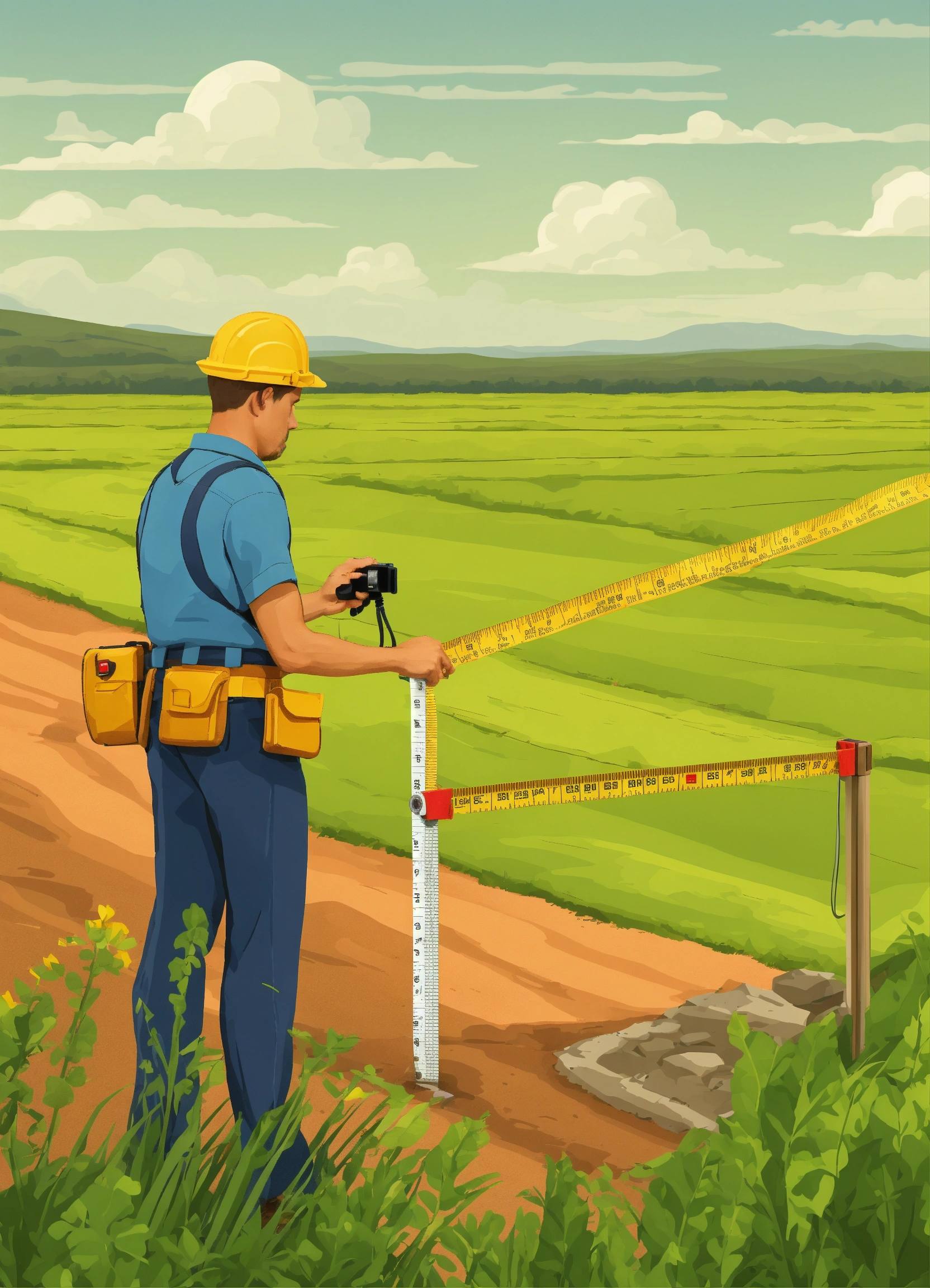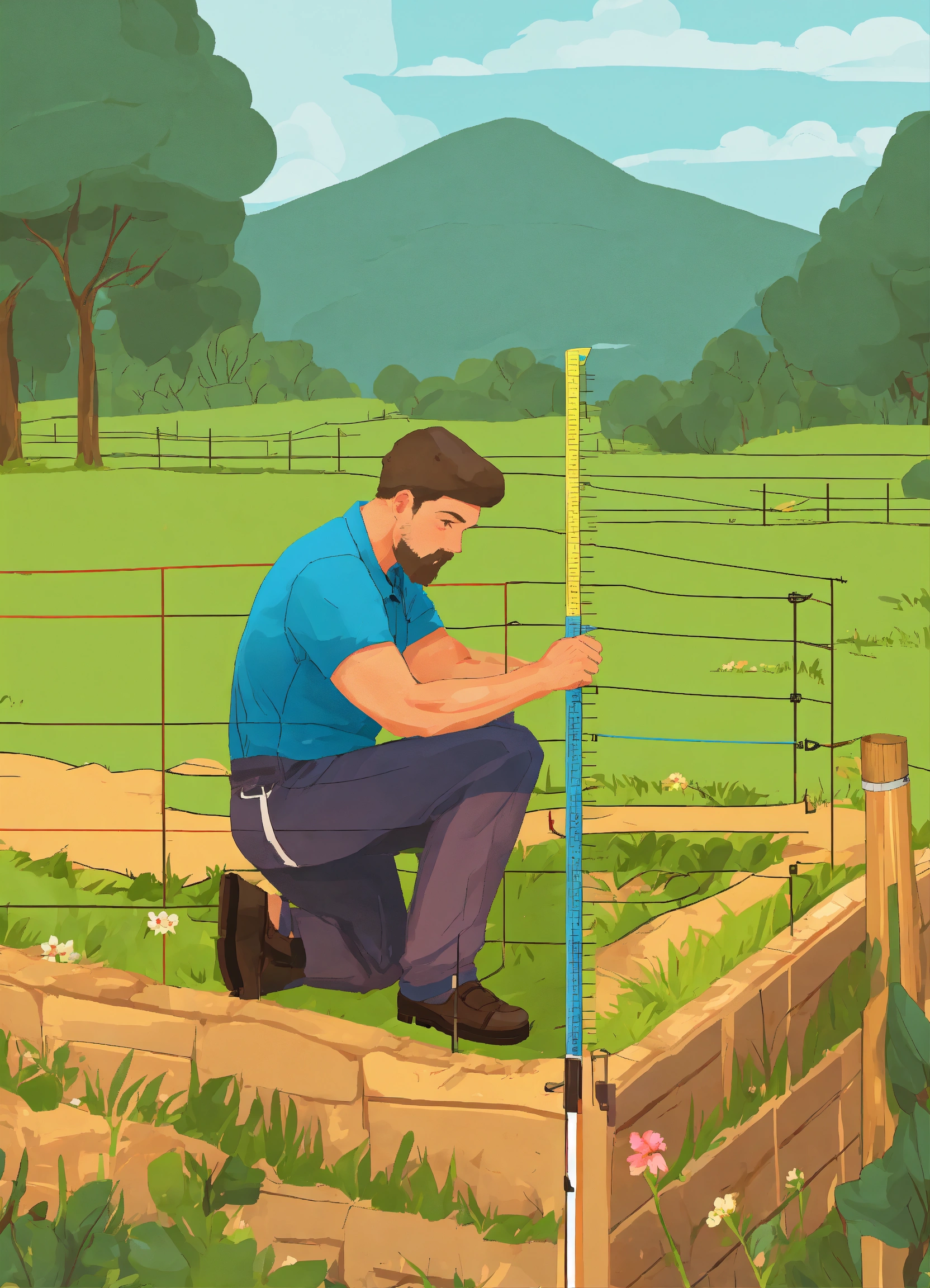 Man using a measuring tape to measure the perimeter of his land