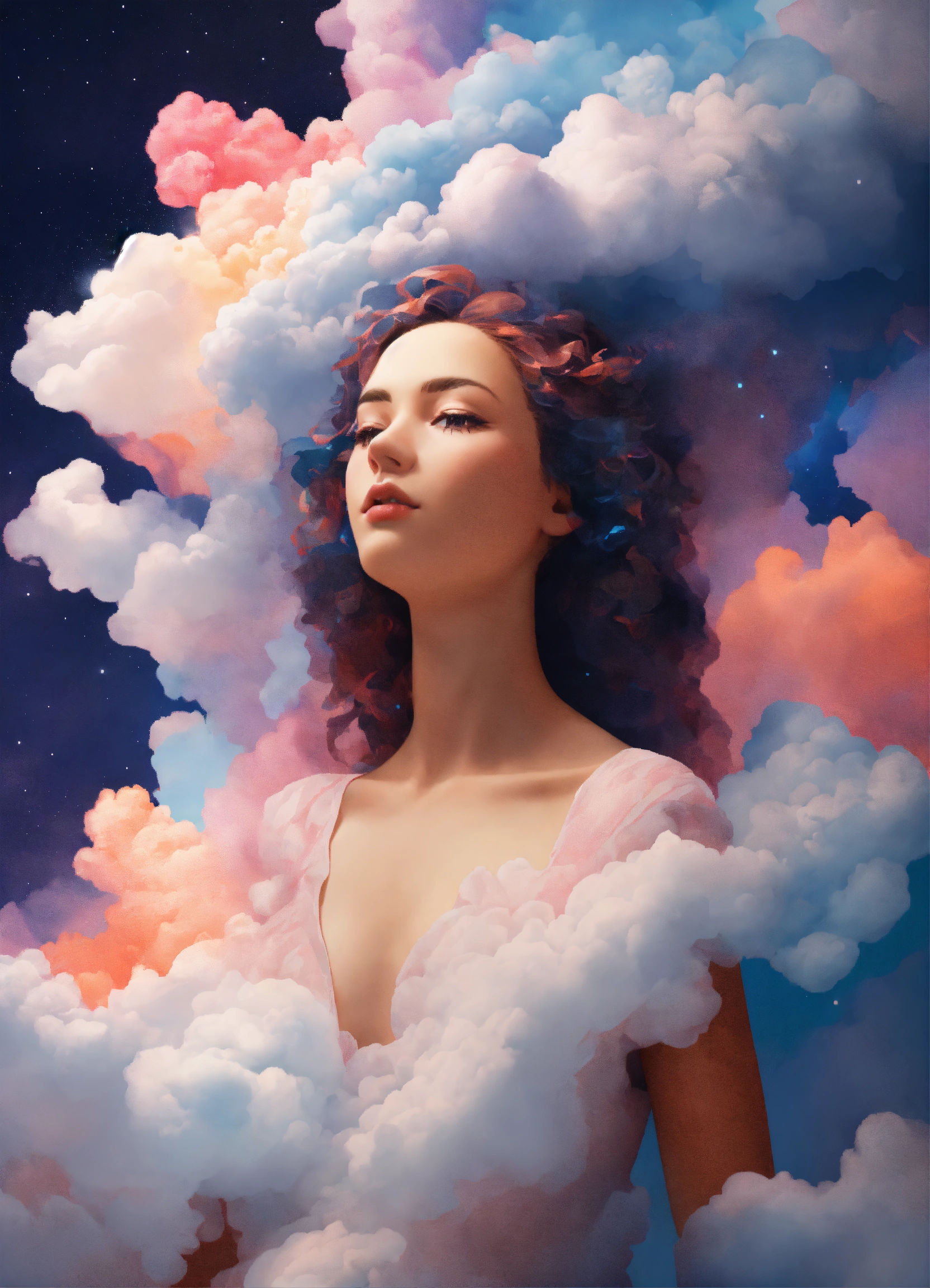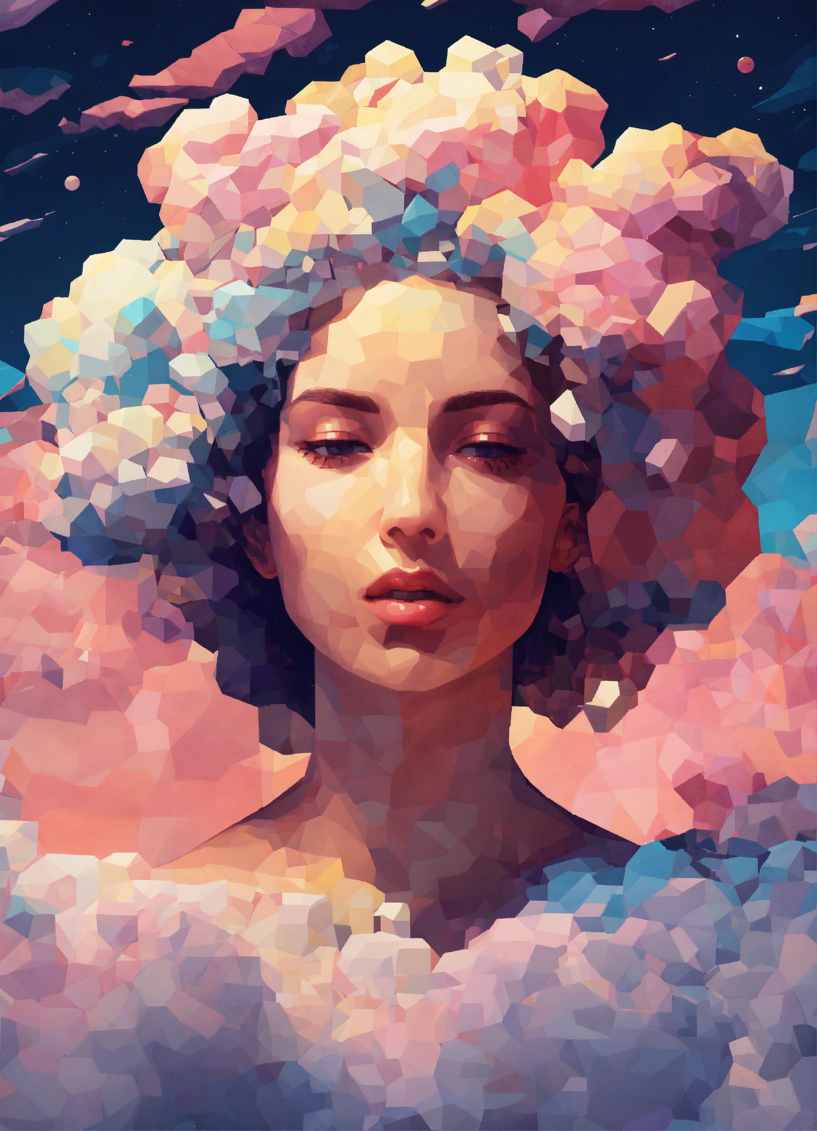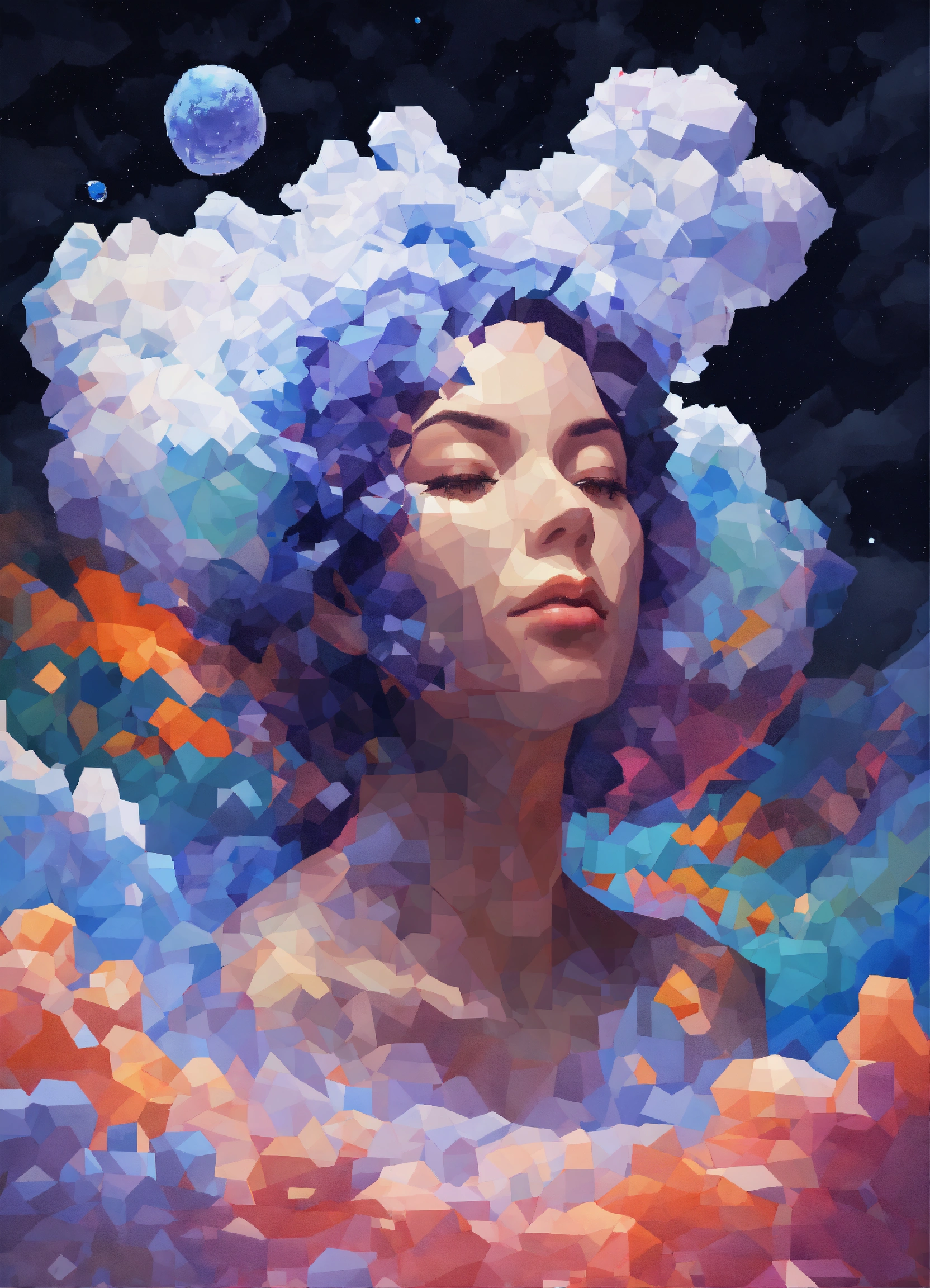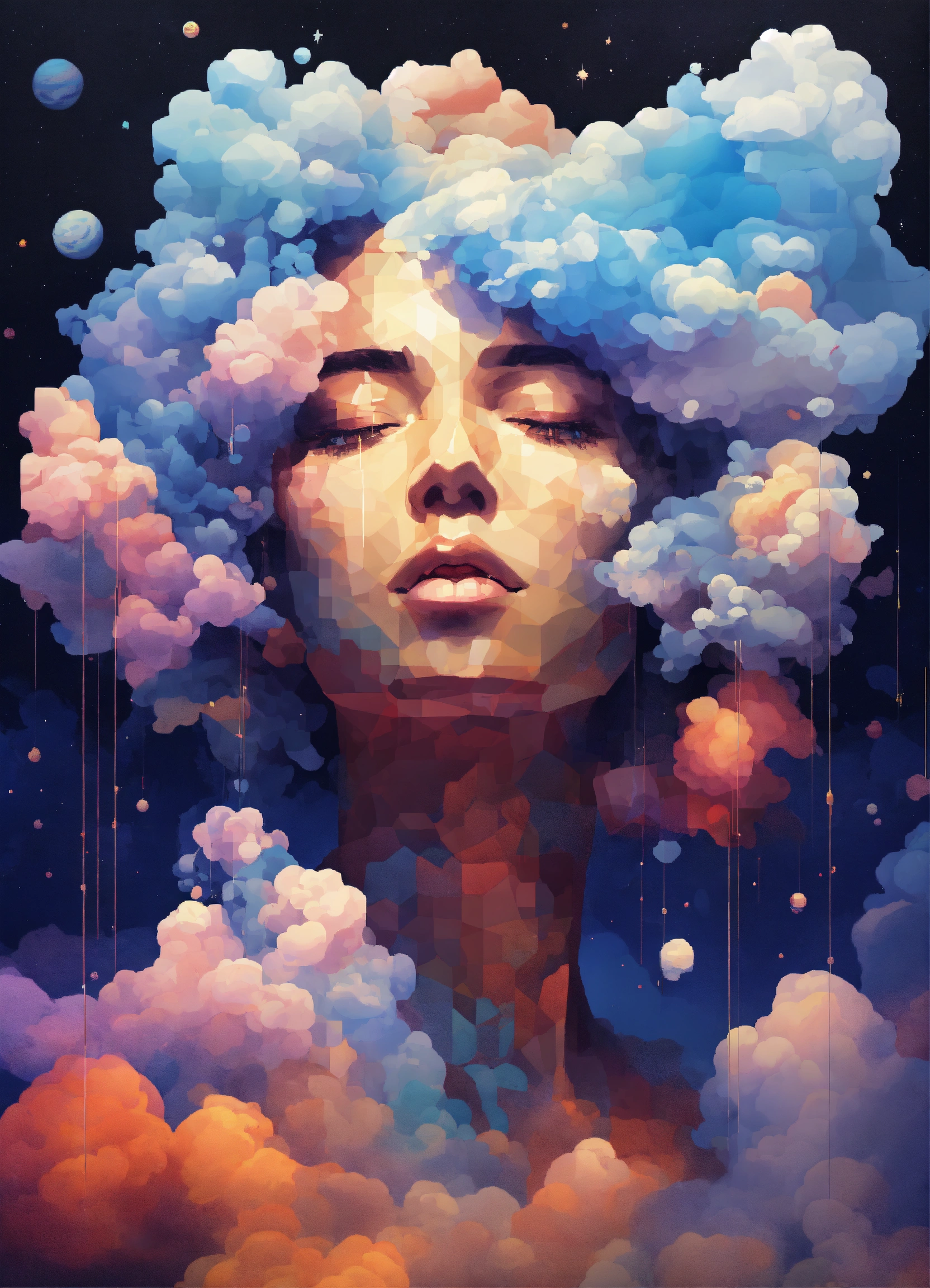 Woman made out of clouds in space ultra polygone 3d abstract painting pixel art