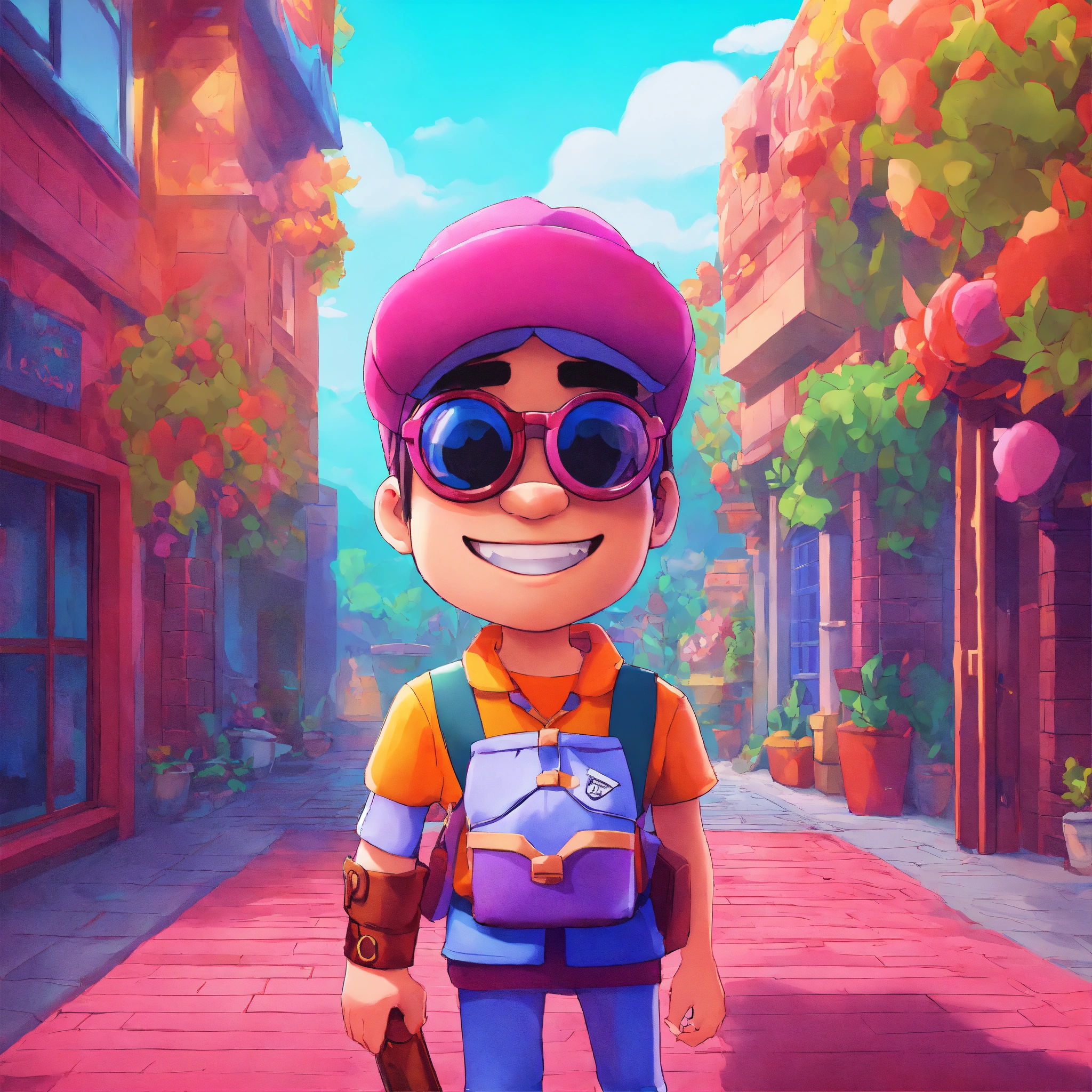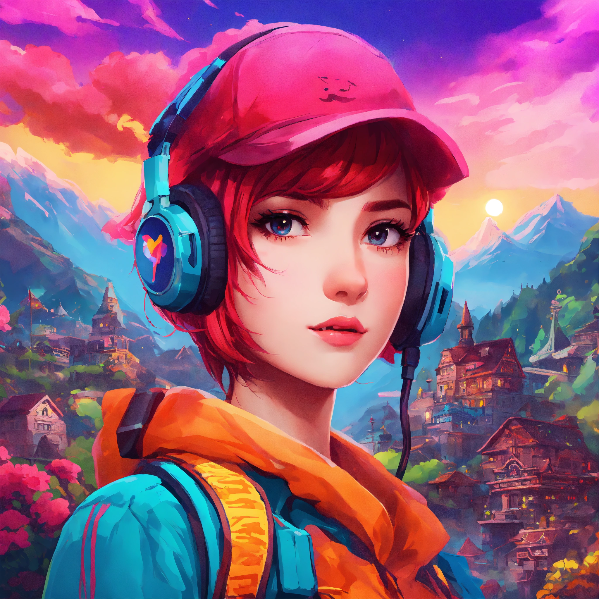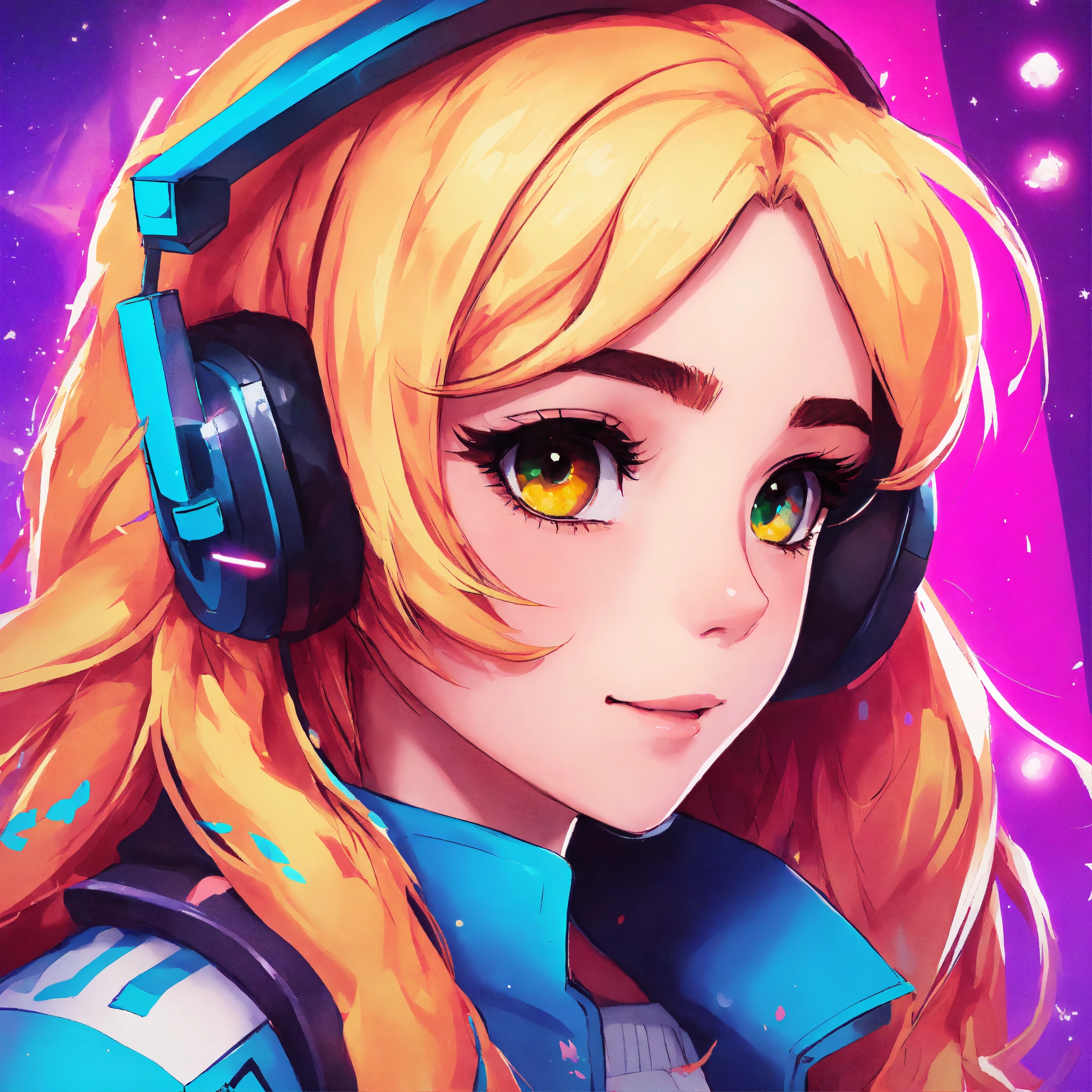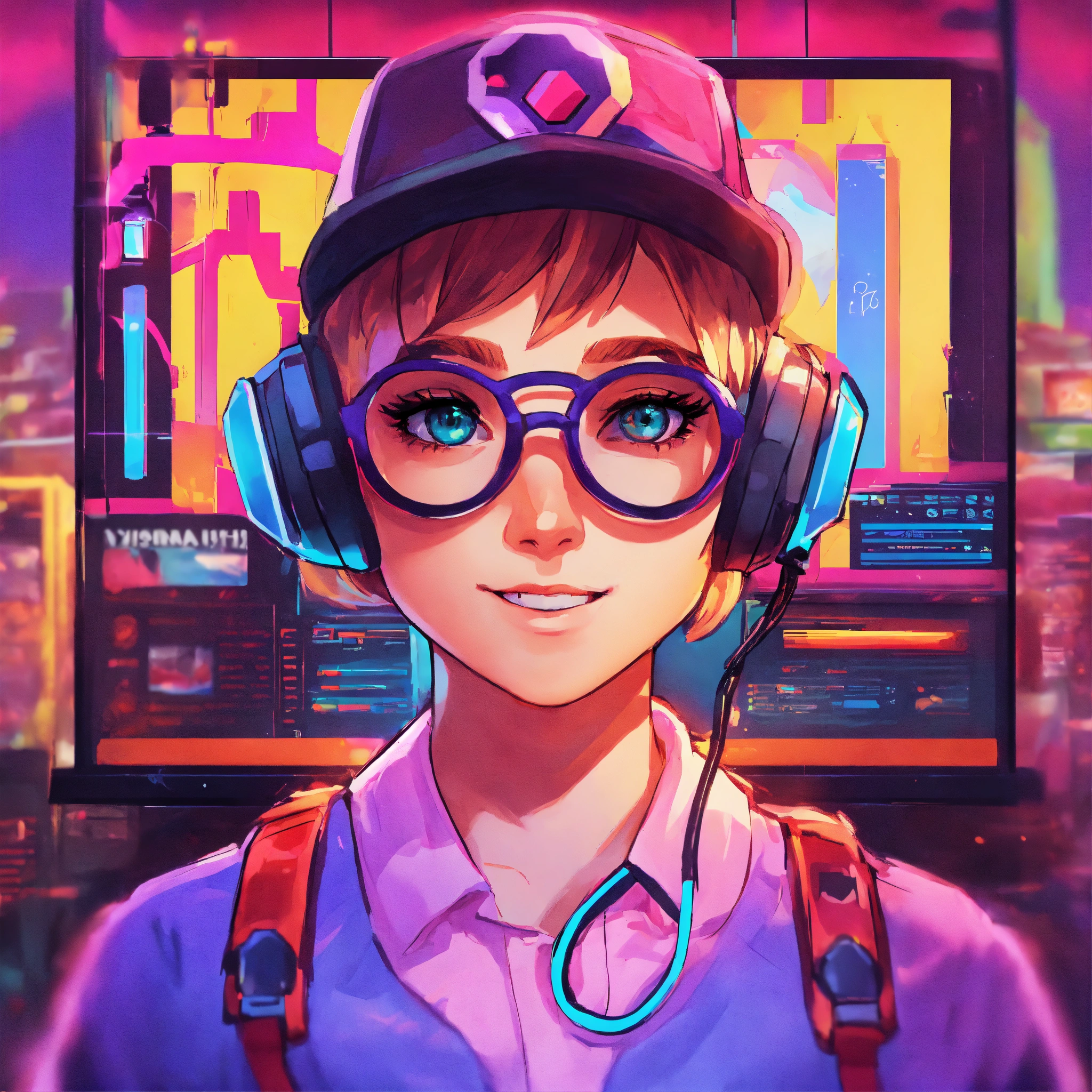Generate a 98x98 profile picture for a youtube gaming channel that seamlessly marries the worlds of gaming and education. utilize a minimalist art style featuring vivid neon colors with strong contrasts and sharp lighting. the central element should be a whimsical, fantasy character reminiscent of a grungy mii portrait. craft an eye-catching image that embodies the essence of both gaming and learning, all while fitting neatly within the small square frame. ensure the profile picture visually conveys the channel's harmonious blend of entertainment and education, without the need for text