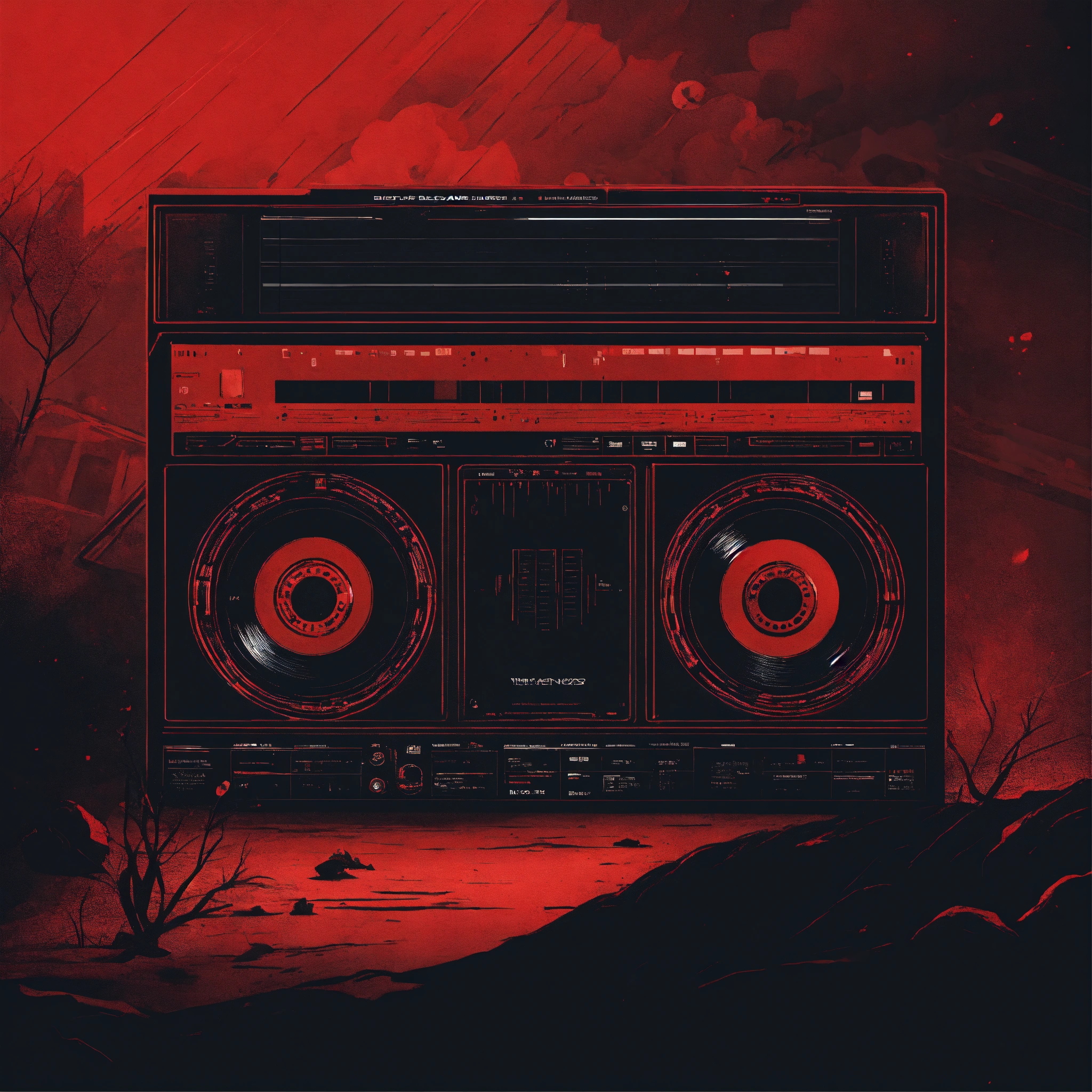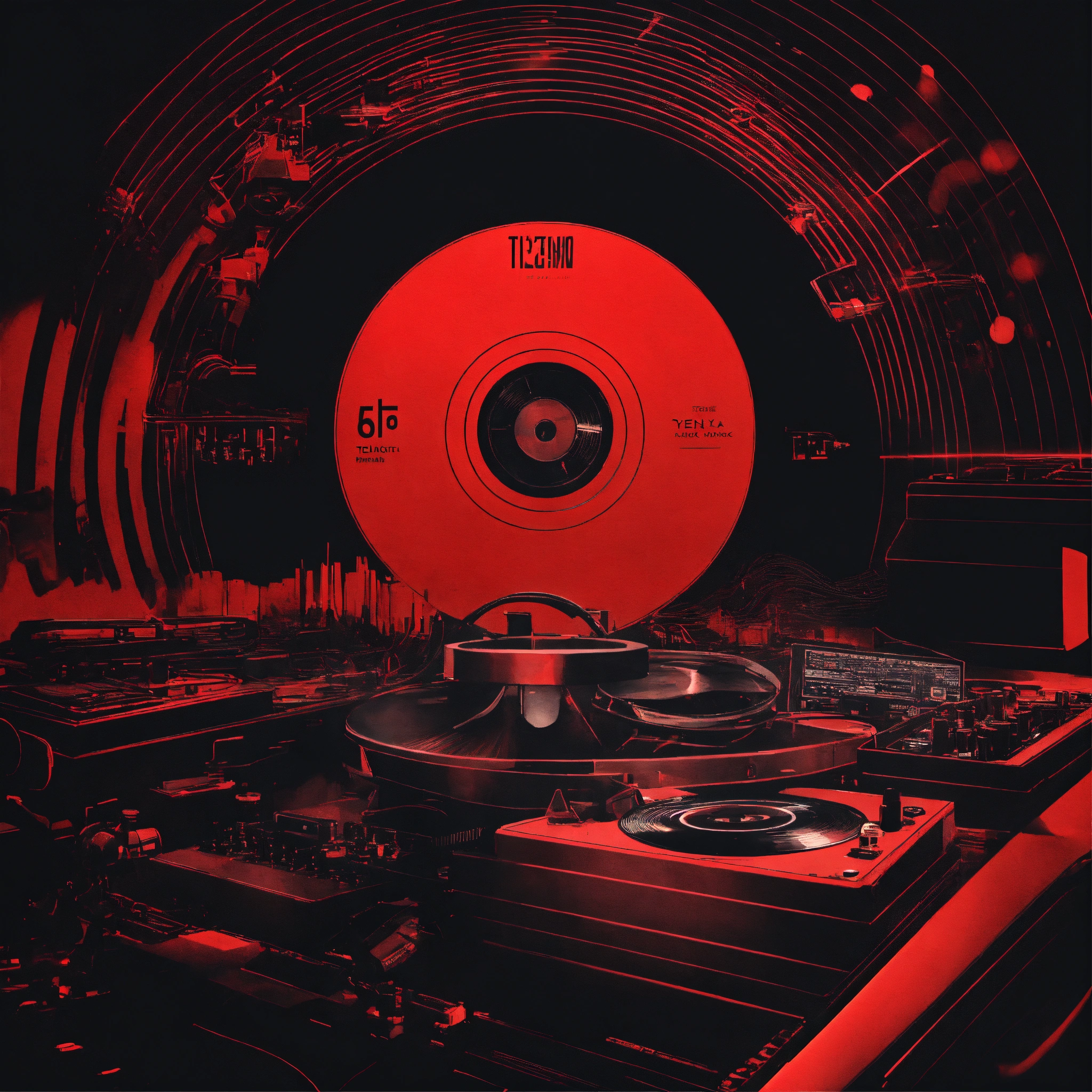 Nostalgic album art techno music black and red tone with black hand