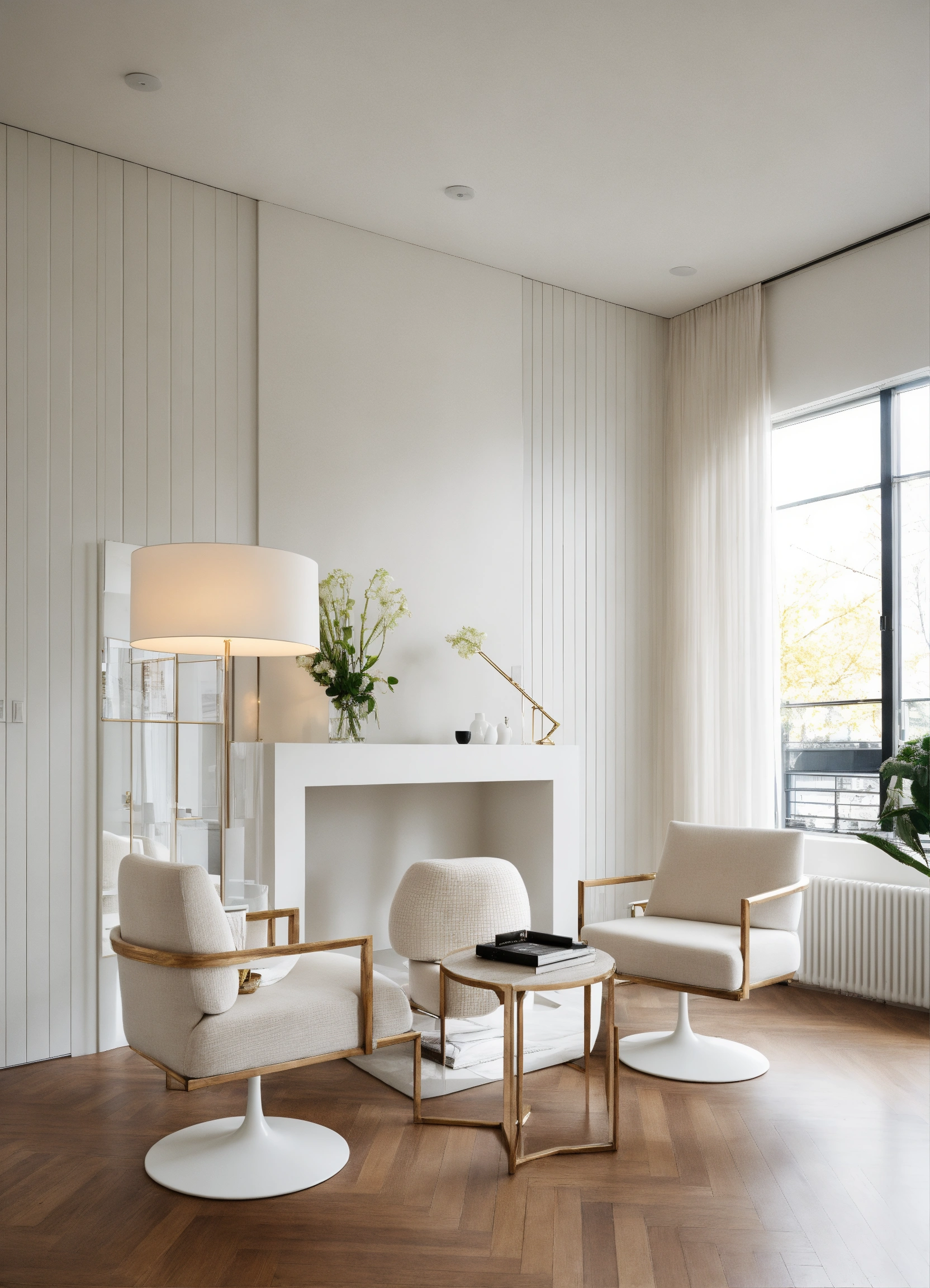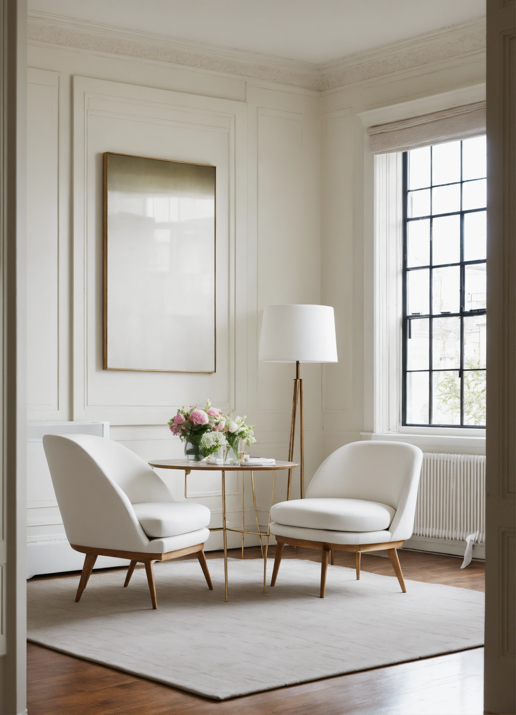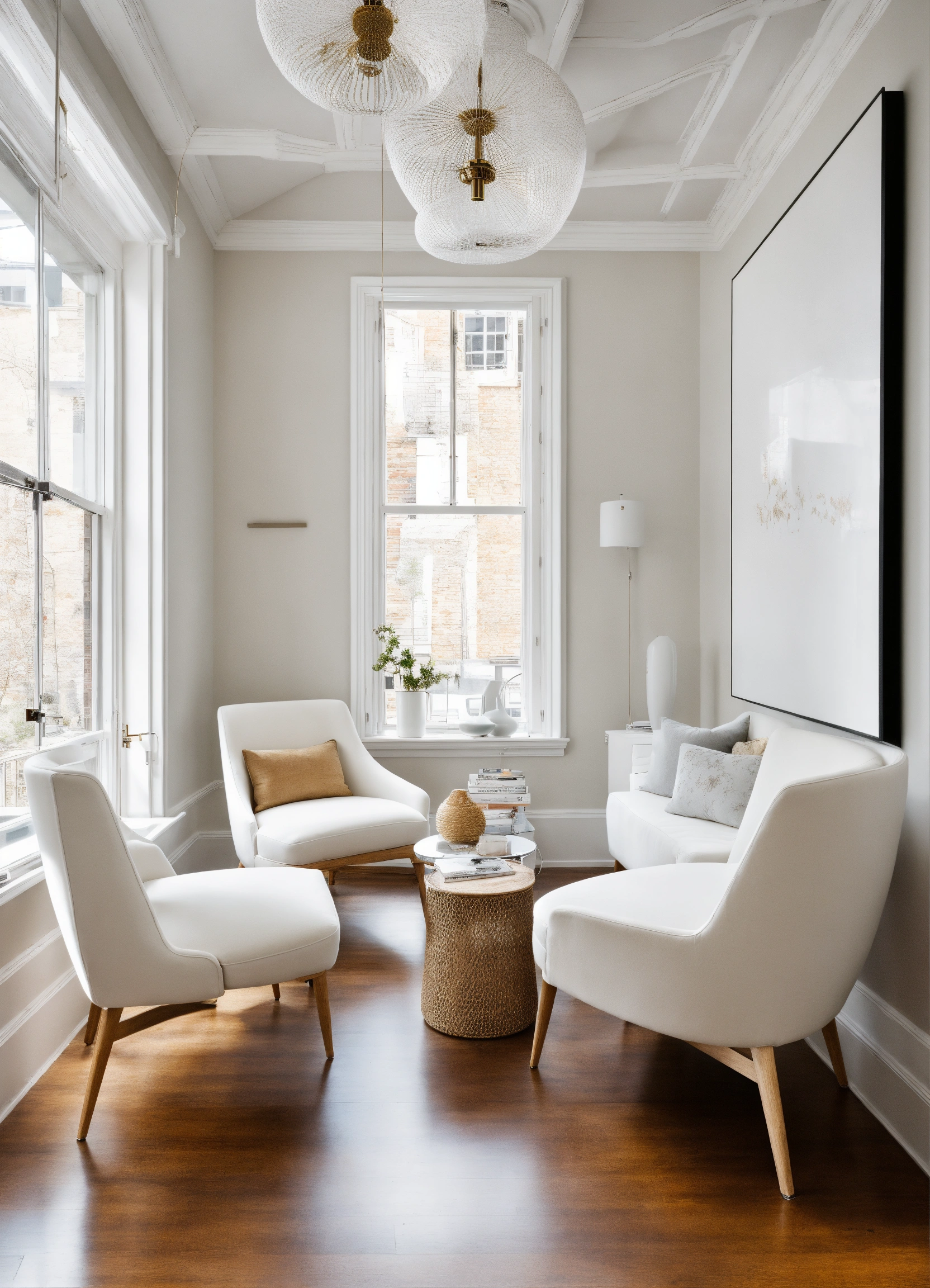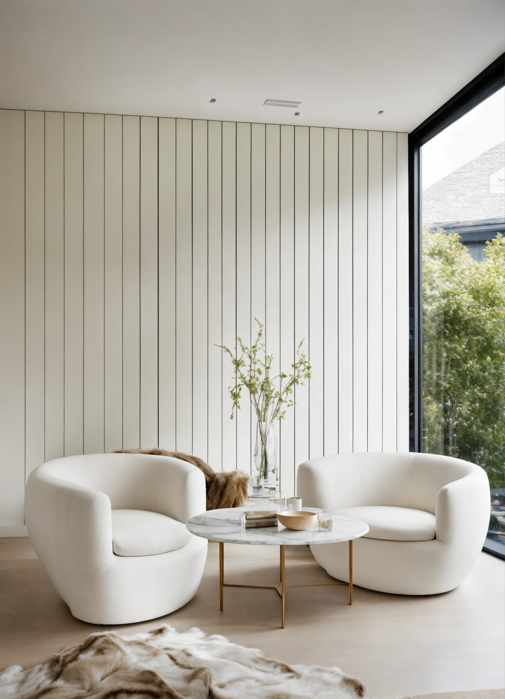 White contemporary room with 2 large white chairs