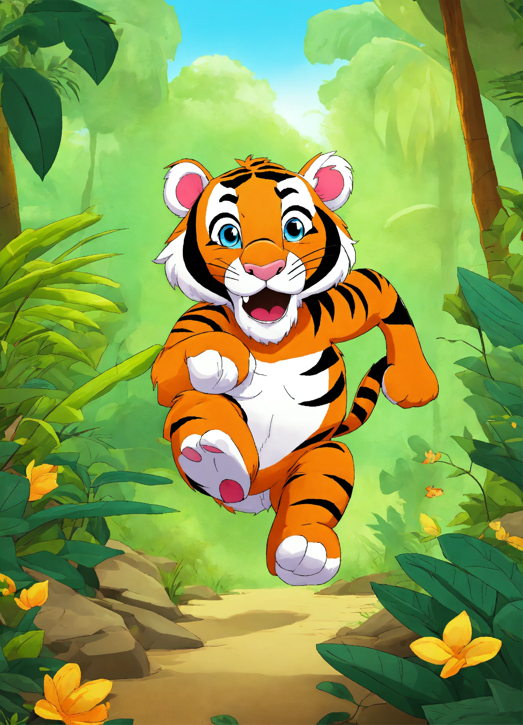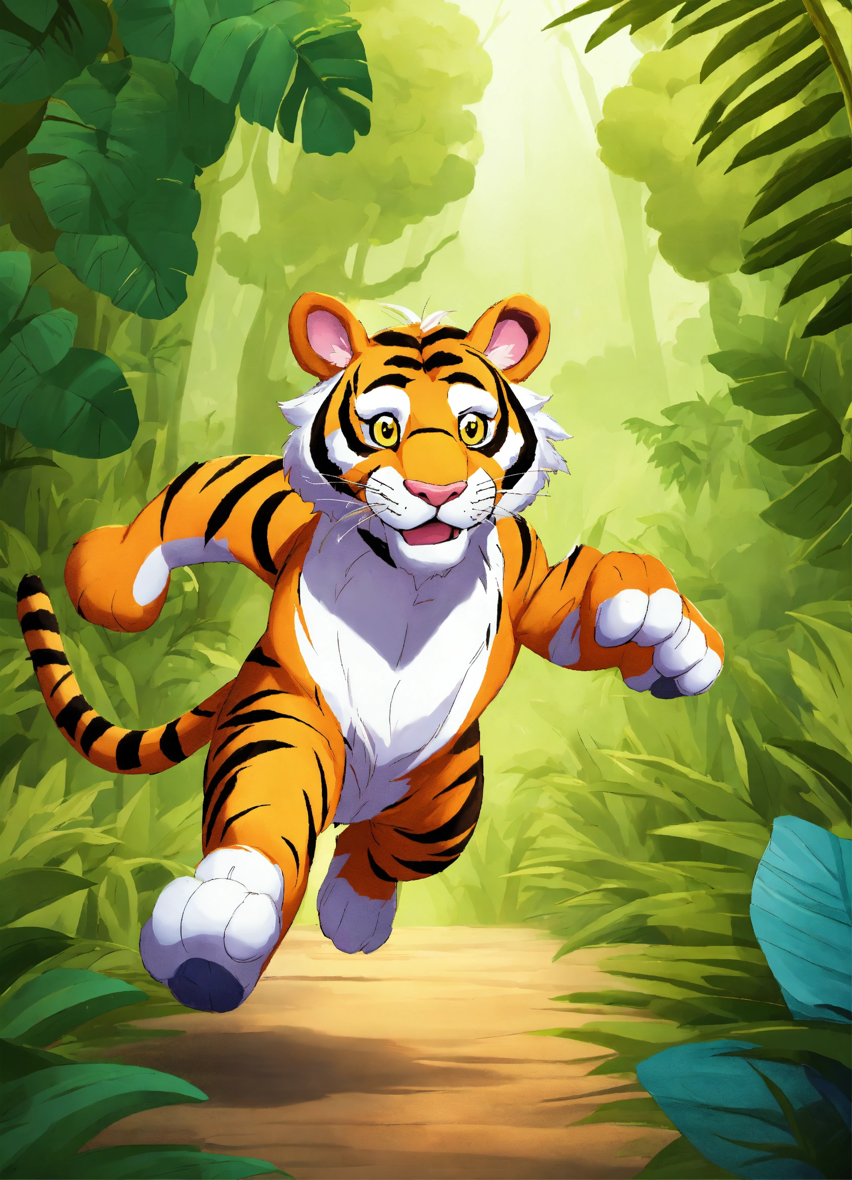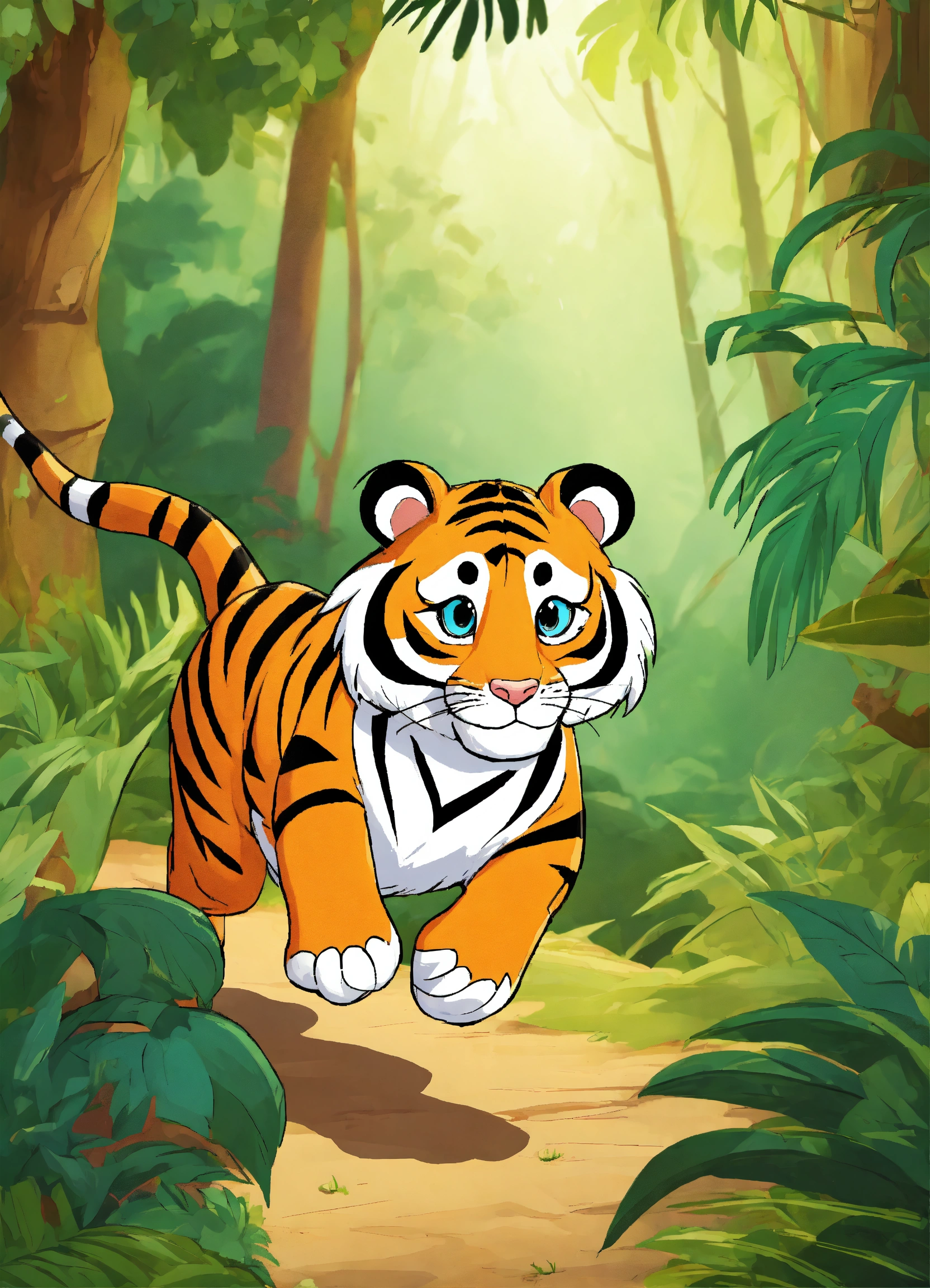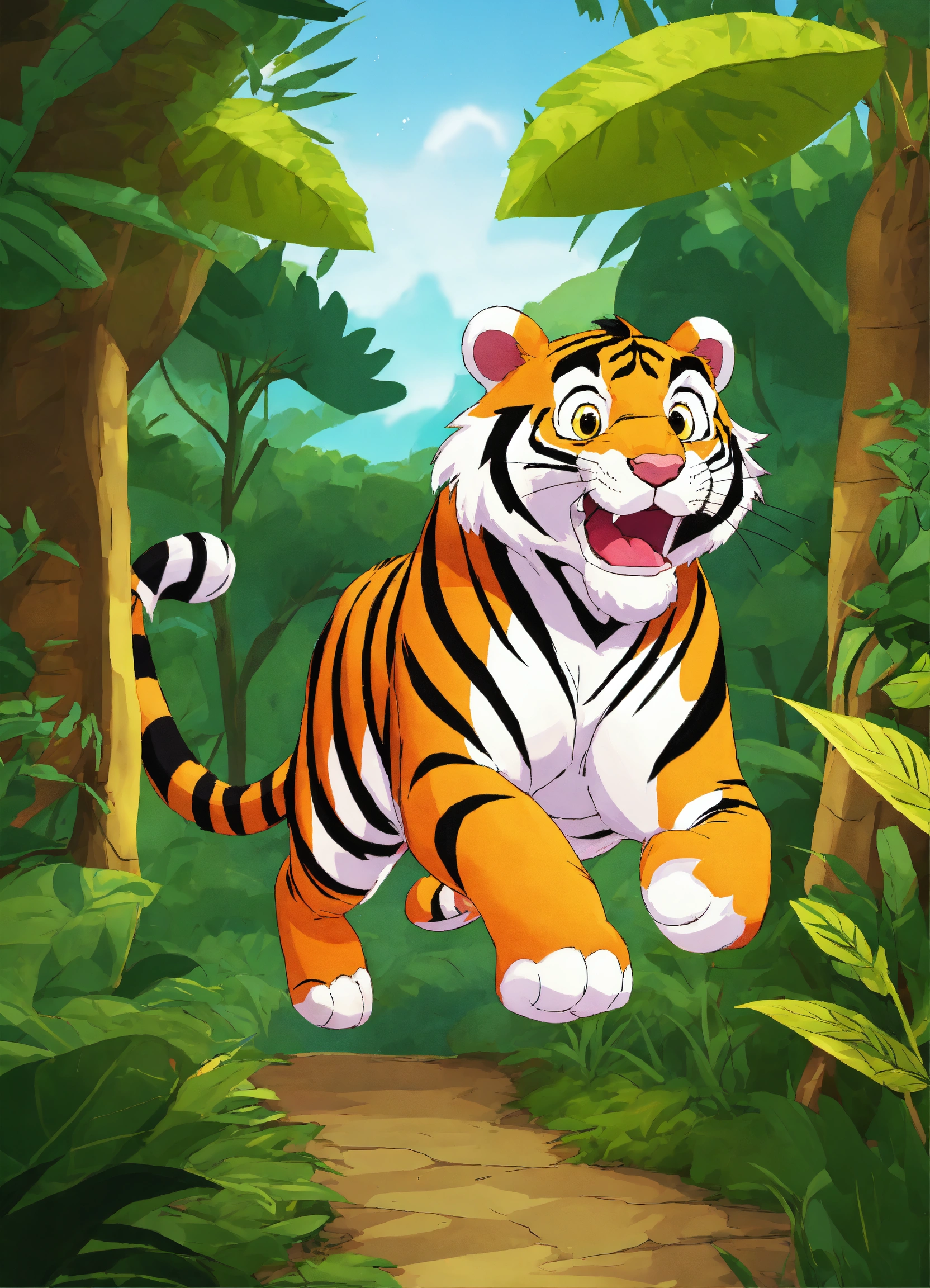 Let cartoon tiger running in jungle