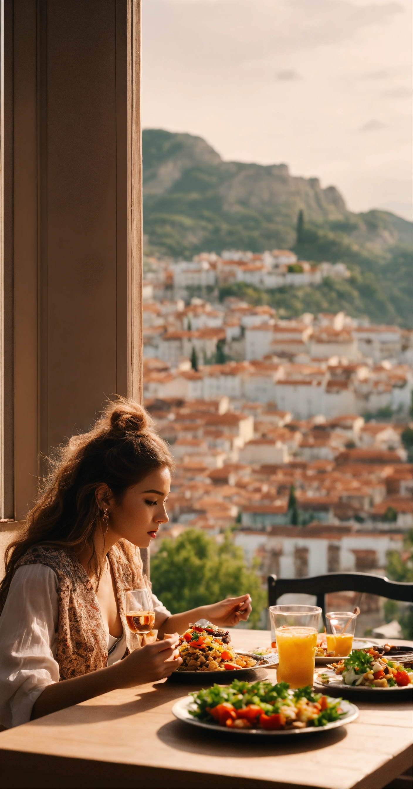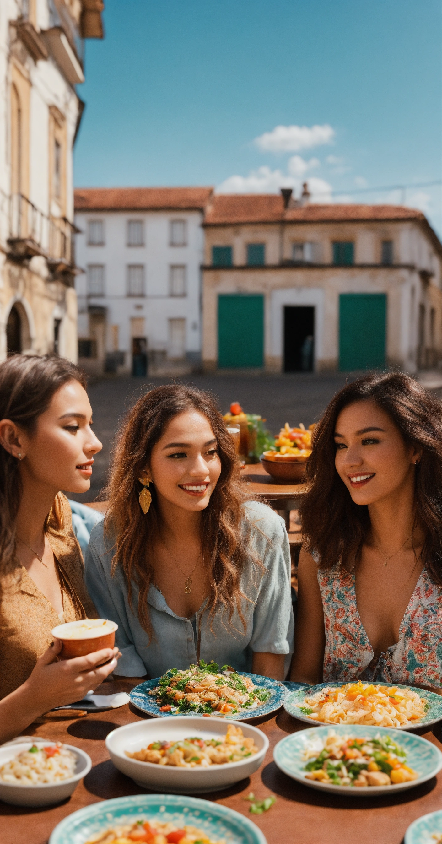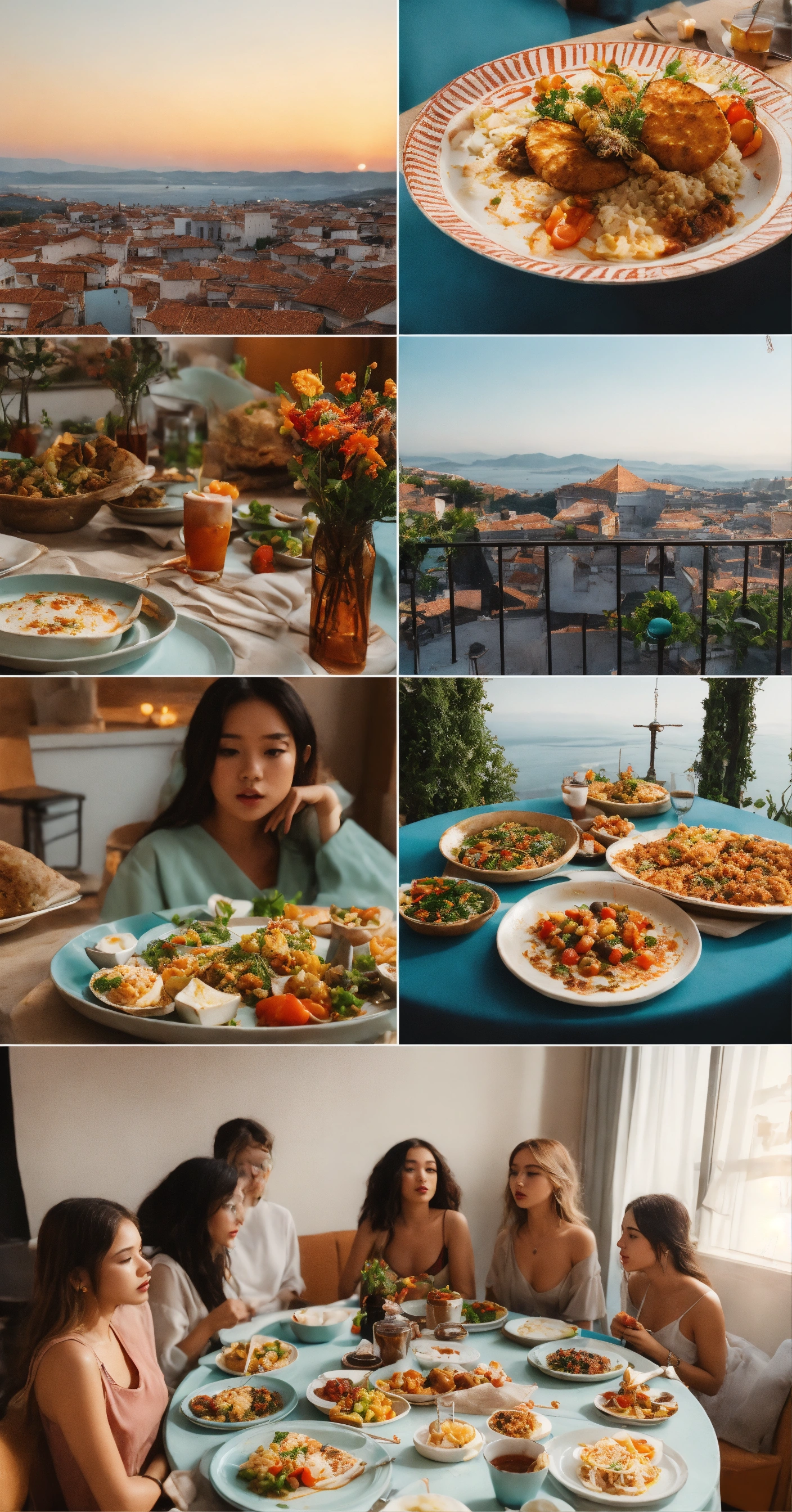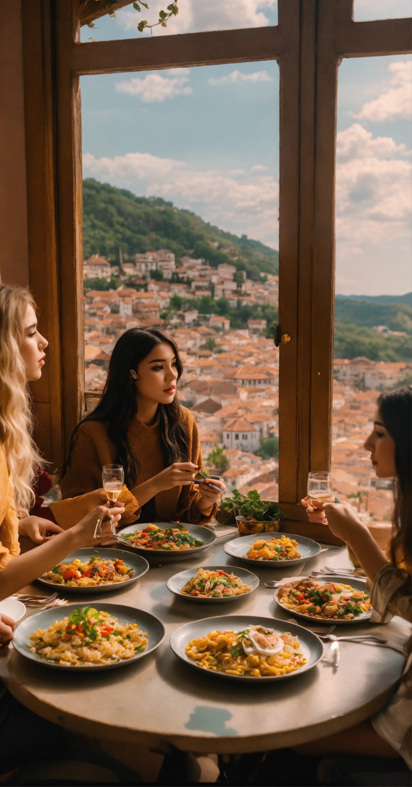 A group of women sitting at a table with plates of food, tiktok video, southern european scenery, meme template, kuntilanak, empty city, inspired by sebastian spreng, frequency indie album cover, trending on interfacelift, local close up, tiktok, left, 1 4 4 p, terem, text
