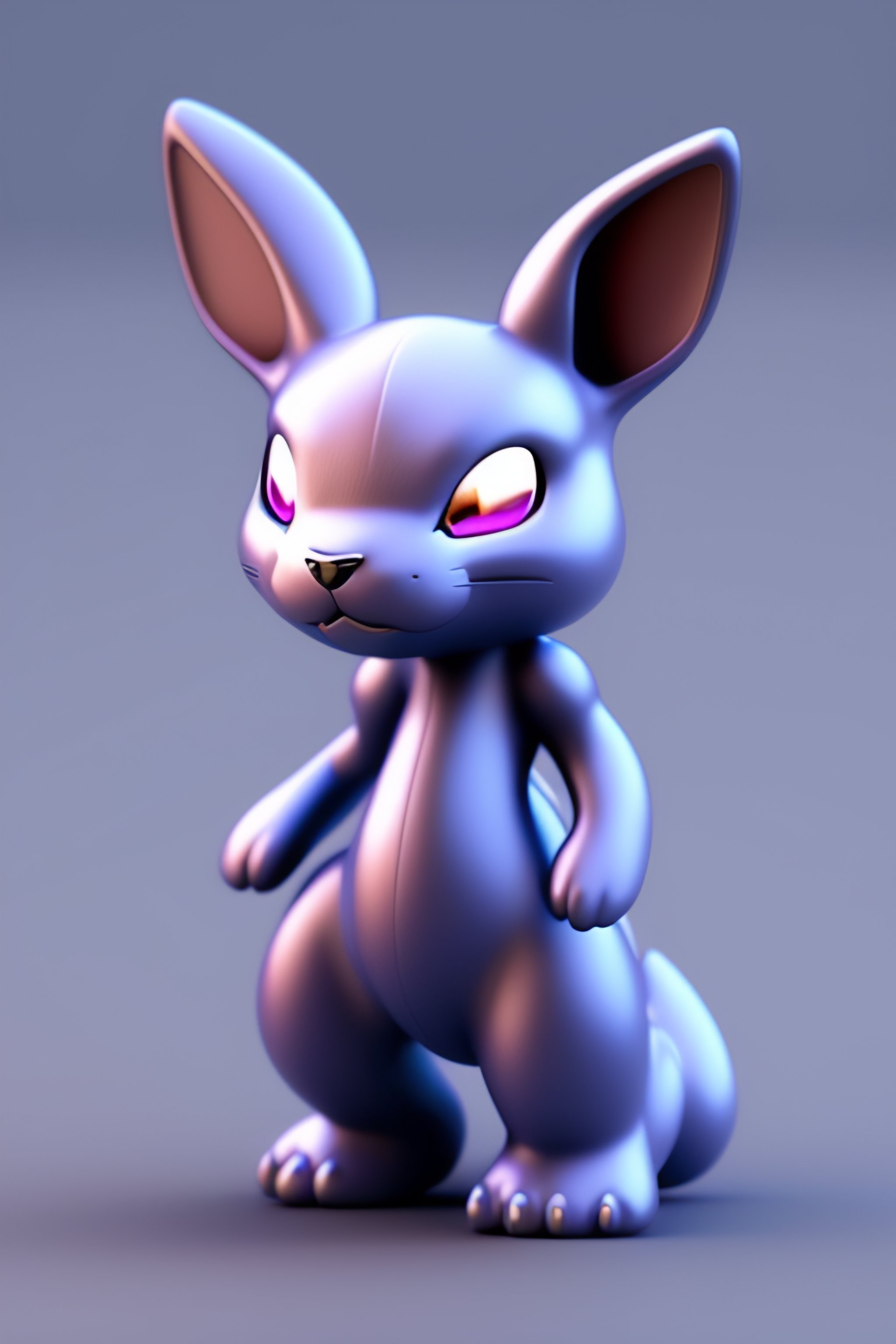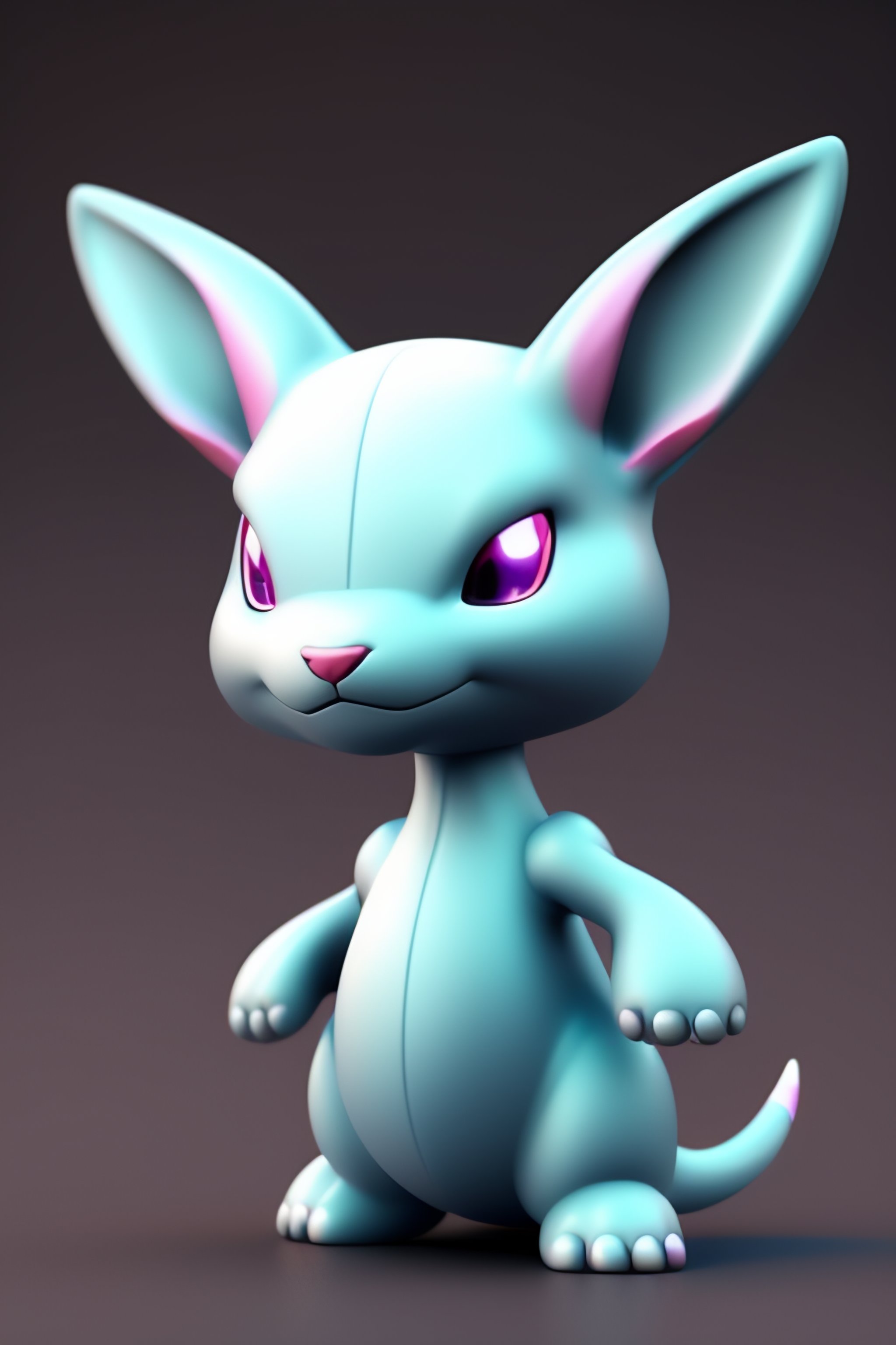 Cute 3d render simple cartoon of toy art mewtwo pokemon