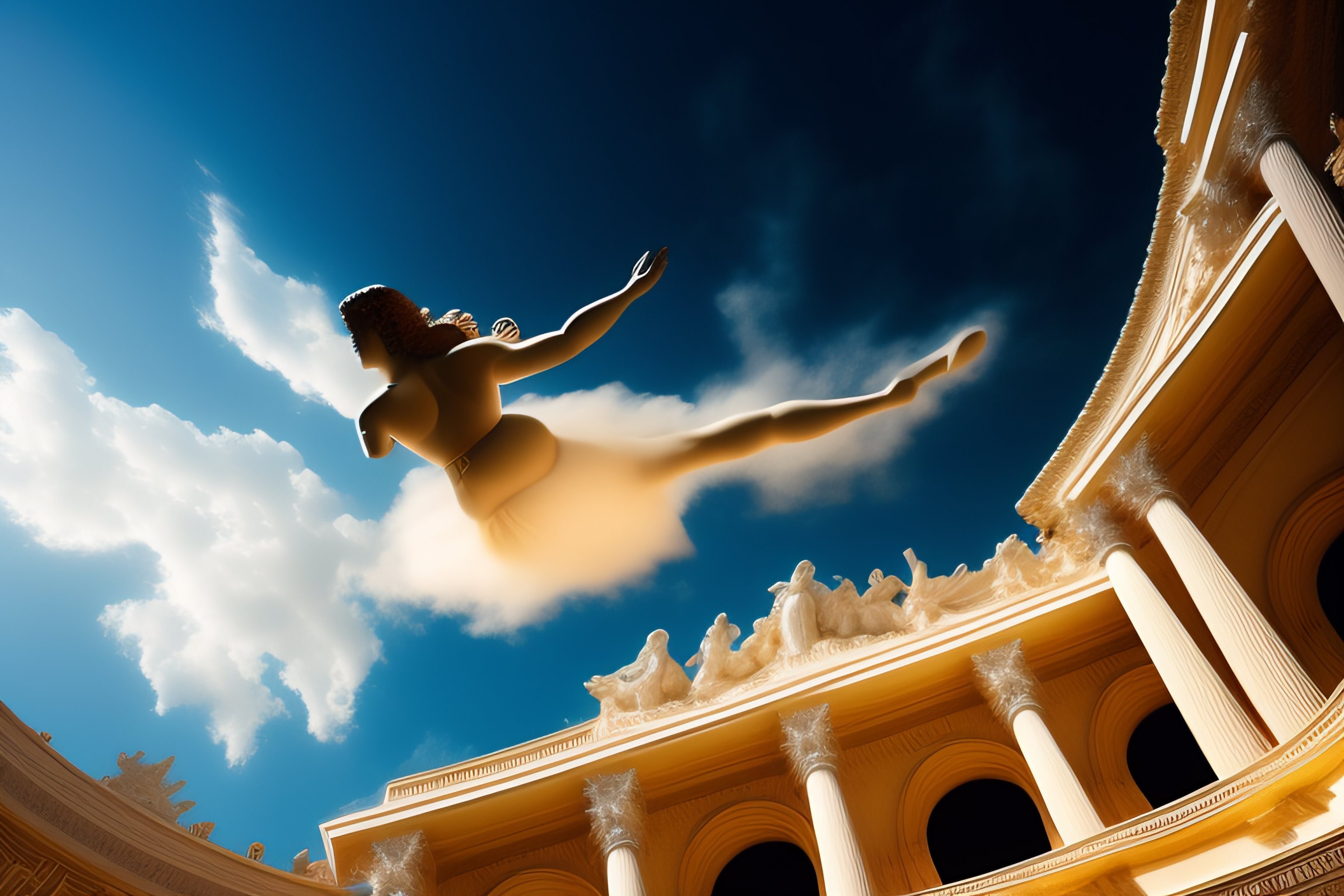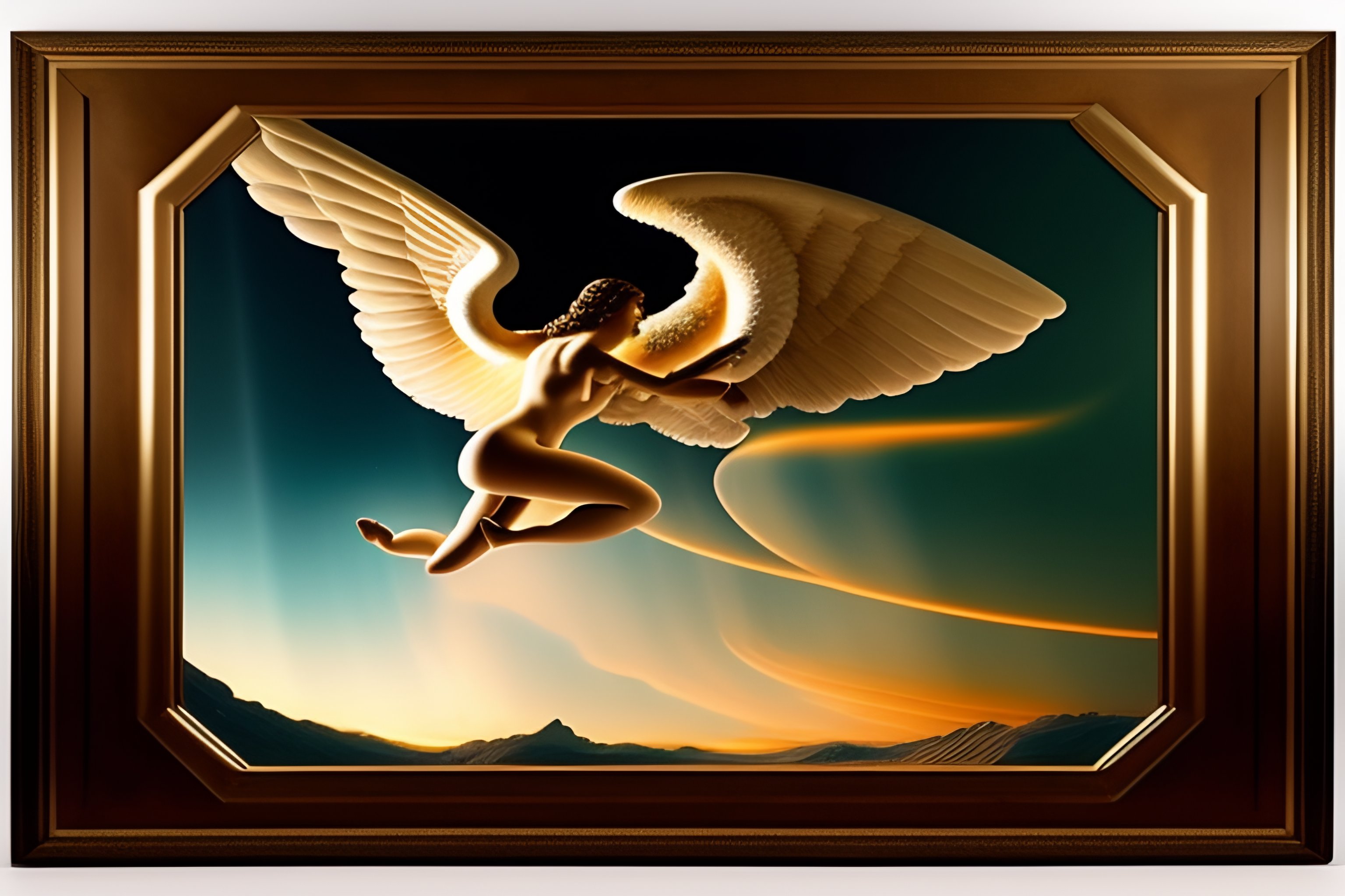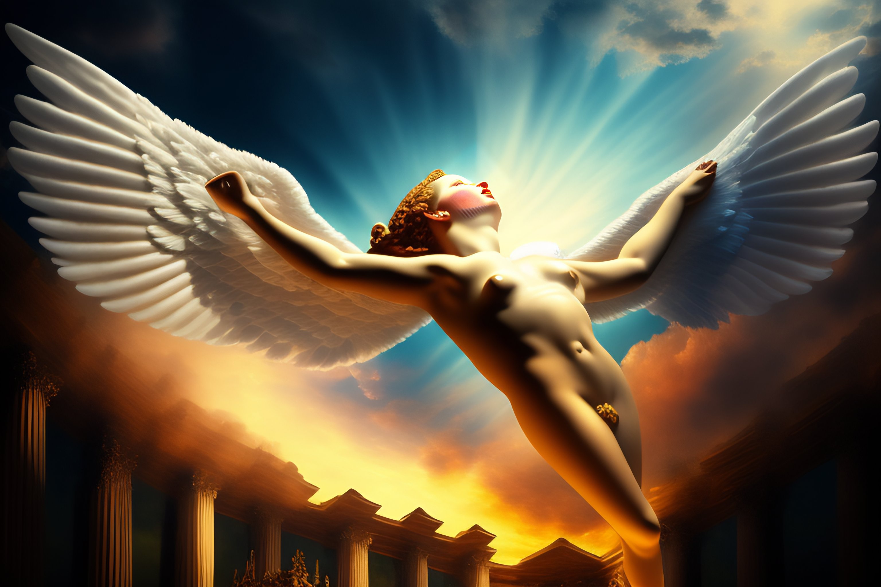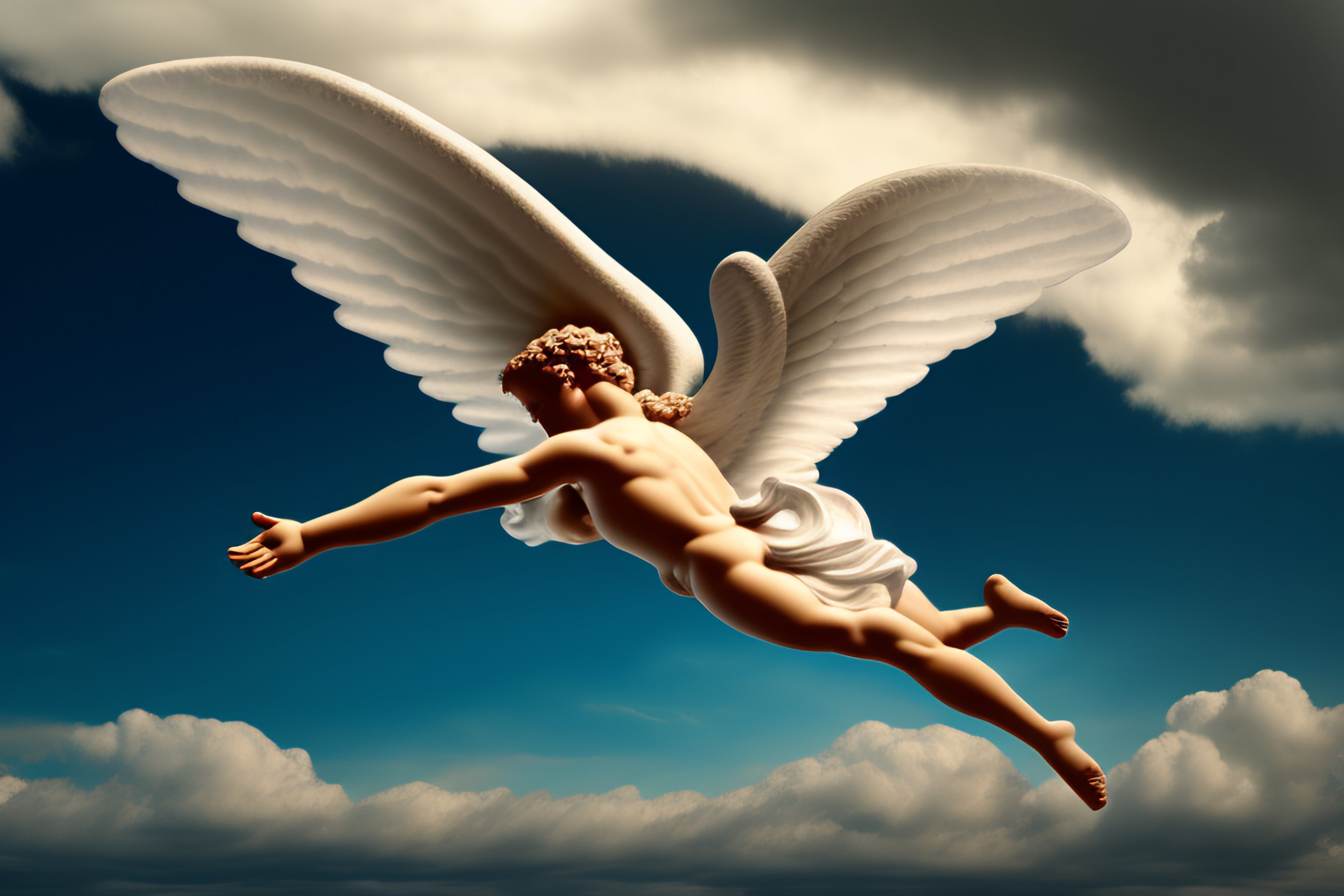 Roman art of an angel falling on their back in the sky