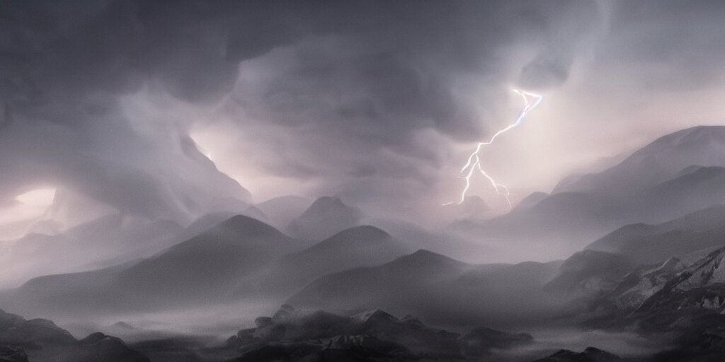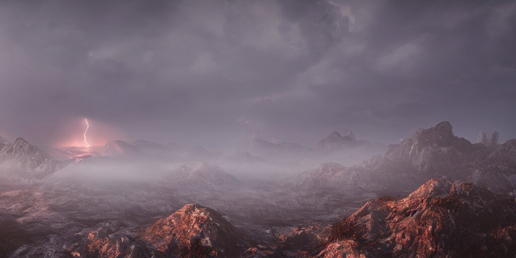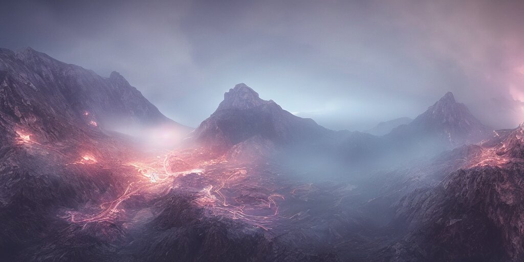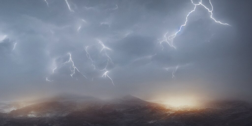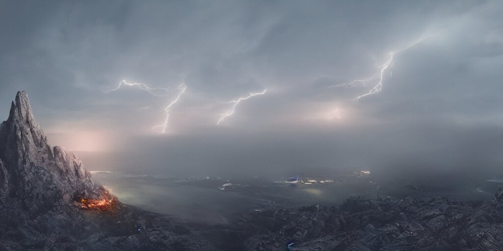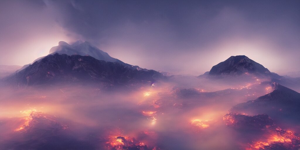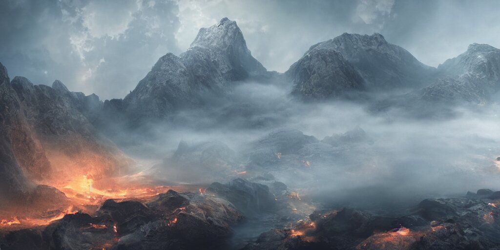 Mount olympus, fog, amazing lightning art, fog, octane render, ray tracing, realistic fire sharp focus, long shot, 8 k resolution, cinematic