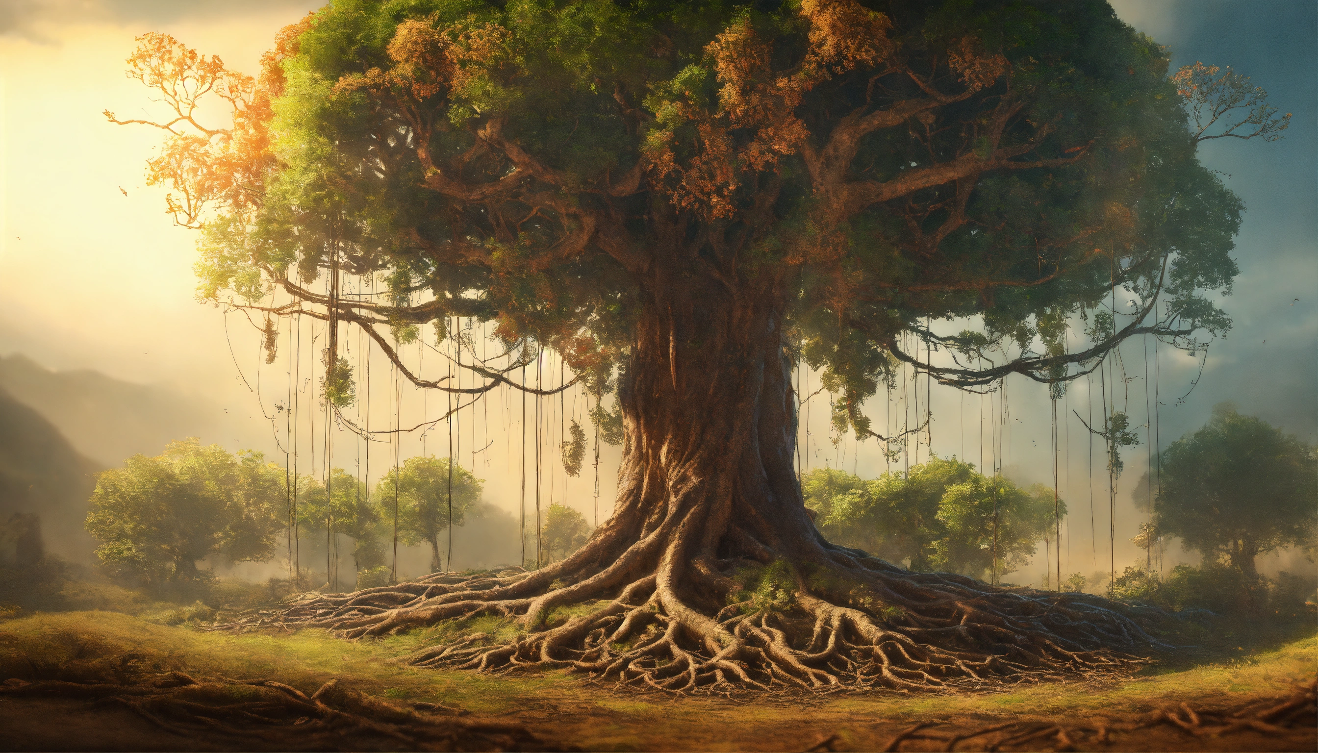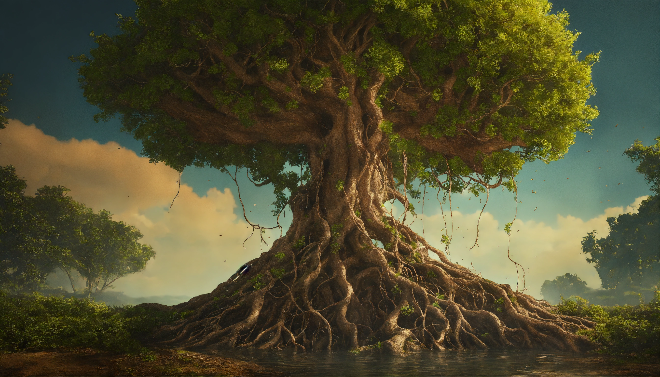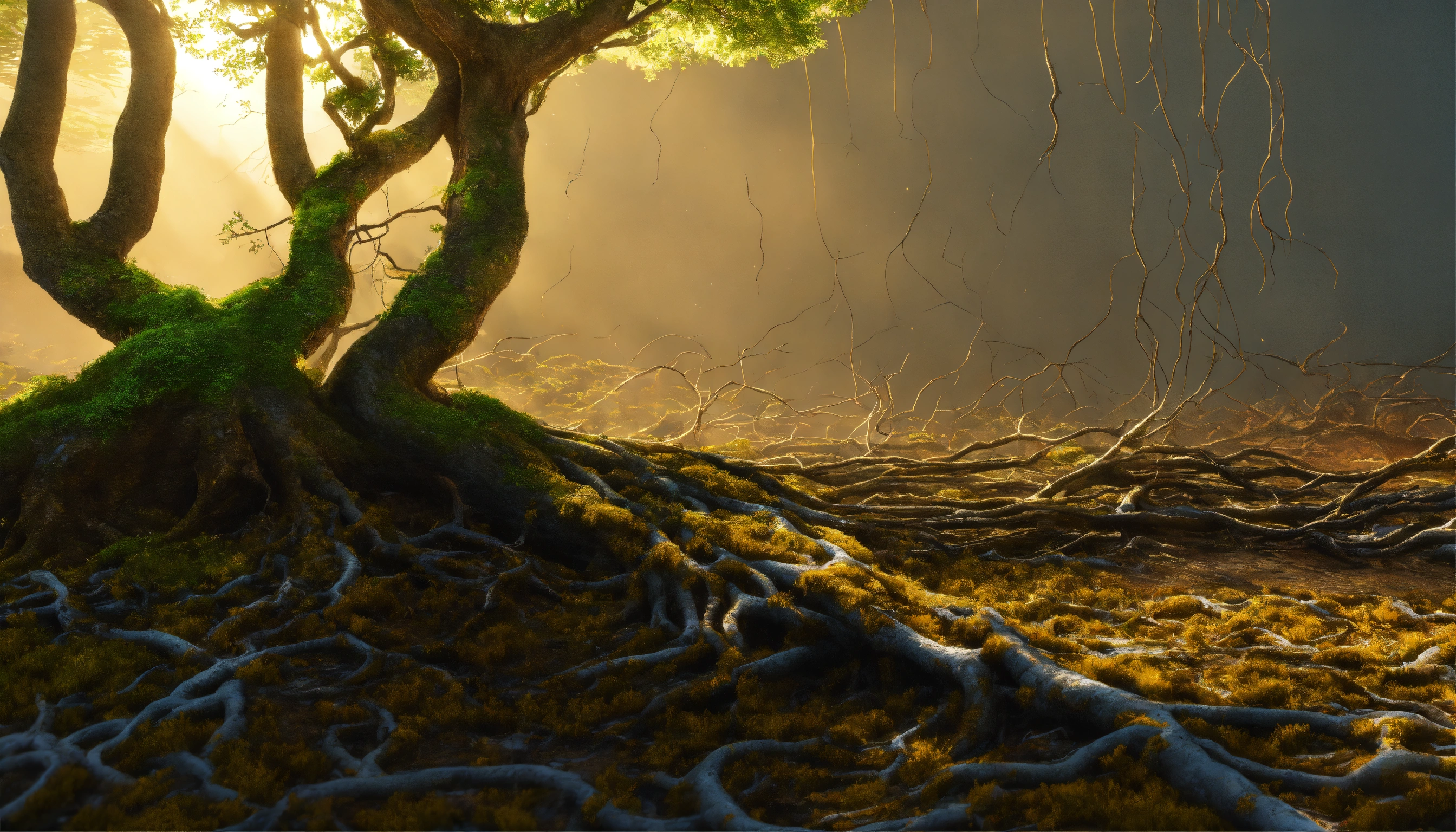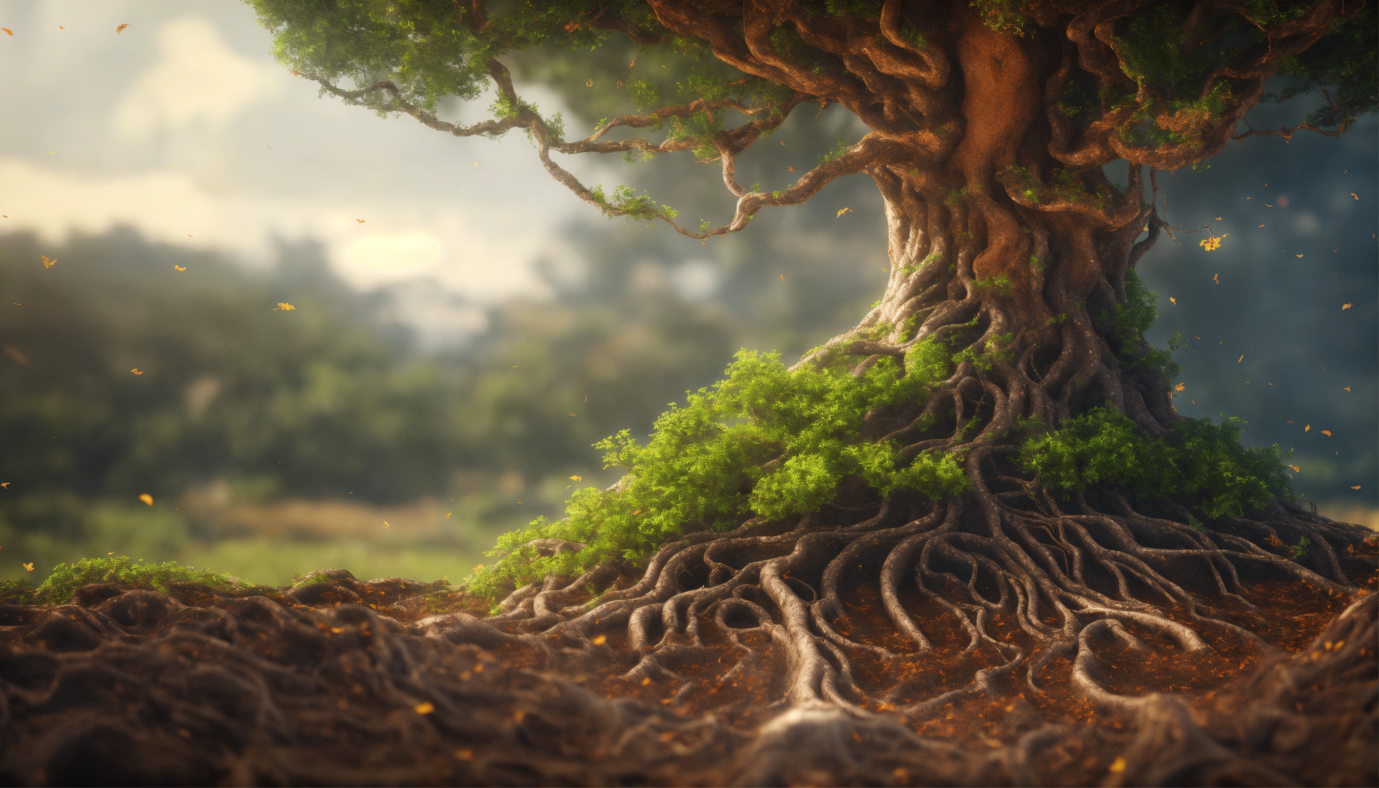tree roots growing in air. in the style of soft render ai art