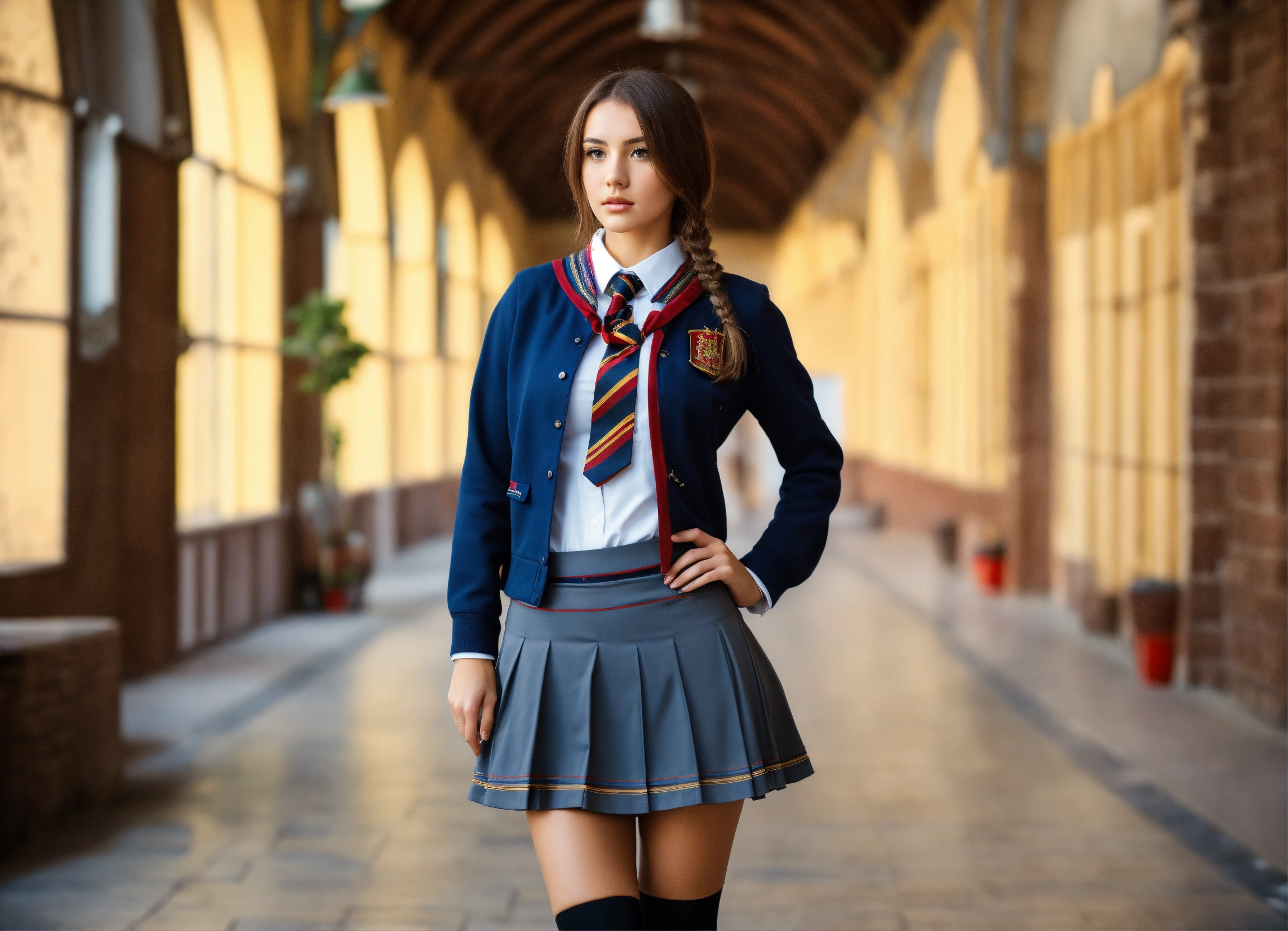 Hot adult woman, spanish girl, spain, schoolgirls in uniform, private school uniform, jacket, tight shirt, skirt, tights, feminine, school scenes, aura of beauty, relaxation, released tie, wide bust, belarussian girl, in belarus, sharp focus, 8k high definition, clothes too small and thin, undersized shirt and prominent body, shot on medium format filmschool], cinematic, 8k, masterpiece