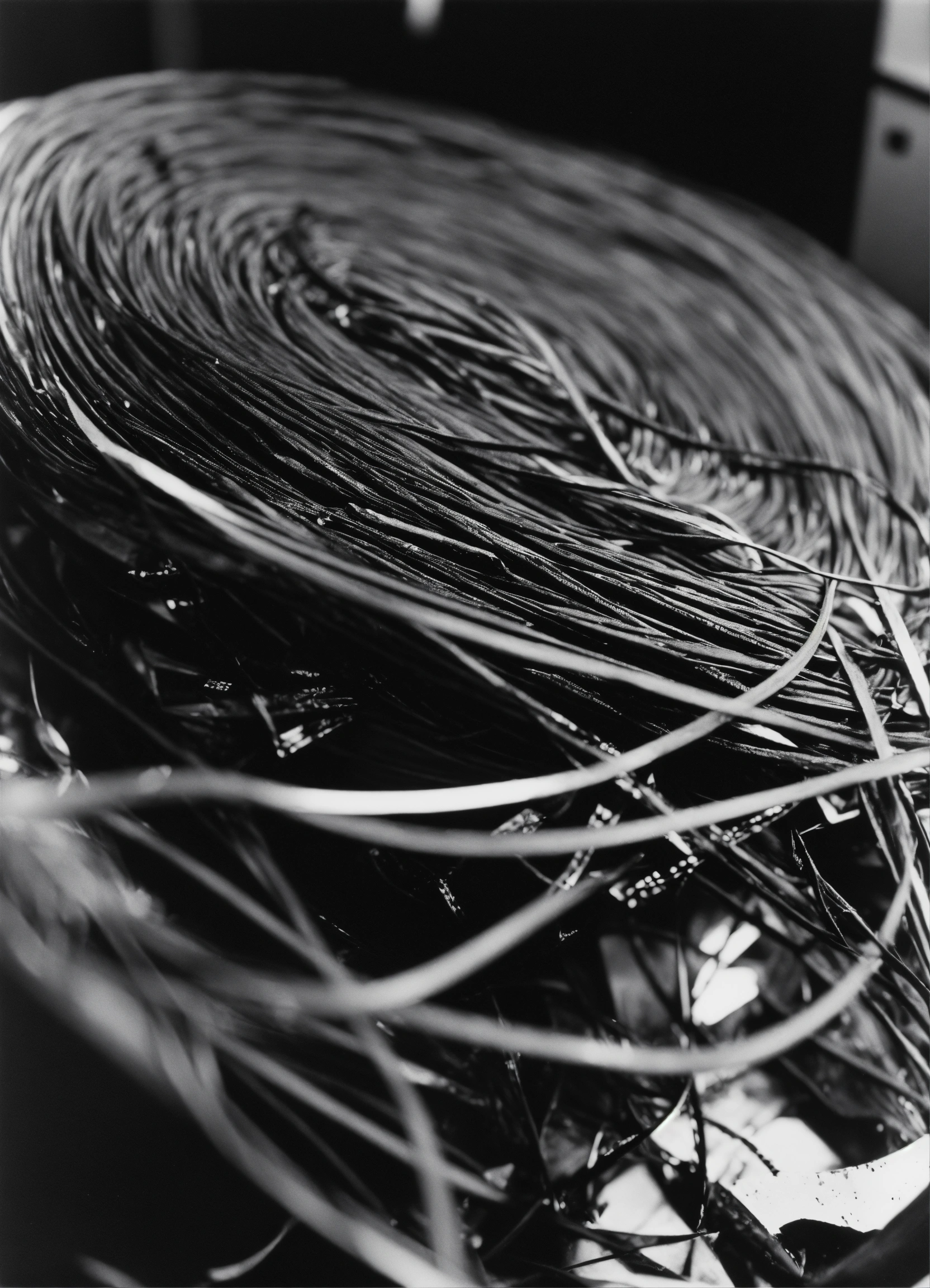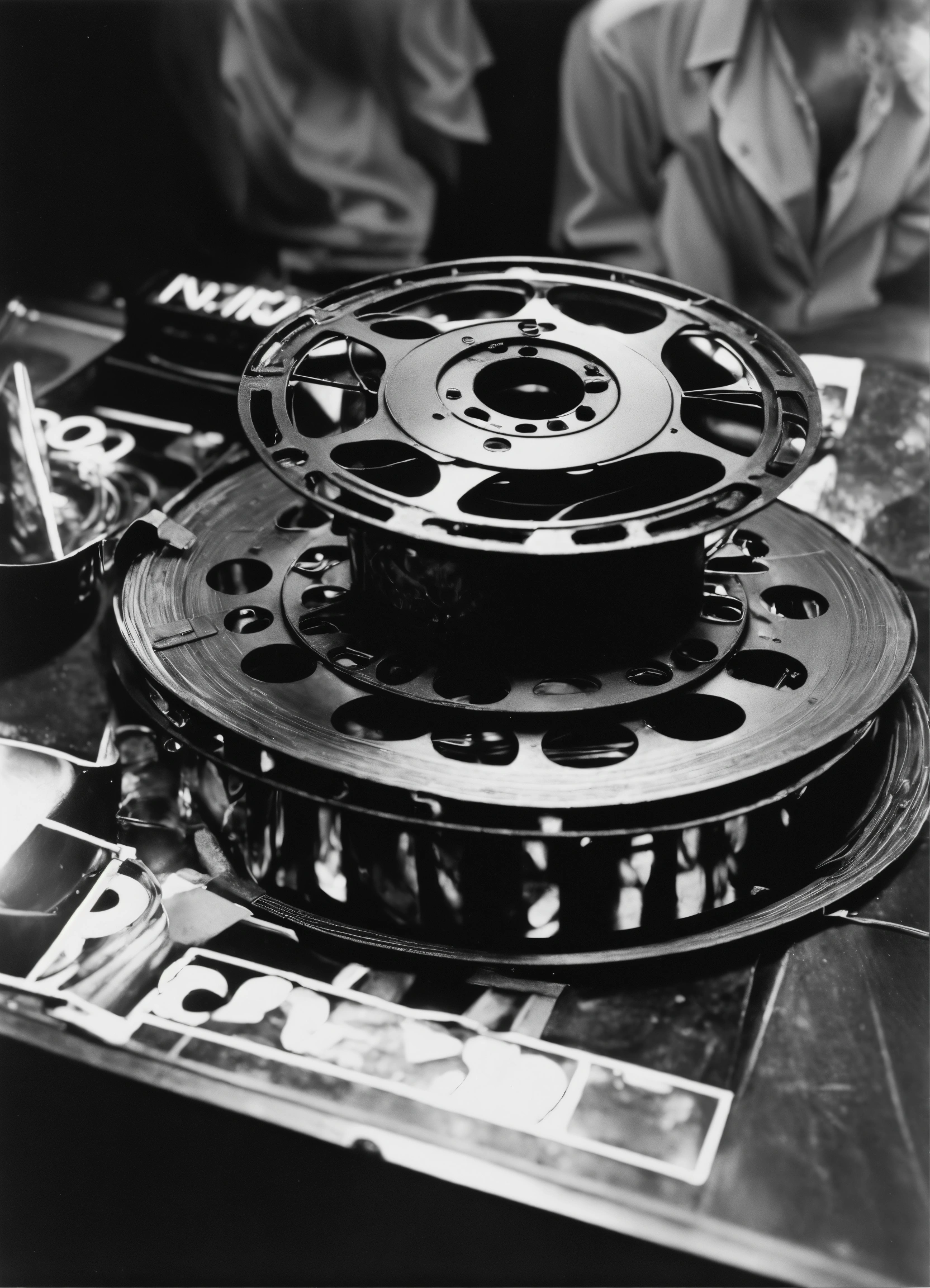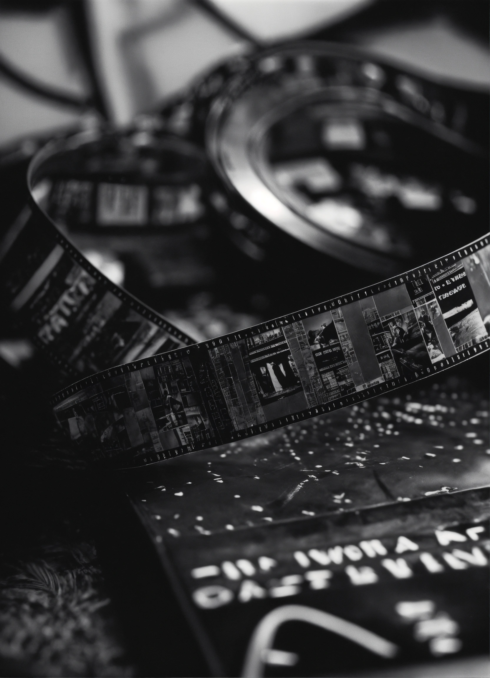 1990s black and white film photograph of unravelled movie film with a cinema theme