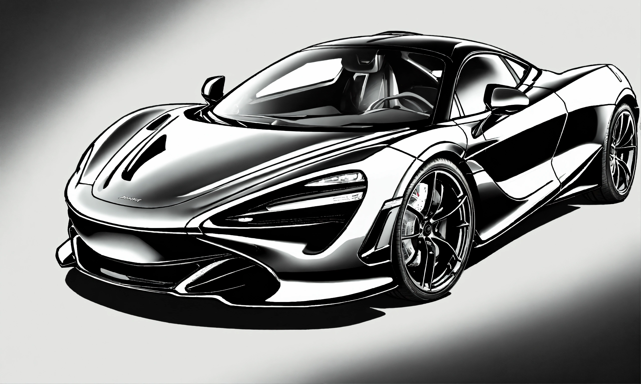 Made in black pencils on white background, a car sketch of mclaren 720s, made by designer gerald baes