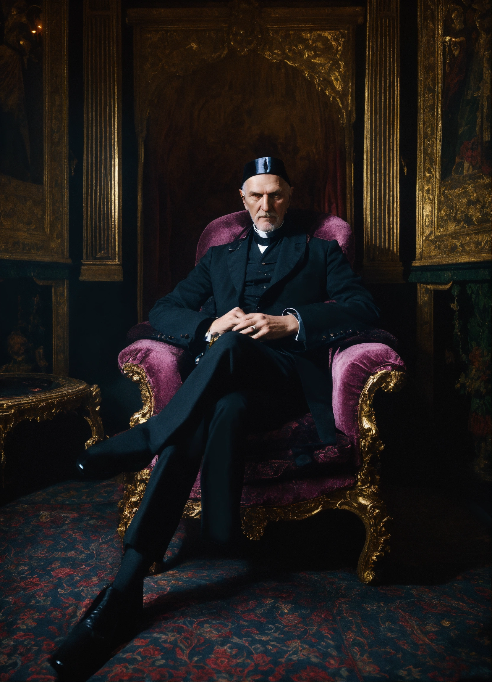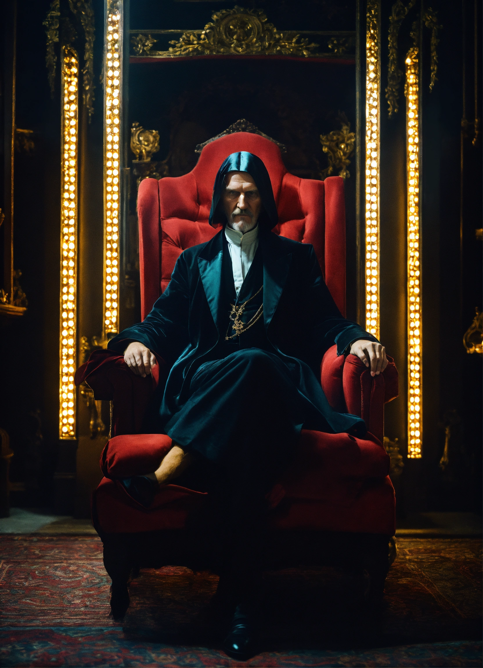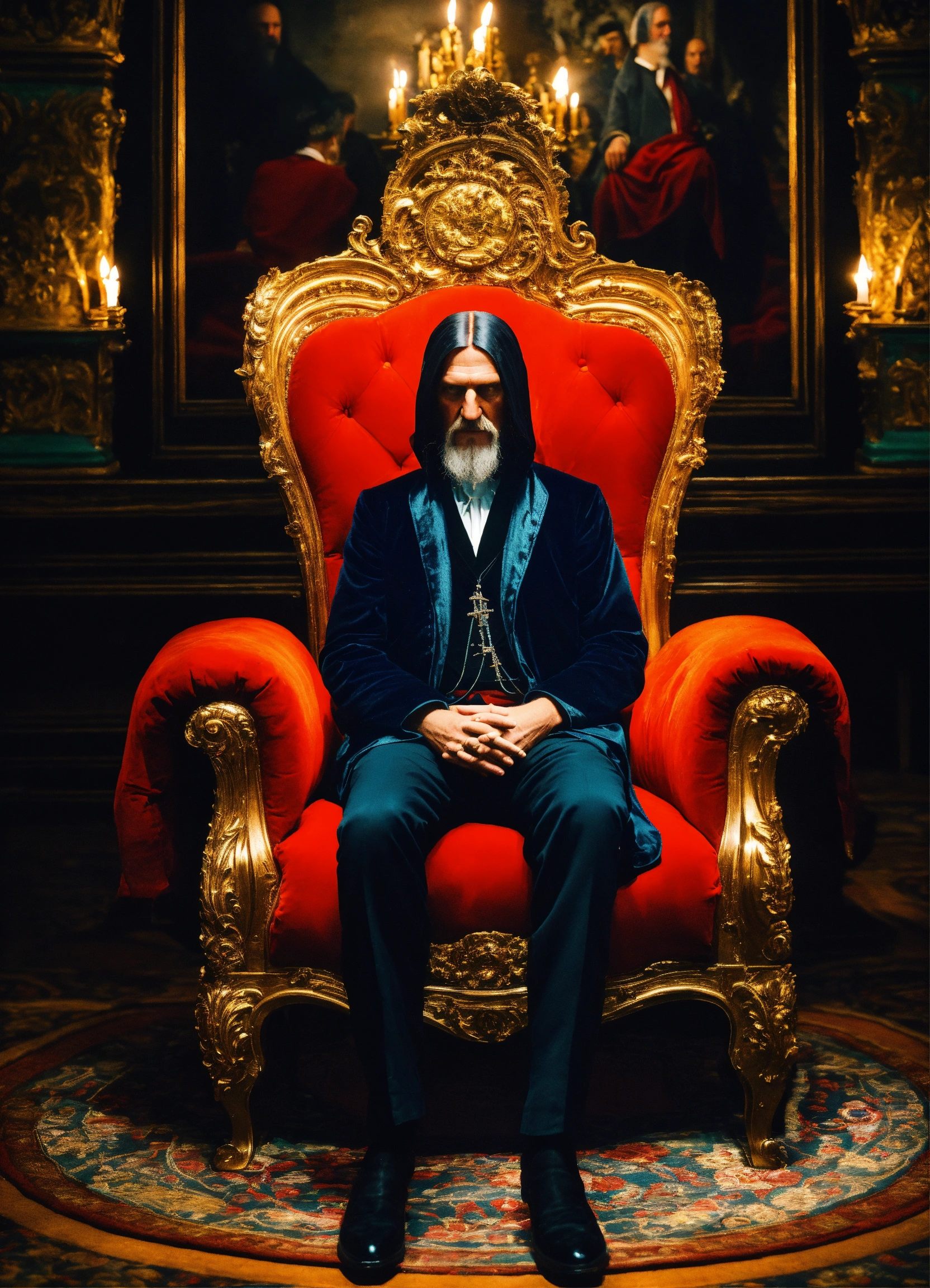Grigori raspoutine sat in a luxurious seat in the dark