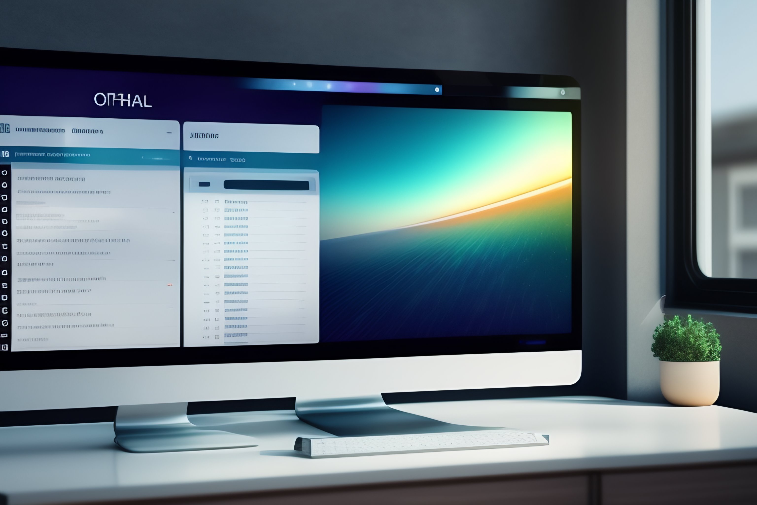 Modern computer screen, the screen should be transparent, office, the image of the screen should be transparent
