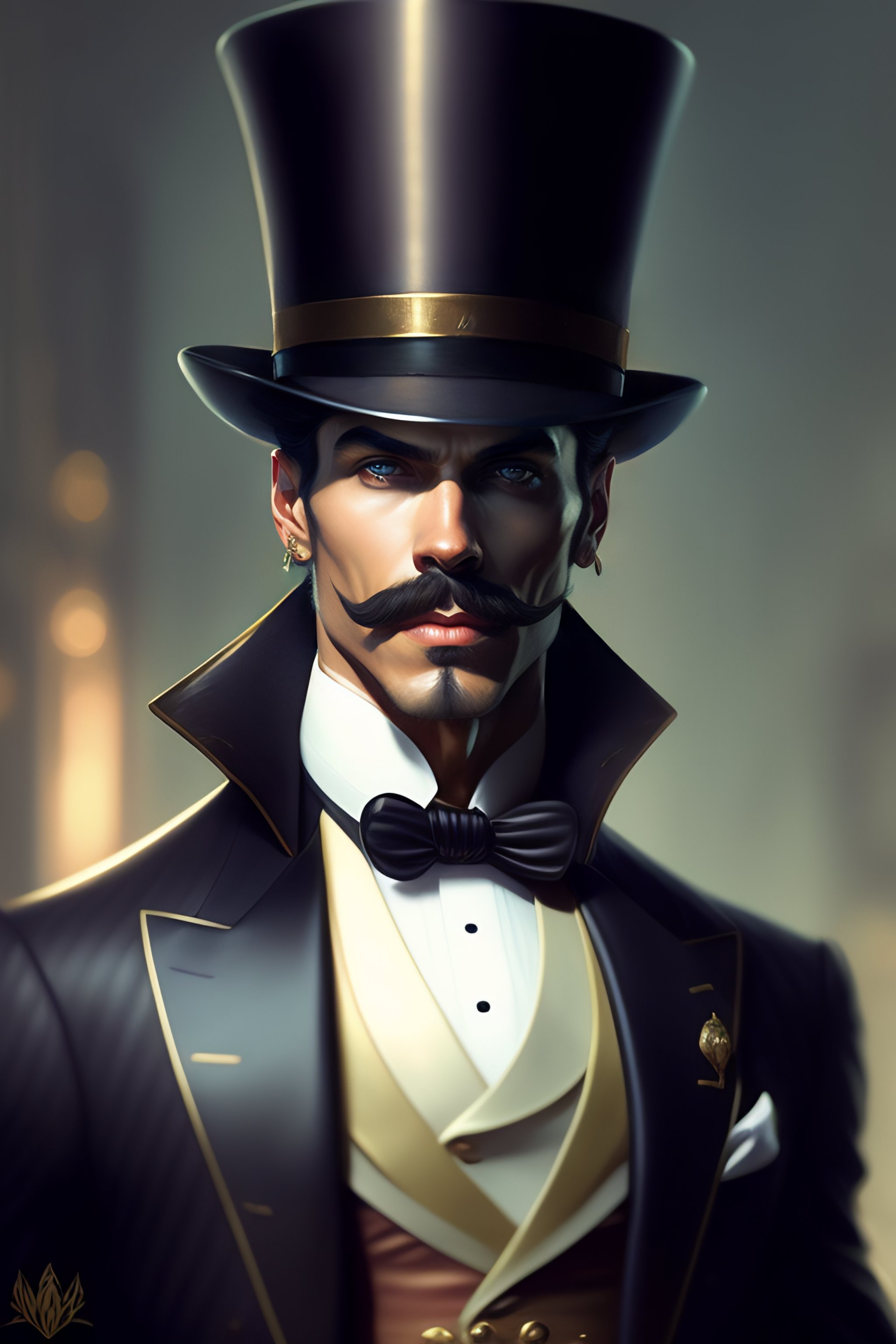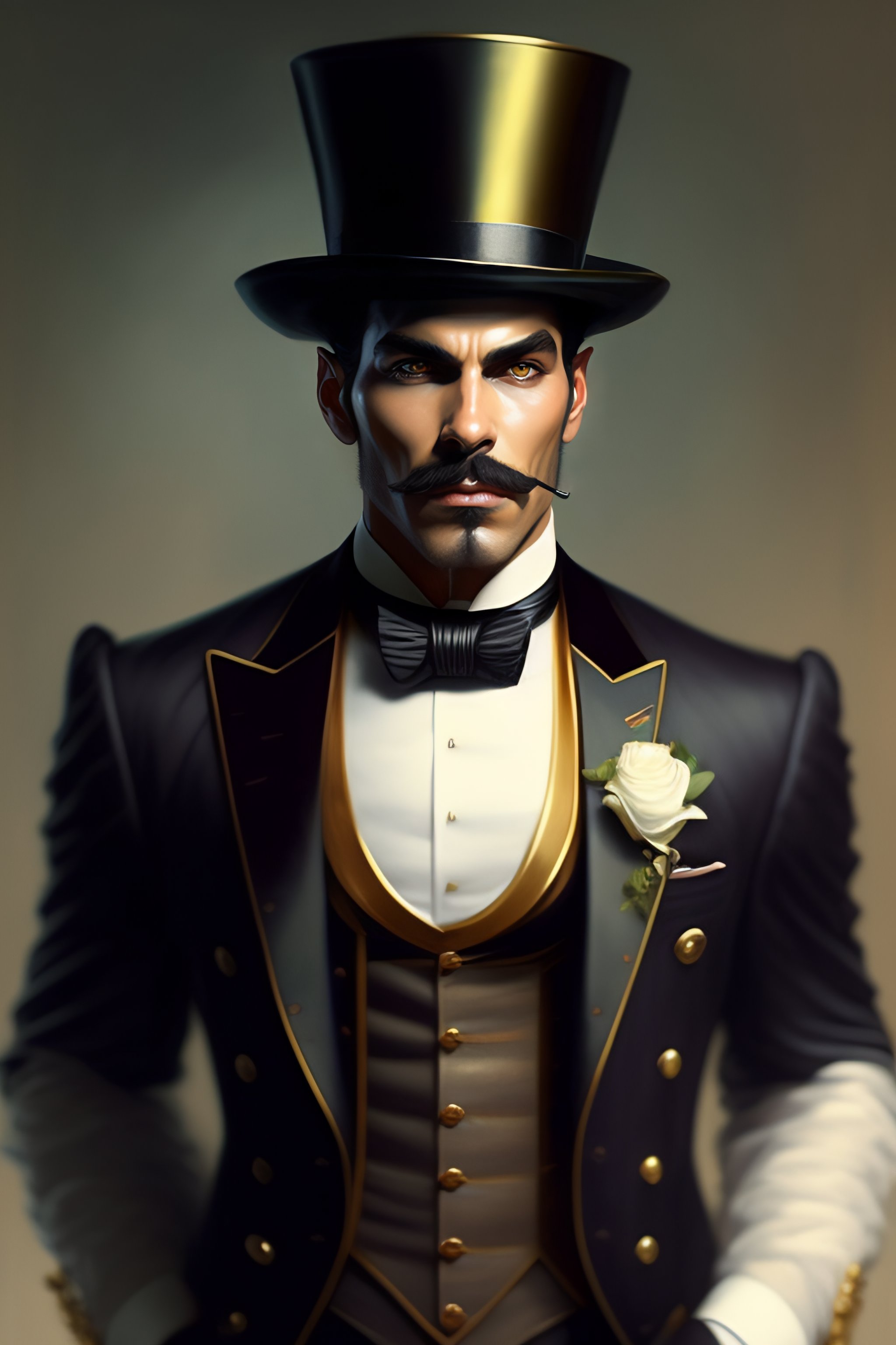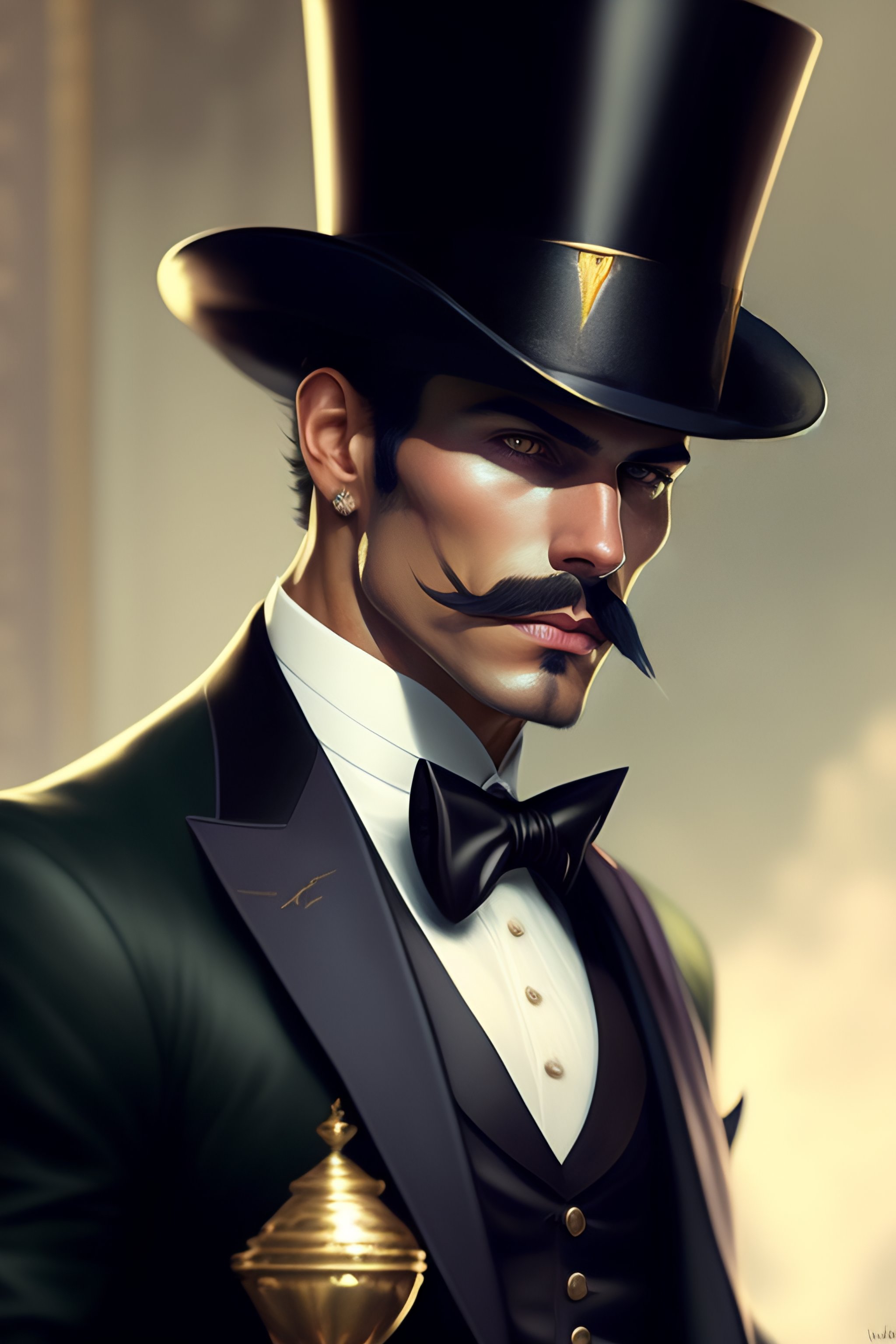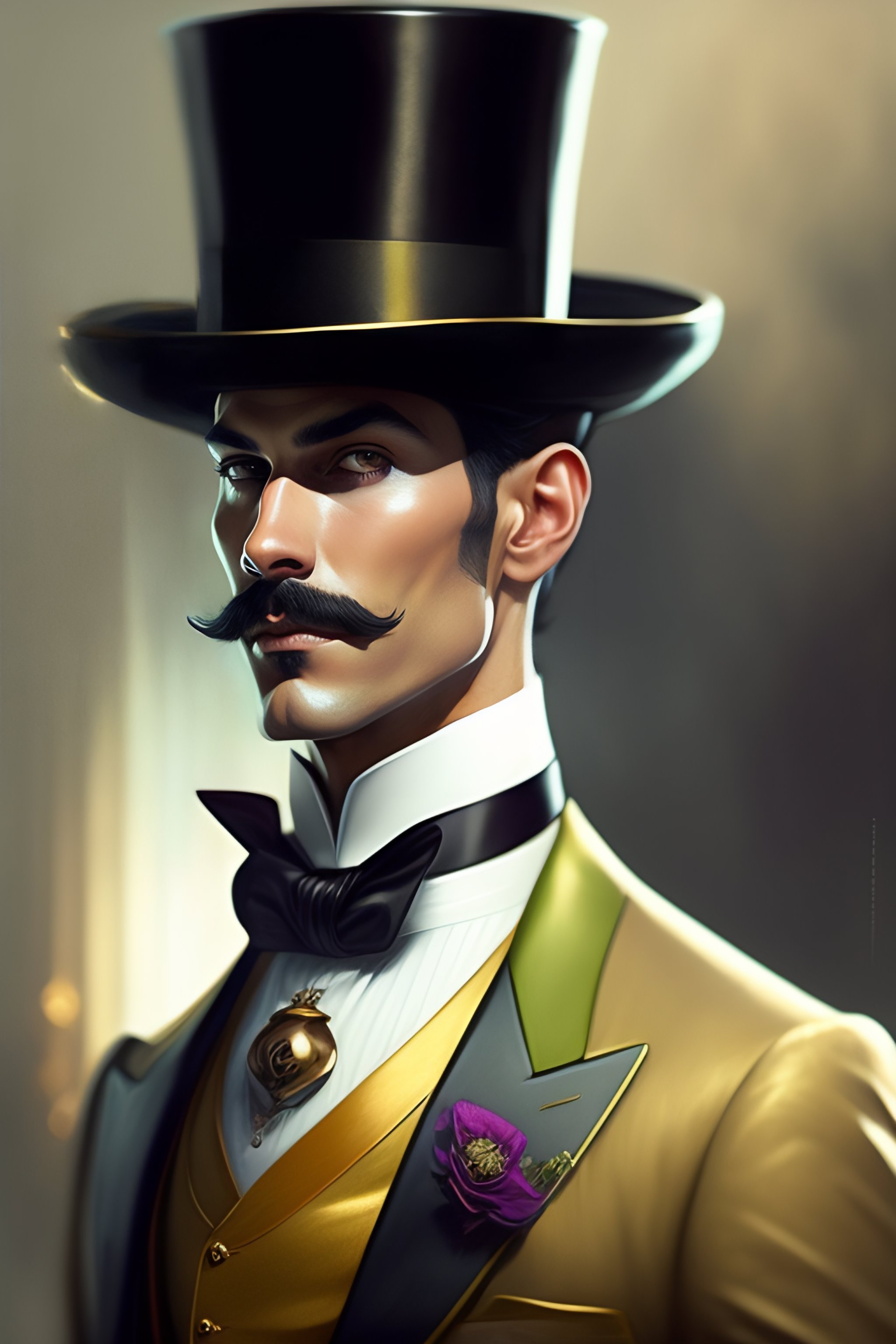Hyper realistic dapper fancy luigi wearing a top hat, smirking deviously, painted by greg rutkowski, wlop, artgerm, jojo's bizarre adventure, dishonored 2
