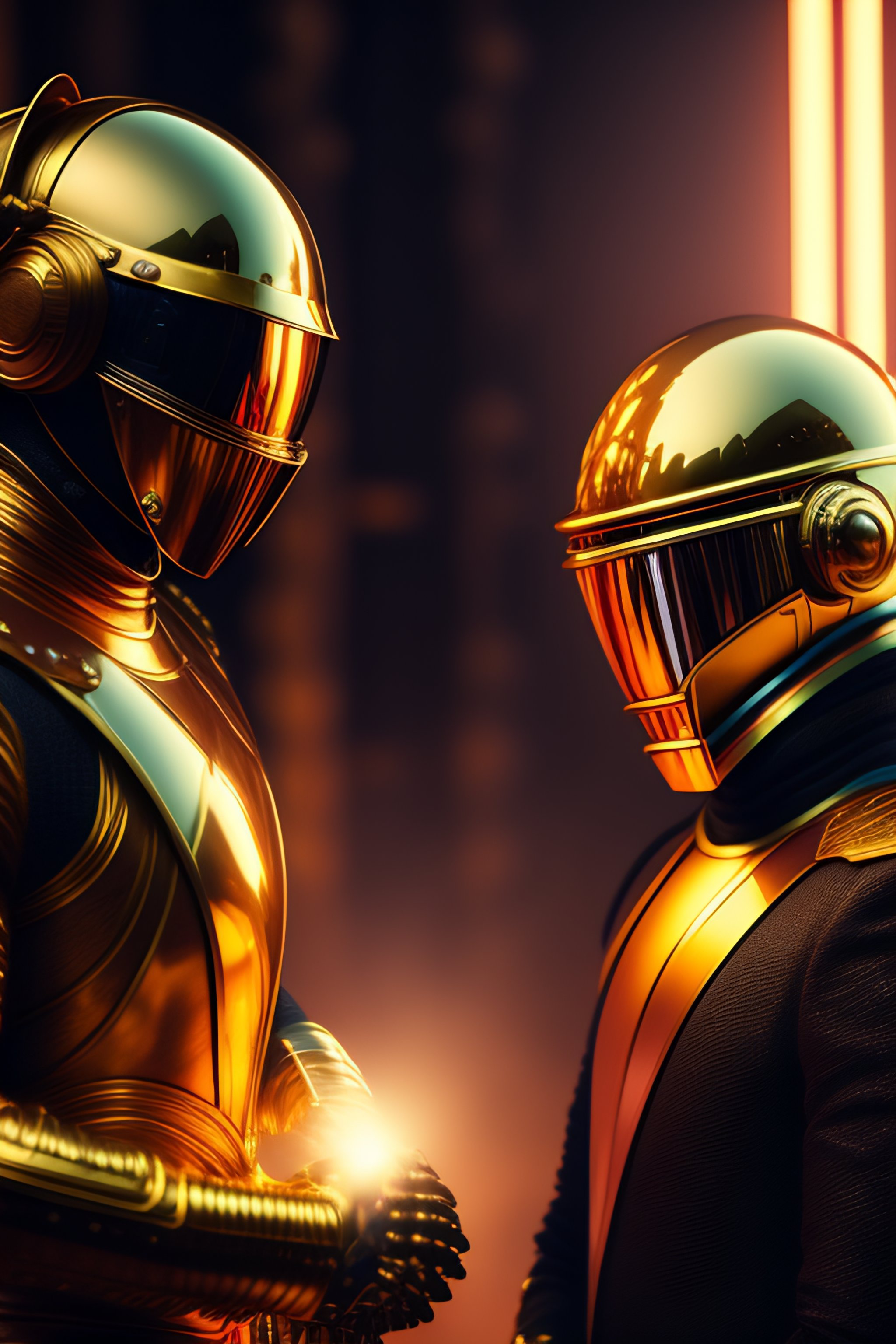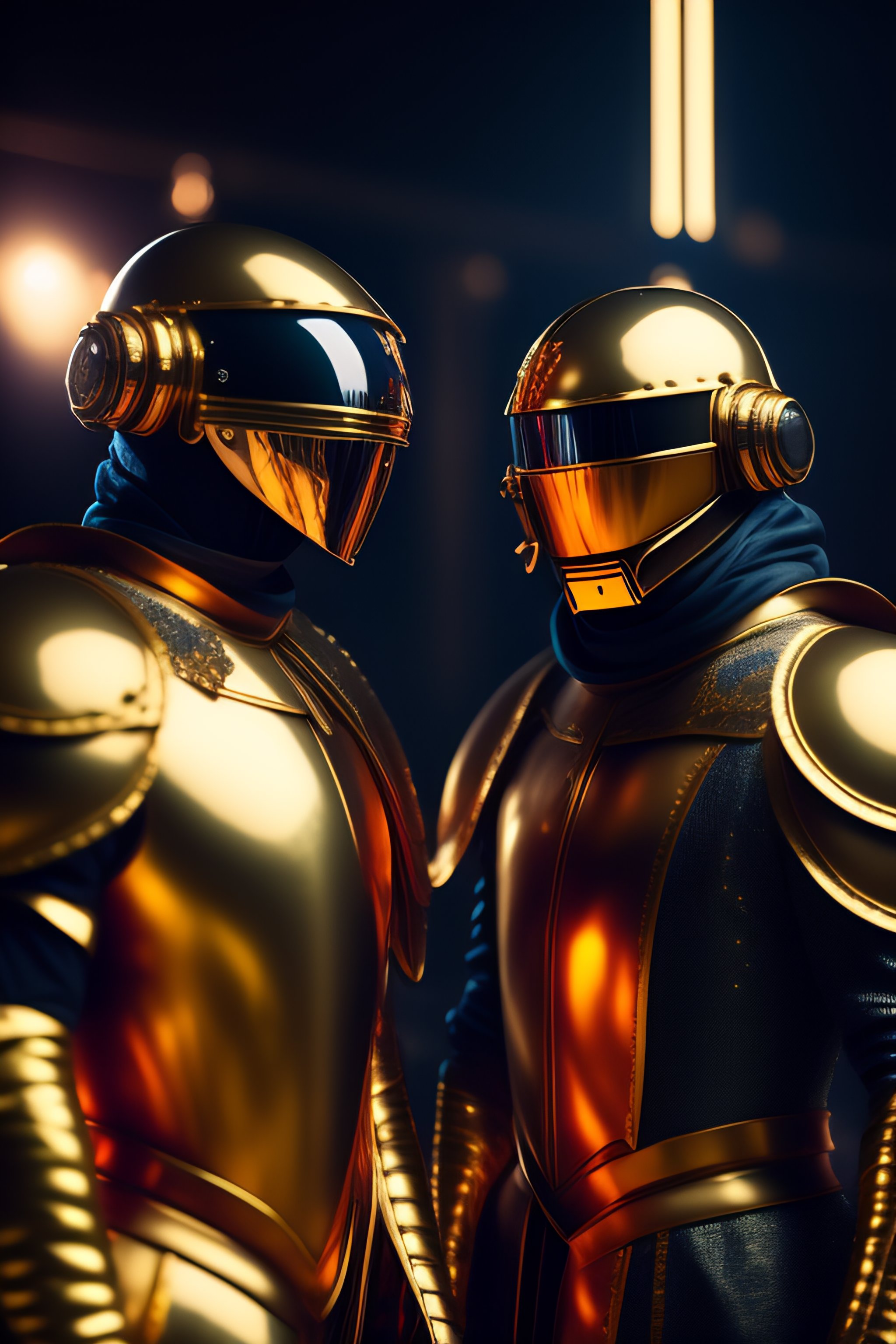 A renaissance painting of daft punk in the 15th century, epic, exciting, wow, cinematic, moody, hdri, lens flare, exciting, stop motion, highly detailed, octane render, soft lighting, celestial, professional, 35mm, zeiss, hasselblad, fujifilm, arriflex, imax, trending on artstation, artstationhd, artstationhq, 4k, 8k