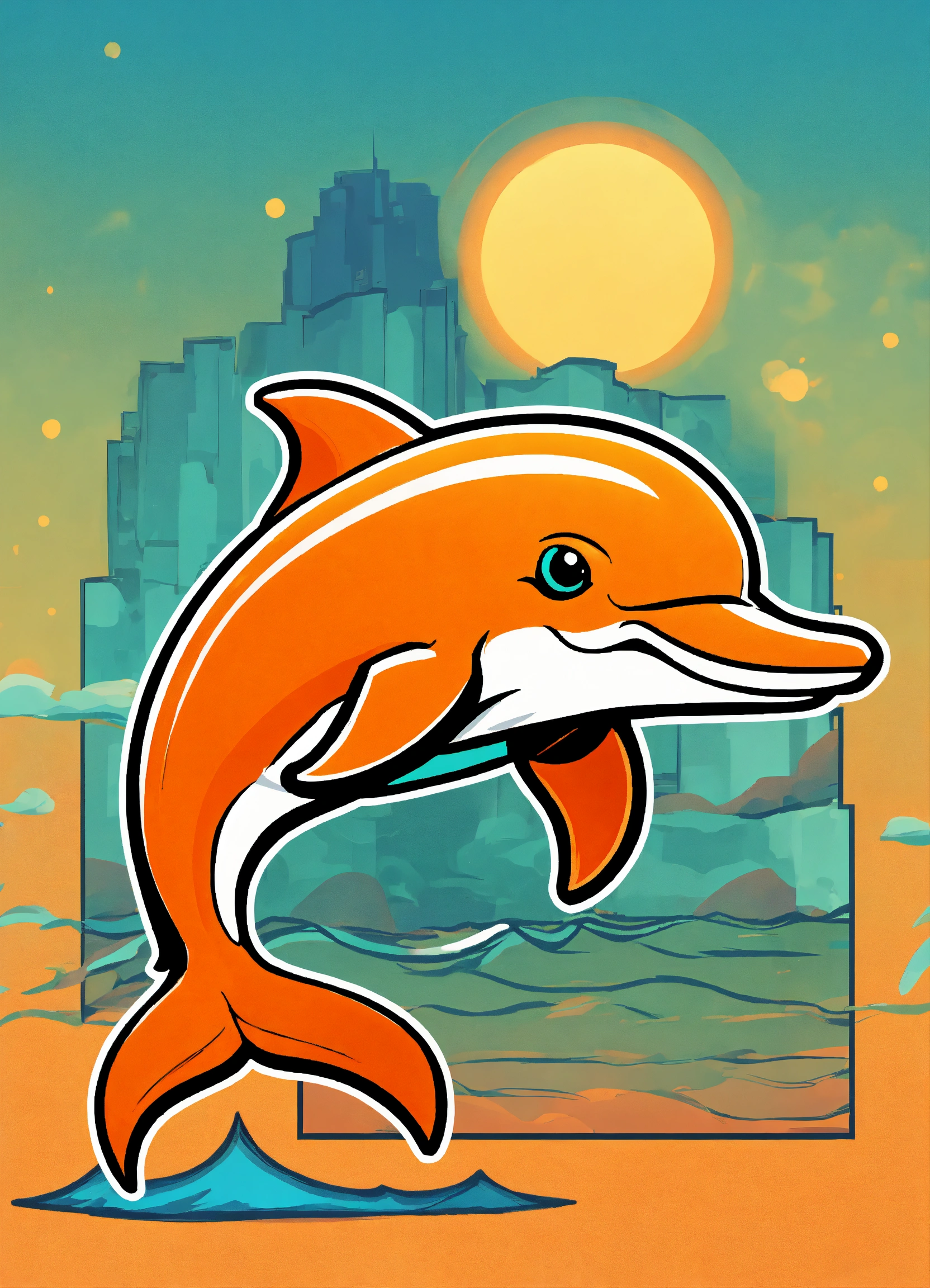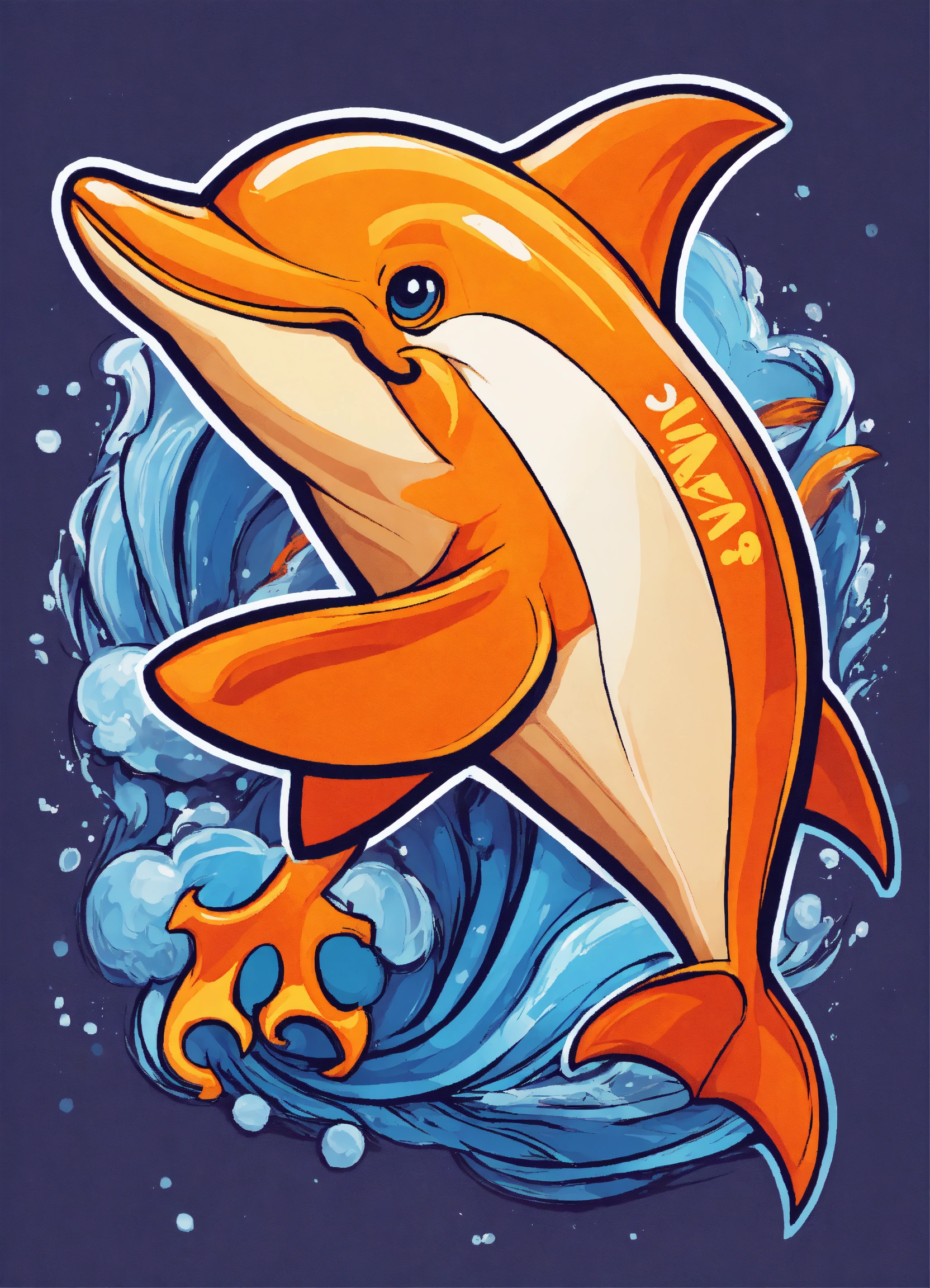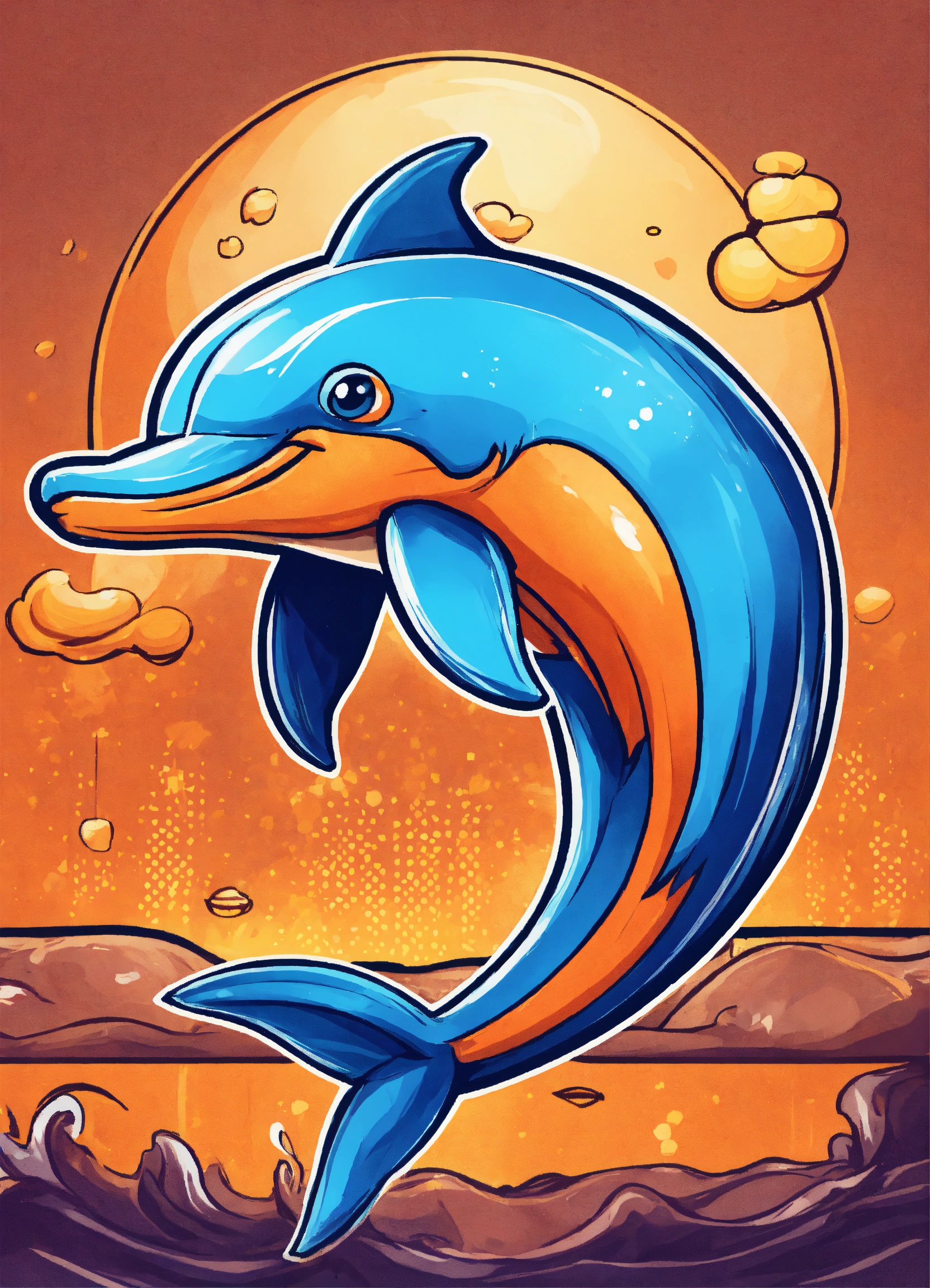 A cute orange dolphin mascot logo in comic style