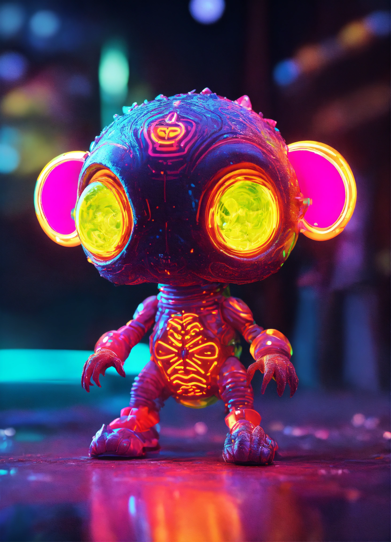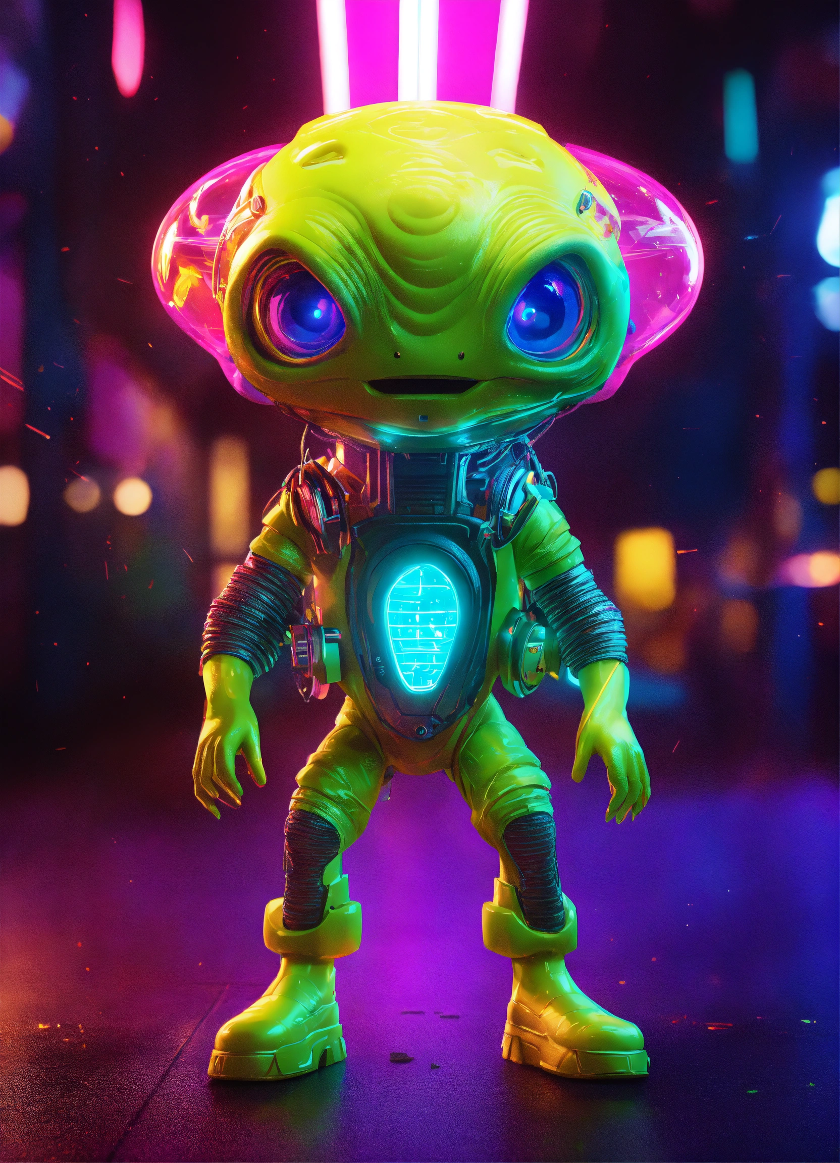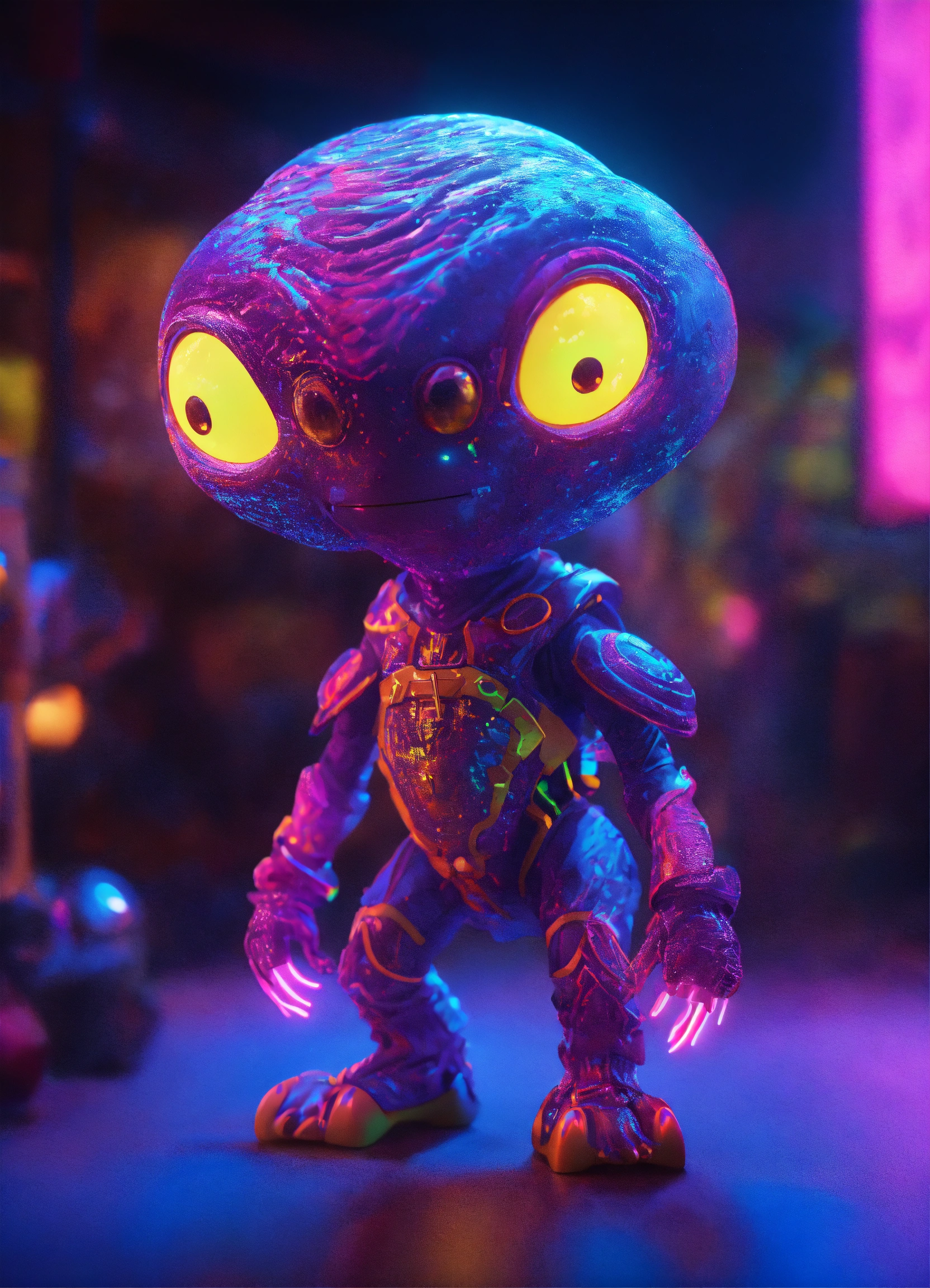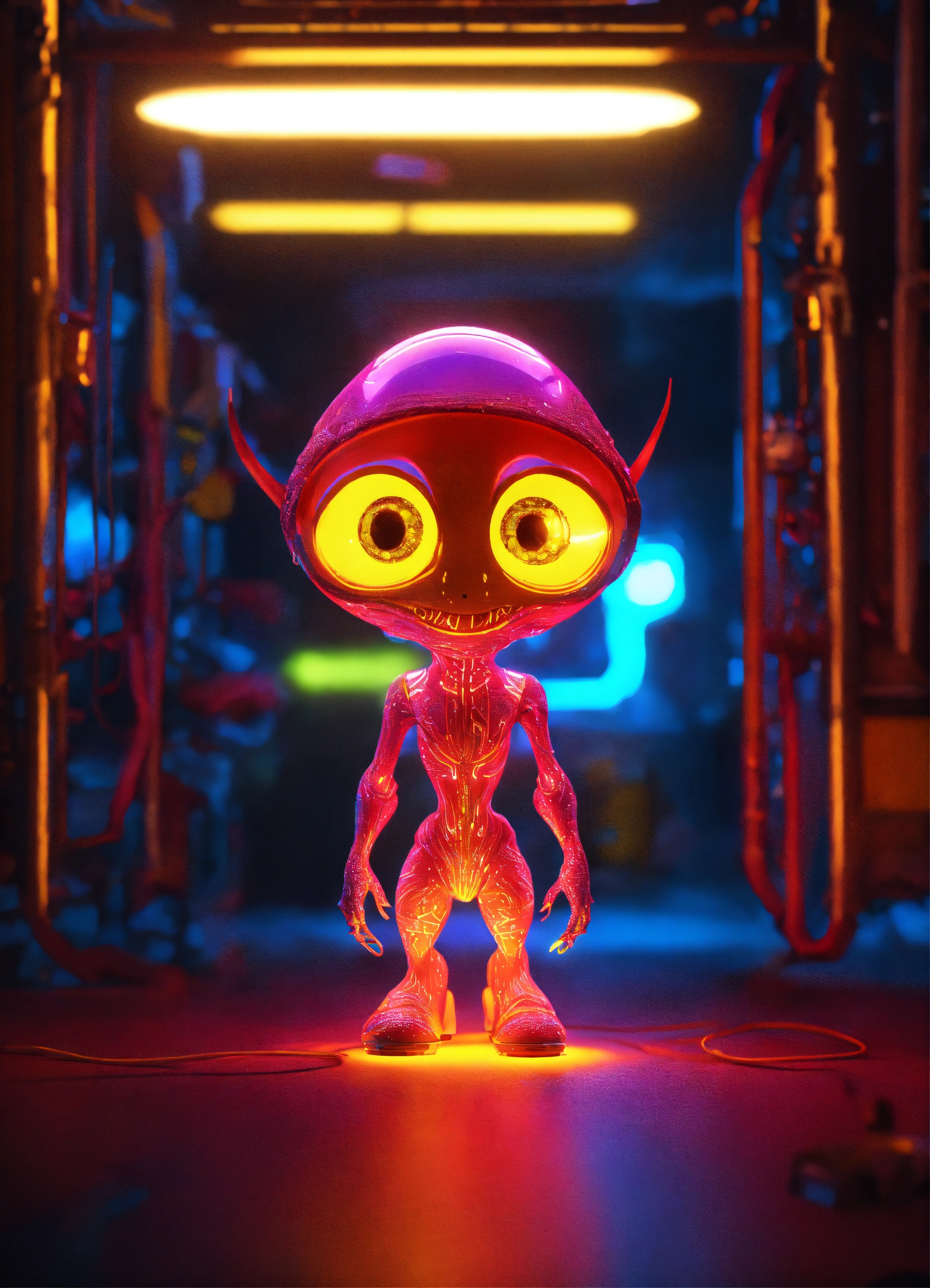 Gelly cute alien monster, full-body, neon glow colors, highly intricate details, 3d, cgi, realistic light, trending on cgsociety, glowing eyes, facing camera, neon details, ultra realistic details, portrait, sci fi atmosphere, global illumination, shadows, octane render, 8 k, ultra sharp