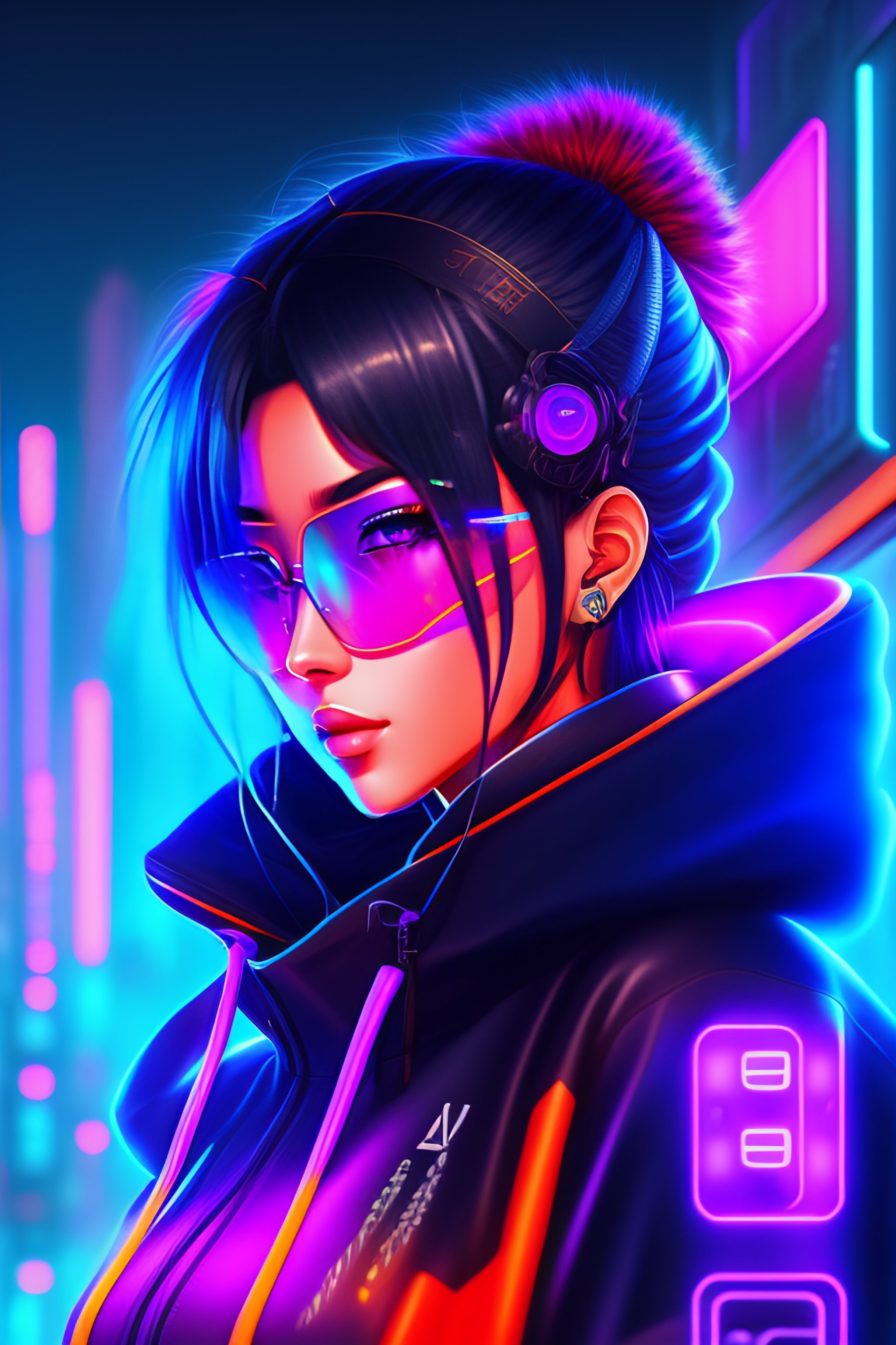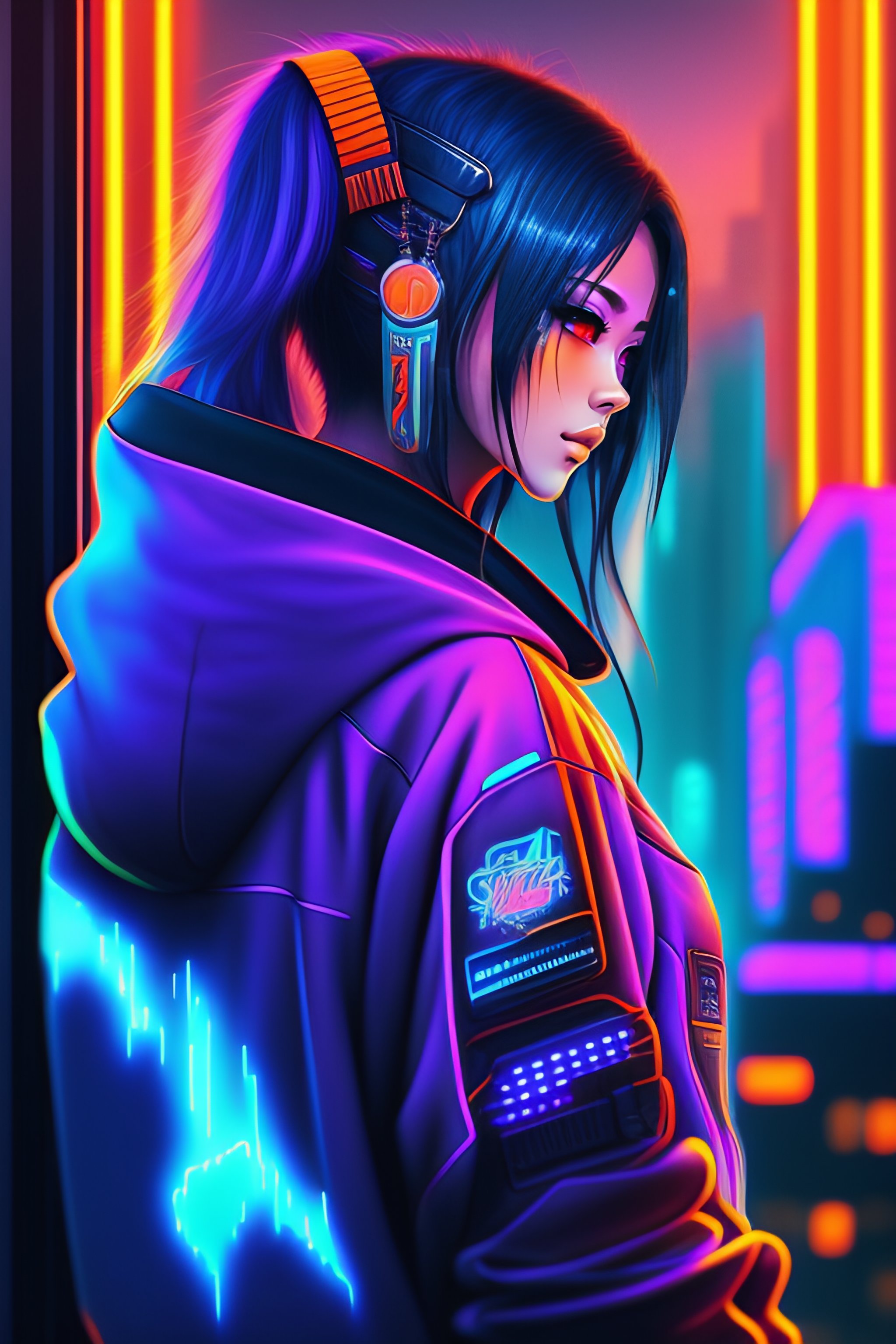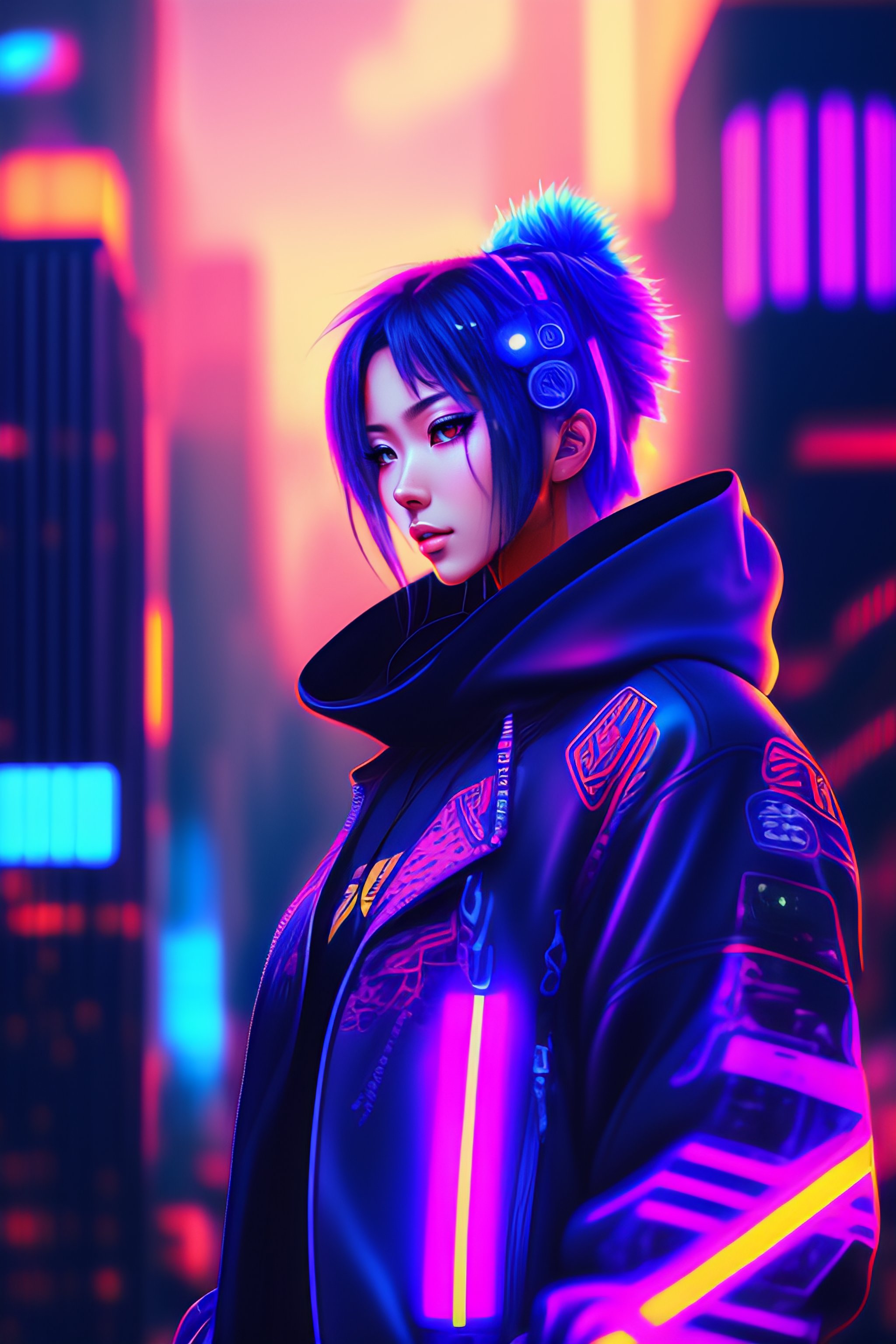 Detailed cyberpunk anime streetwear skyline neon lights digital art