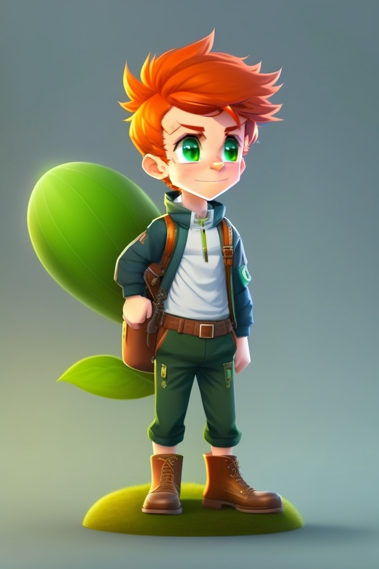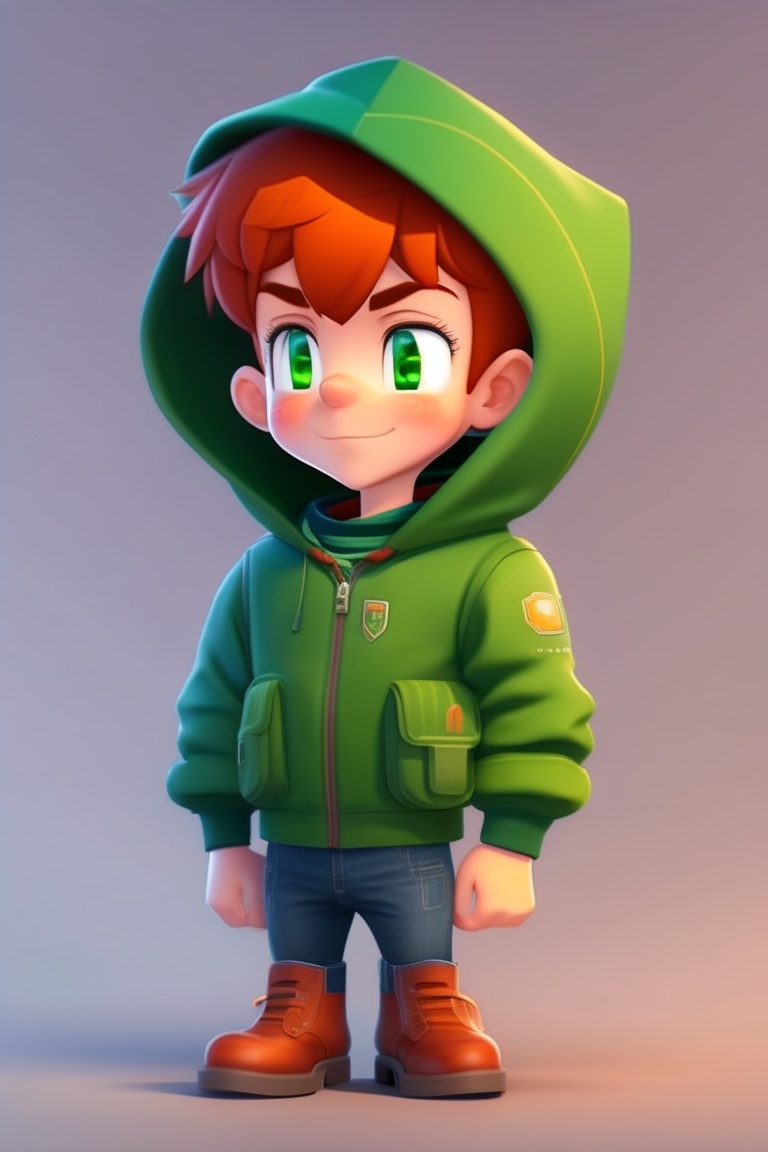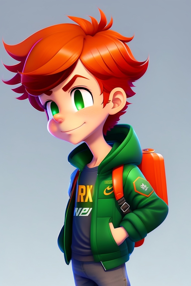 A cartoon red-haired boy like the character from the channel ''cartonizando'' looking forward full body, with green eyes, with open mouth, 2d