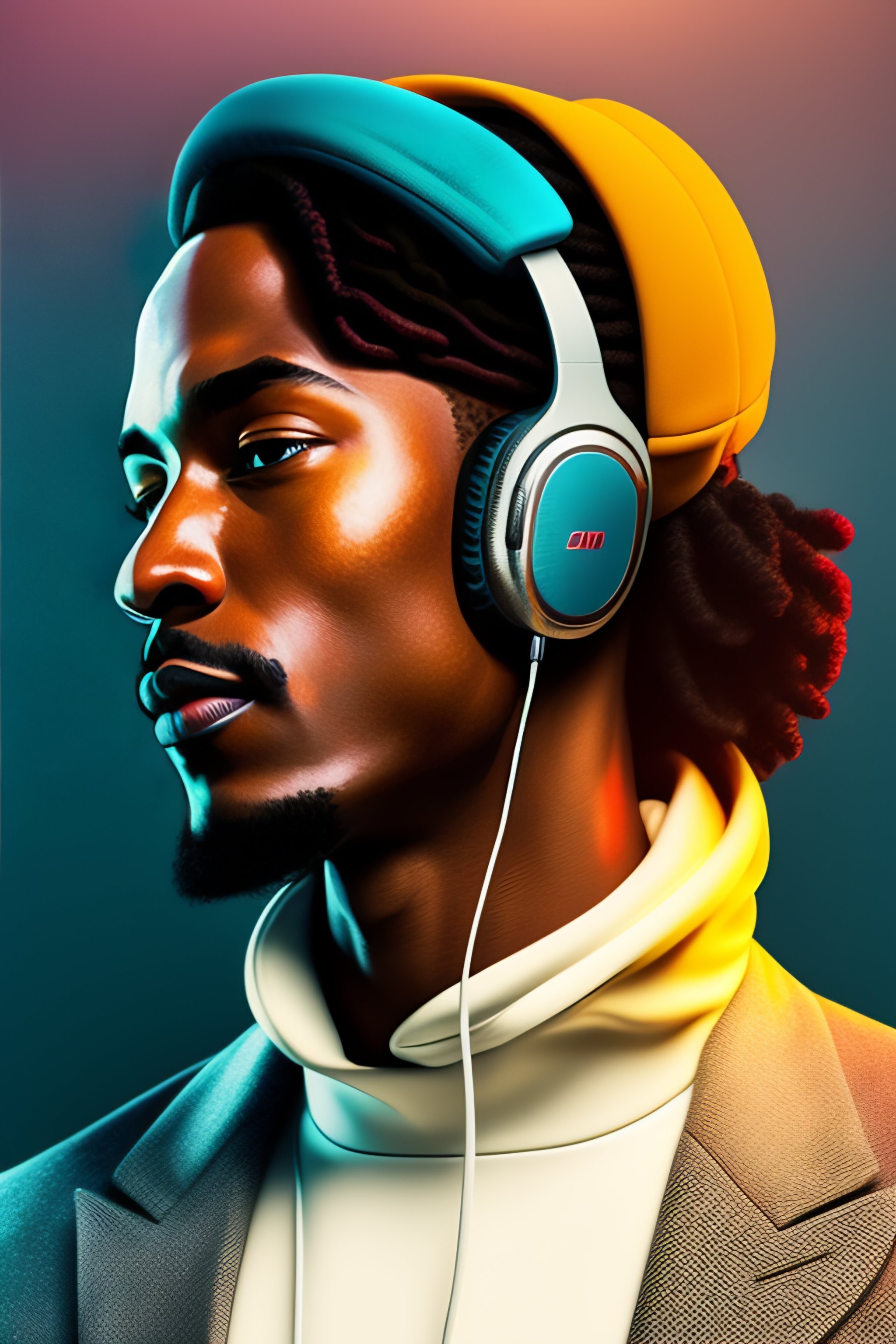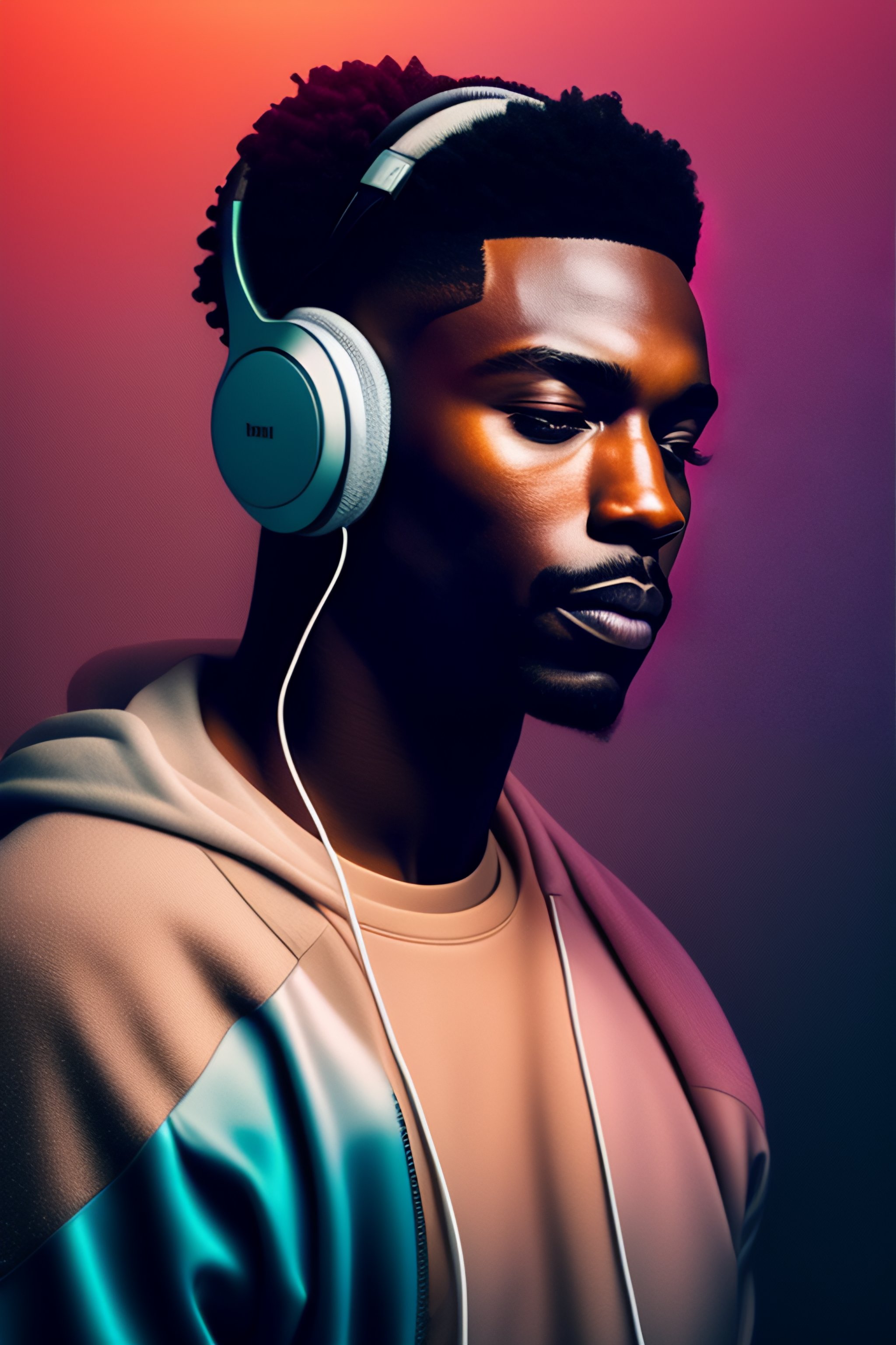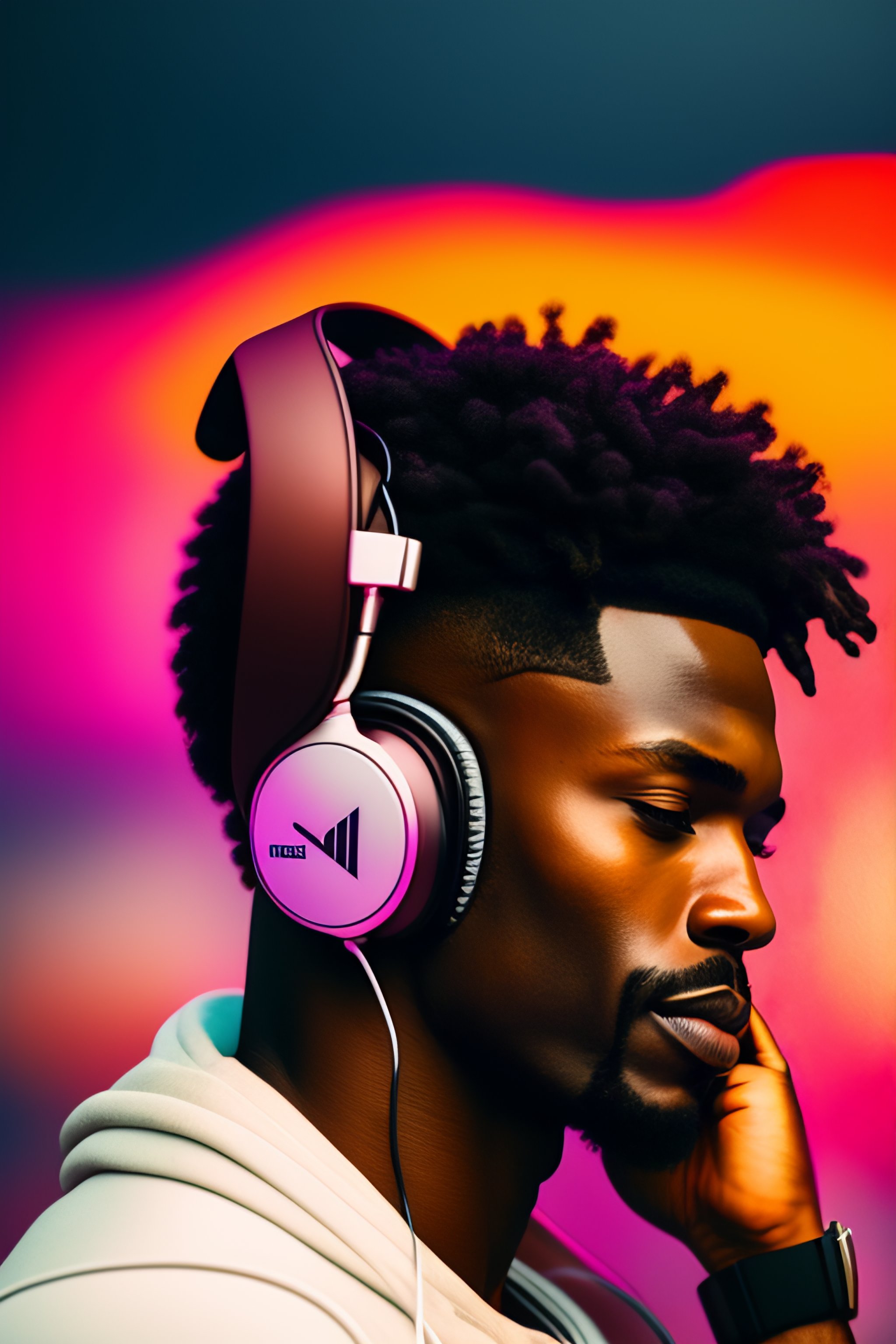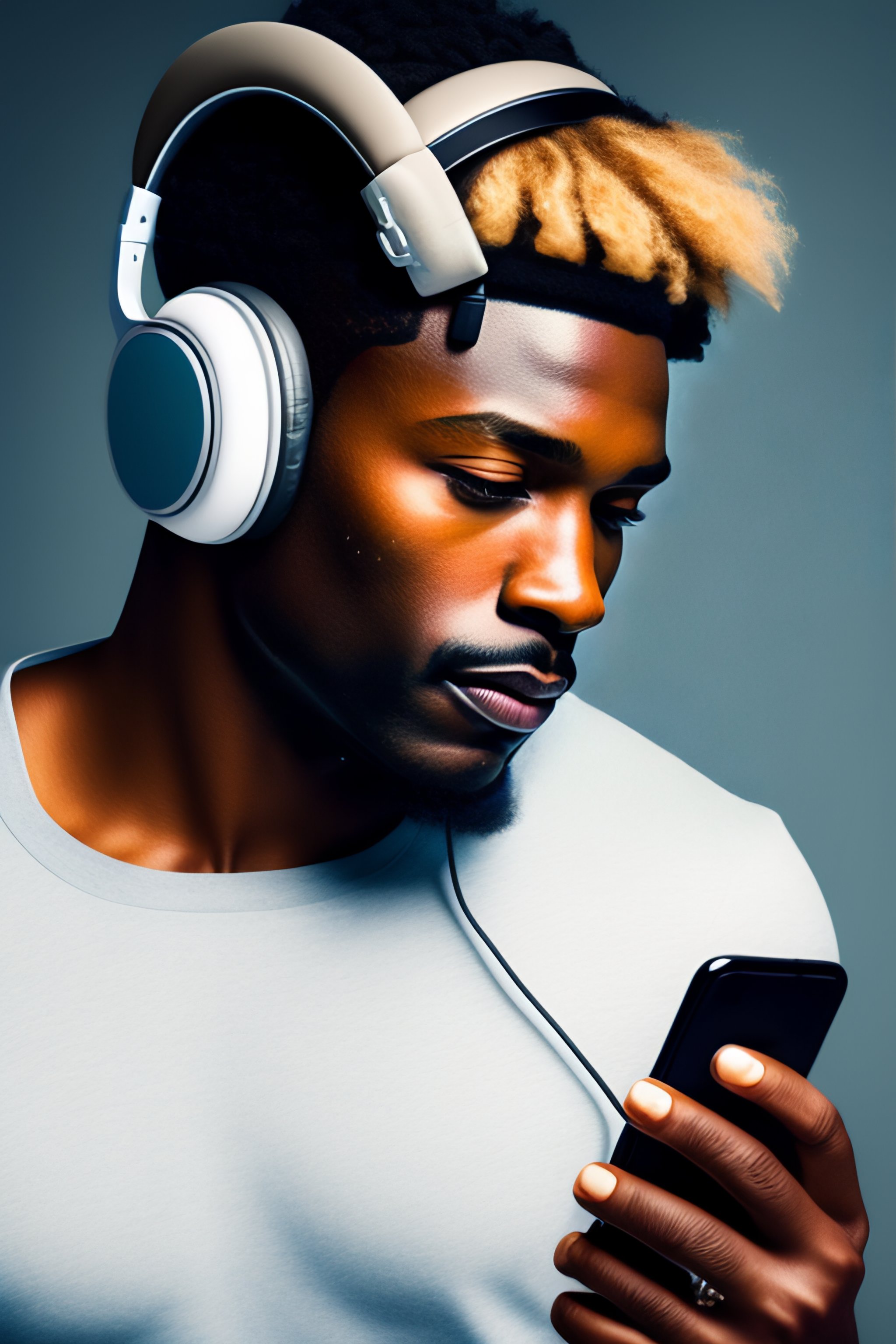 man holding phone with headphones on