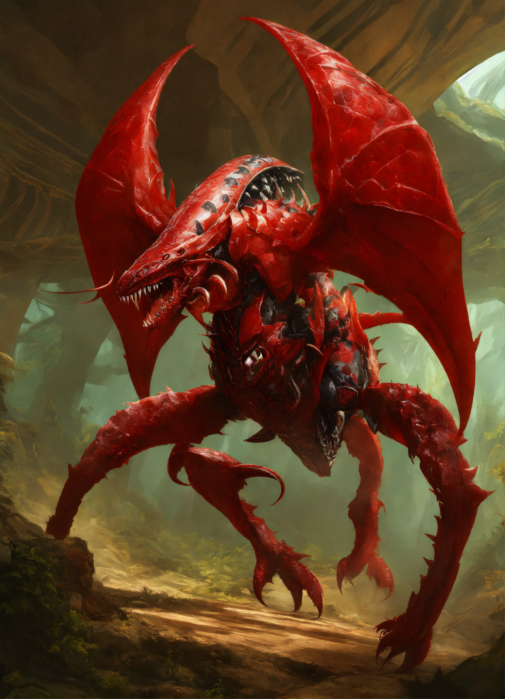A bright red patterned bioform of the multispecies tyranid race that was genetically designed by the hive mind for the transportation of other intelligent species settled worlds, it is a winged pod fractal of razor-sharp teeth