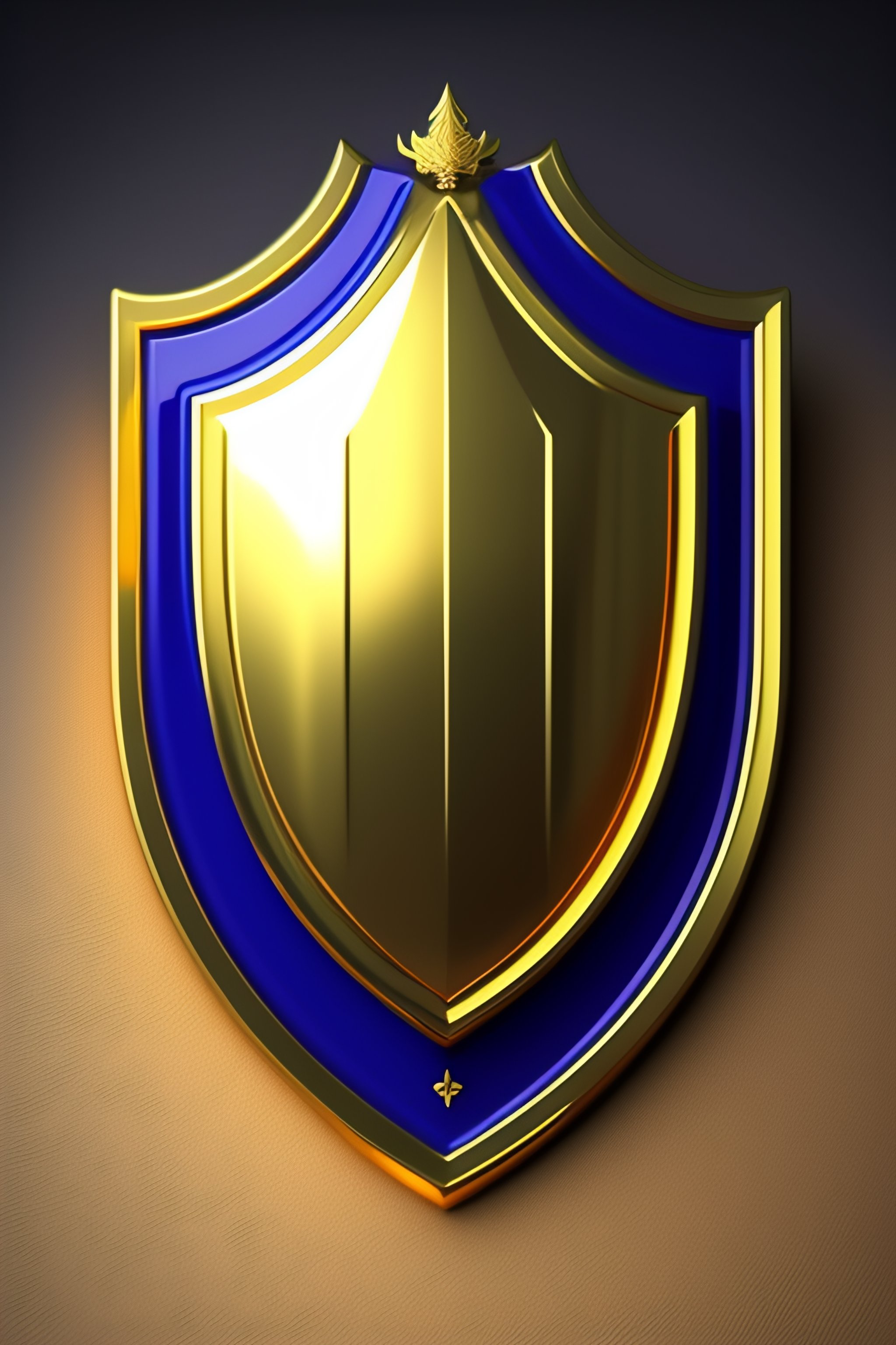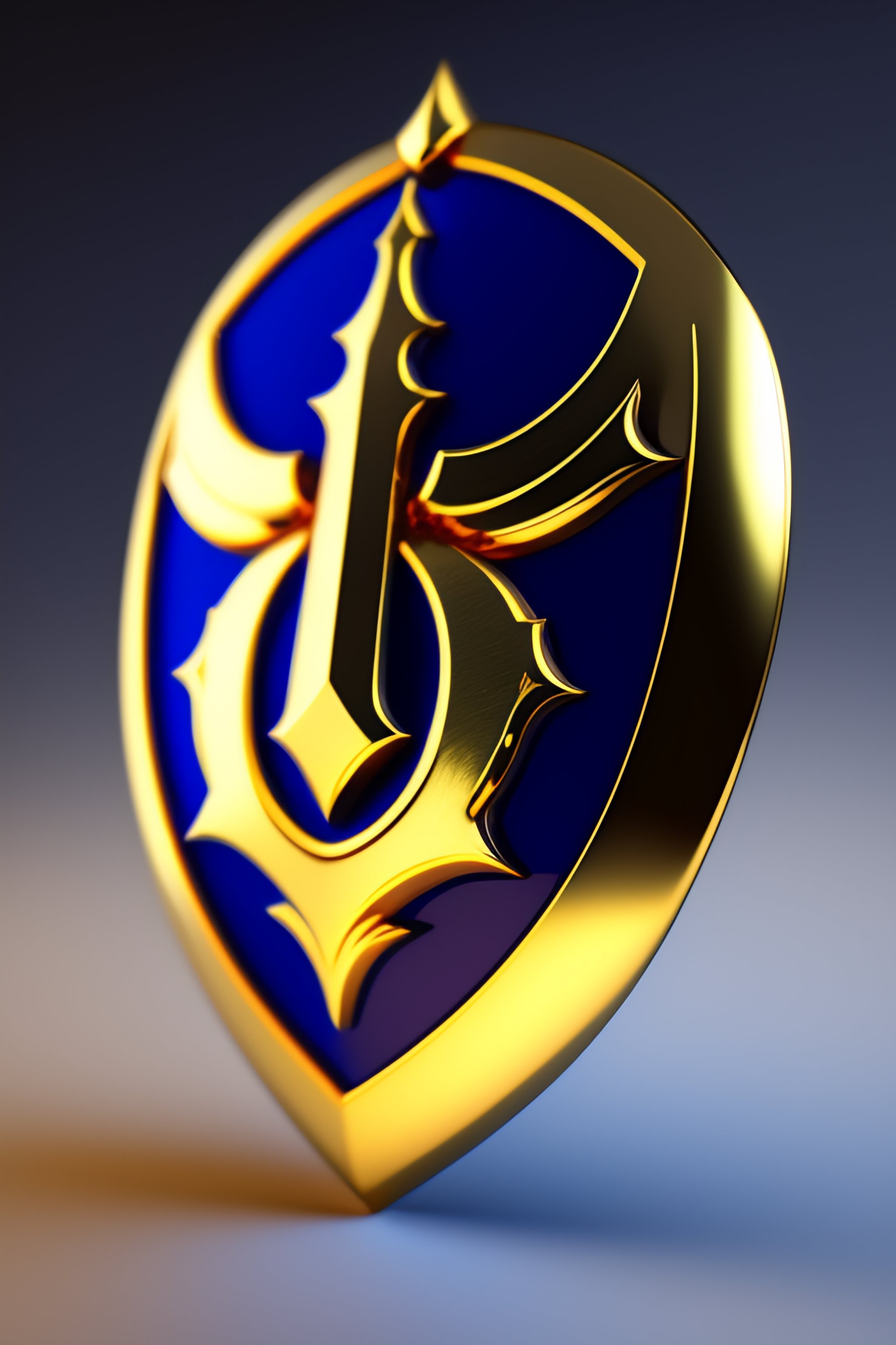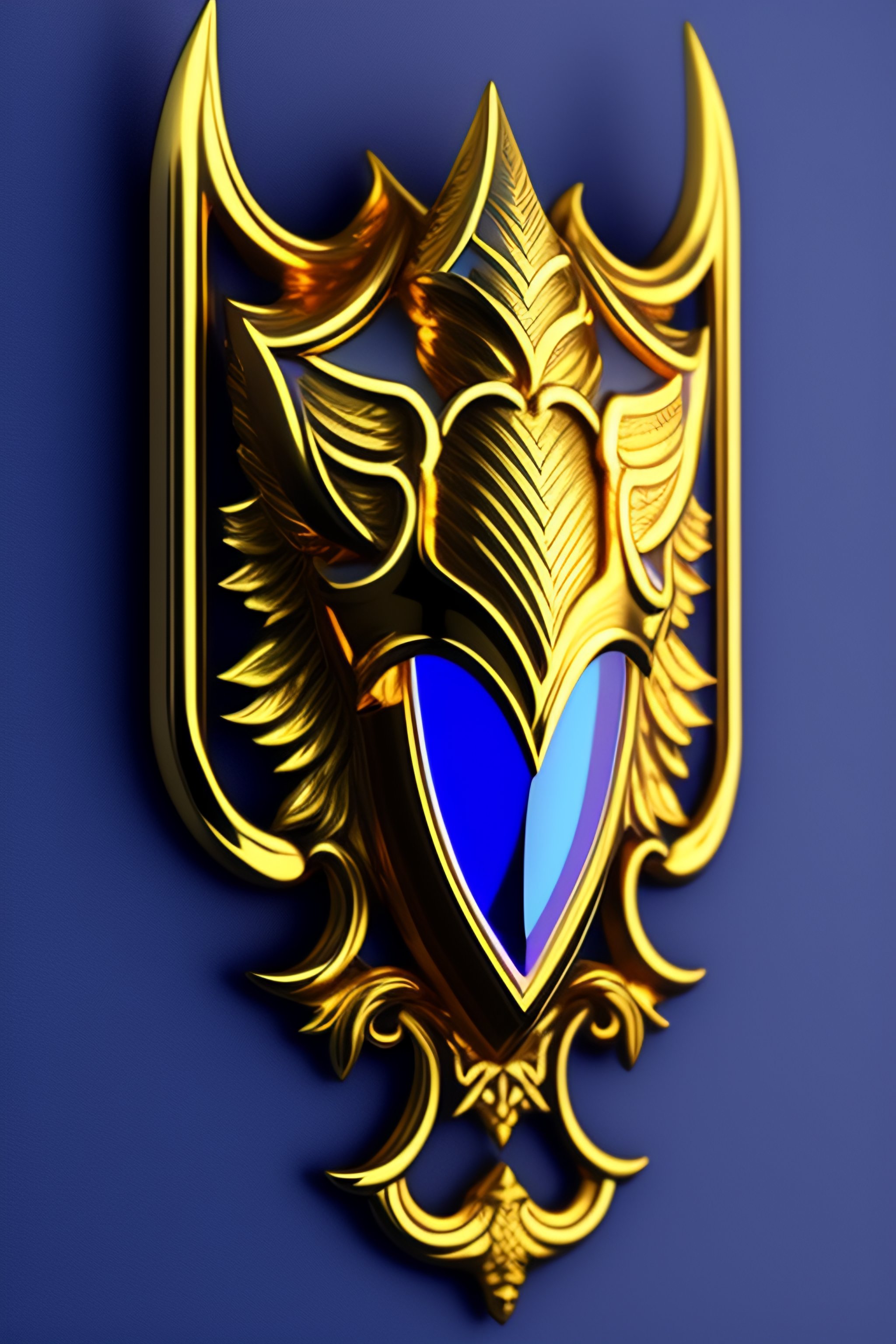 A gothic golden shield logo high fantasy in gold and blue, highly detailed, front view, transparent background, flat light