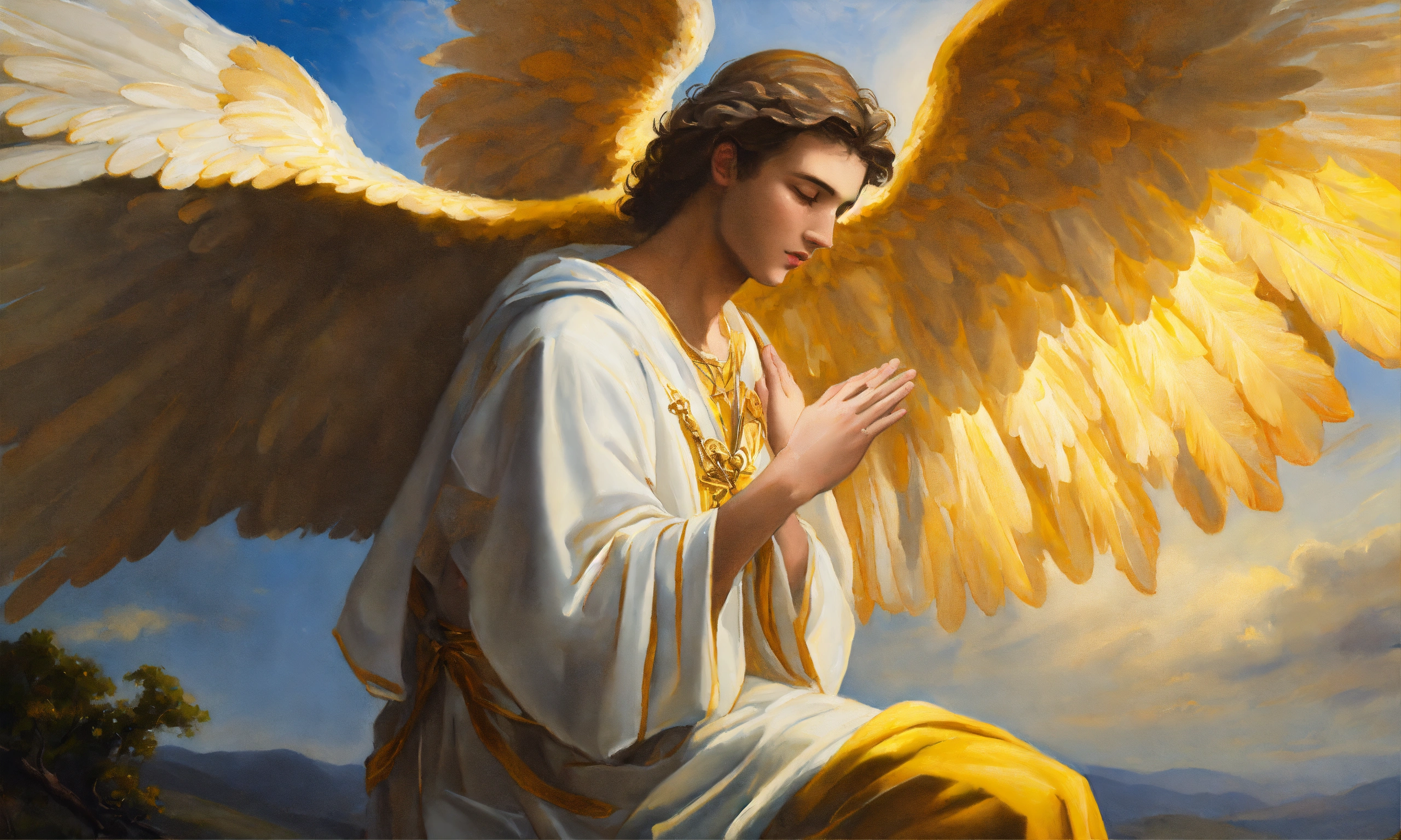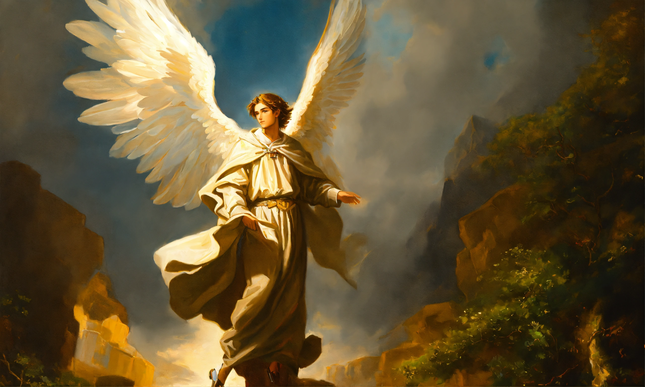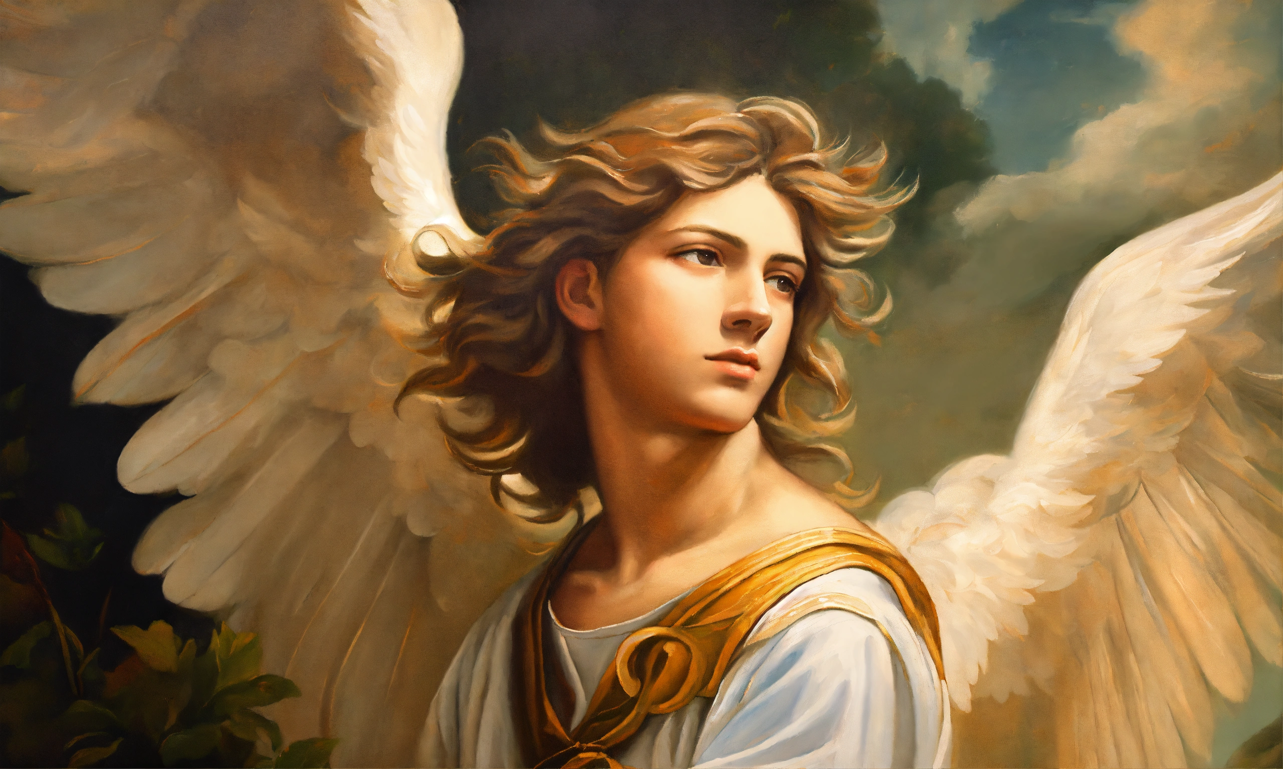 Oil painting of angel saint gabriel