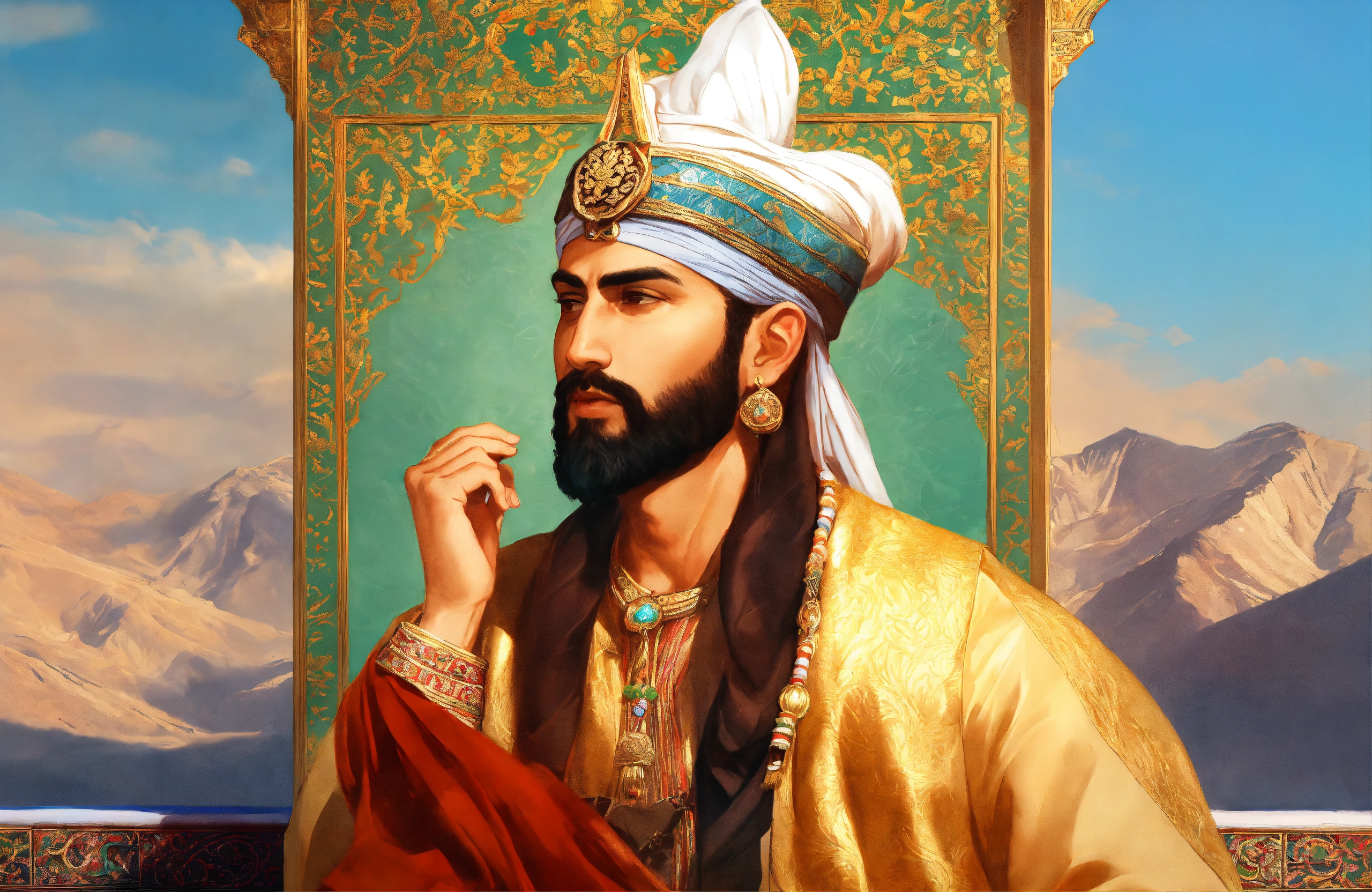 Portret, 5k, cinematic, epic, very realistic, zahir ad-din muhammad babur, is a descendant of tamerlane, a central asian commander, poet and statesman. padishah of india and afghanistan. founder of the baburid dynasty and empire