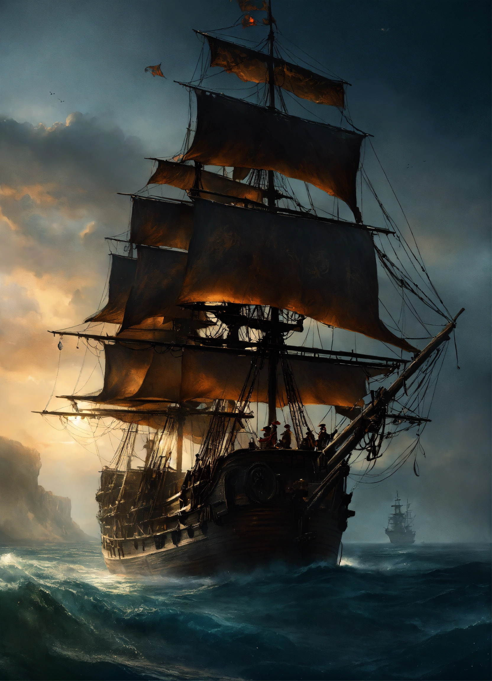 Breathtaking epic pirate movie poster, closer up, 16 century, colonial, bahamas, dark ambient, art by greg rutkowski, charlie bowater, artstation, highly detailed, magic the gathering art, fantasy, 4k