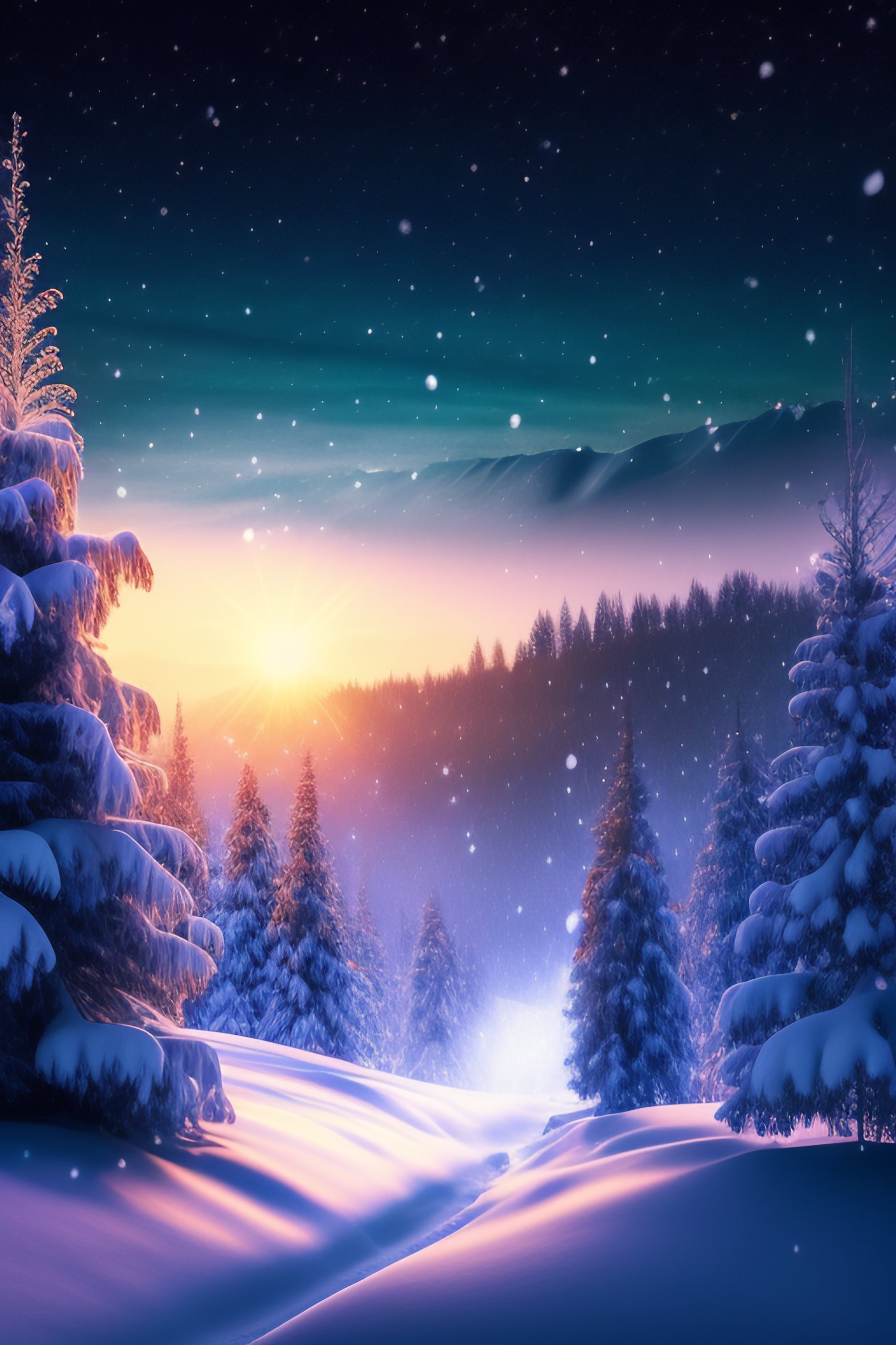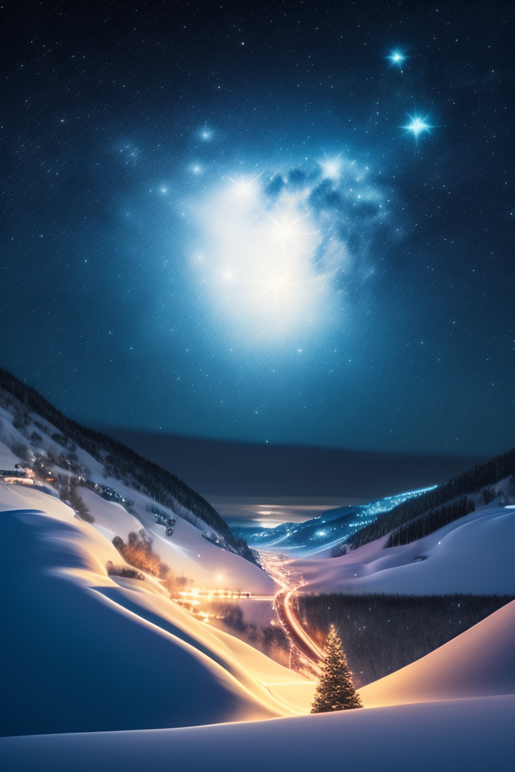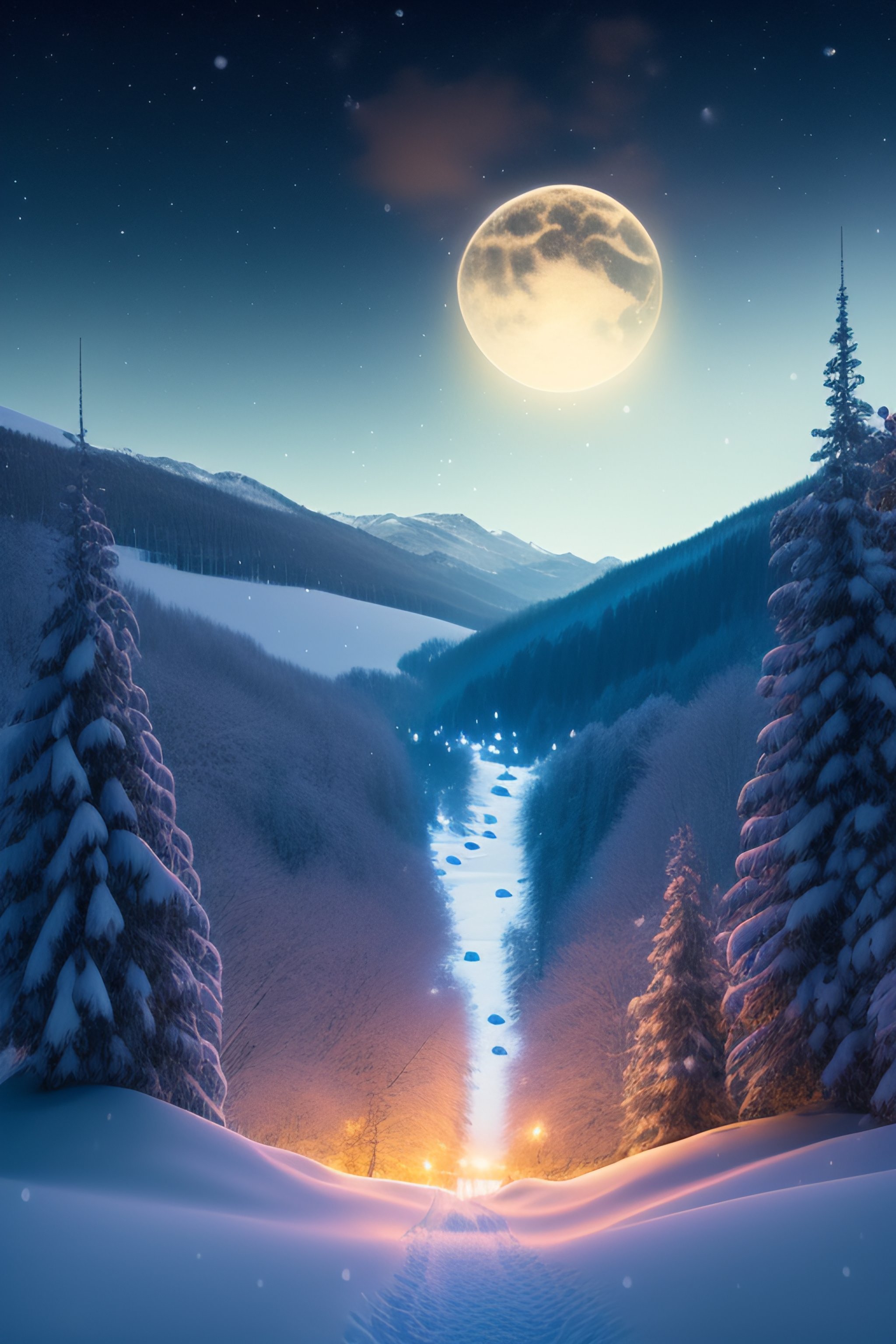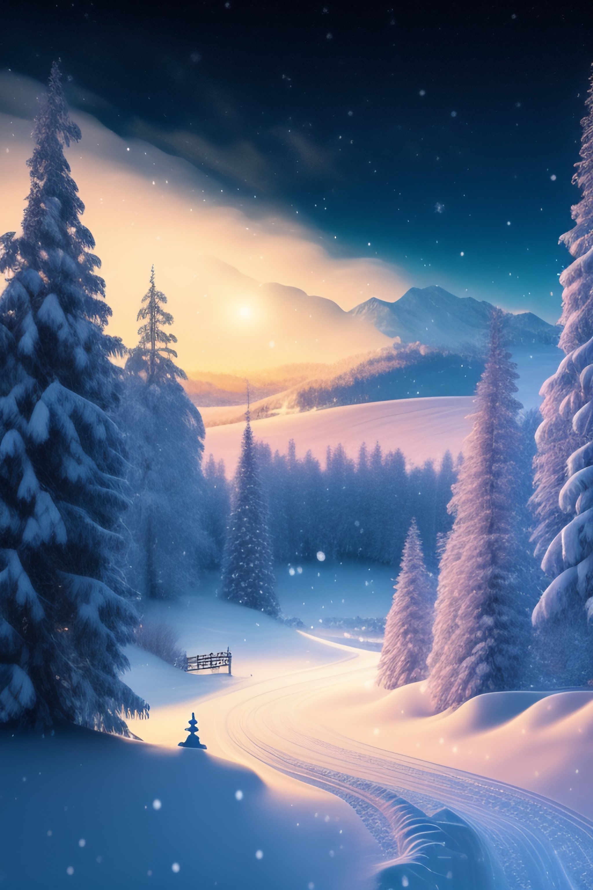 Christmas night the month stars fall snow