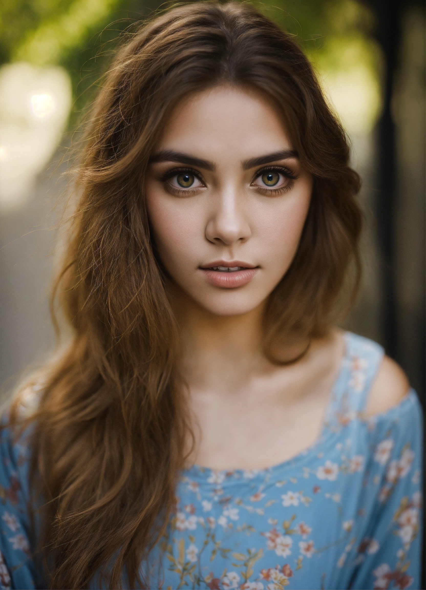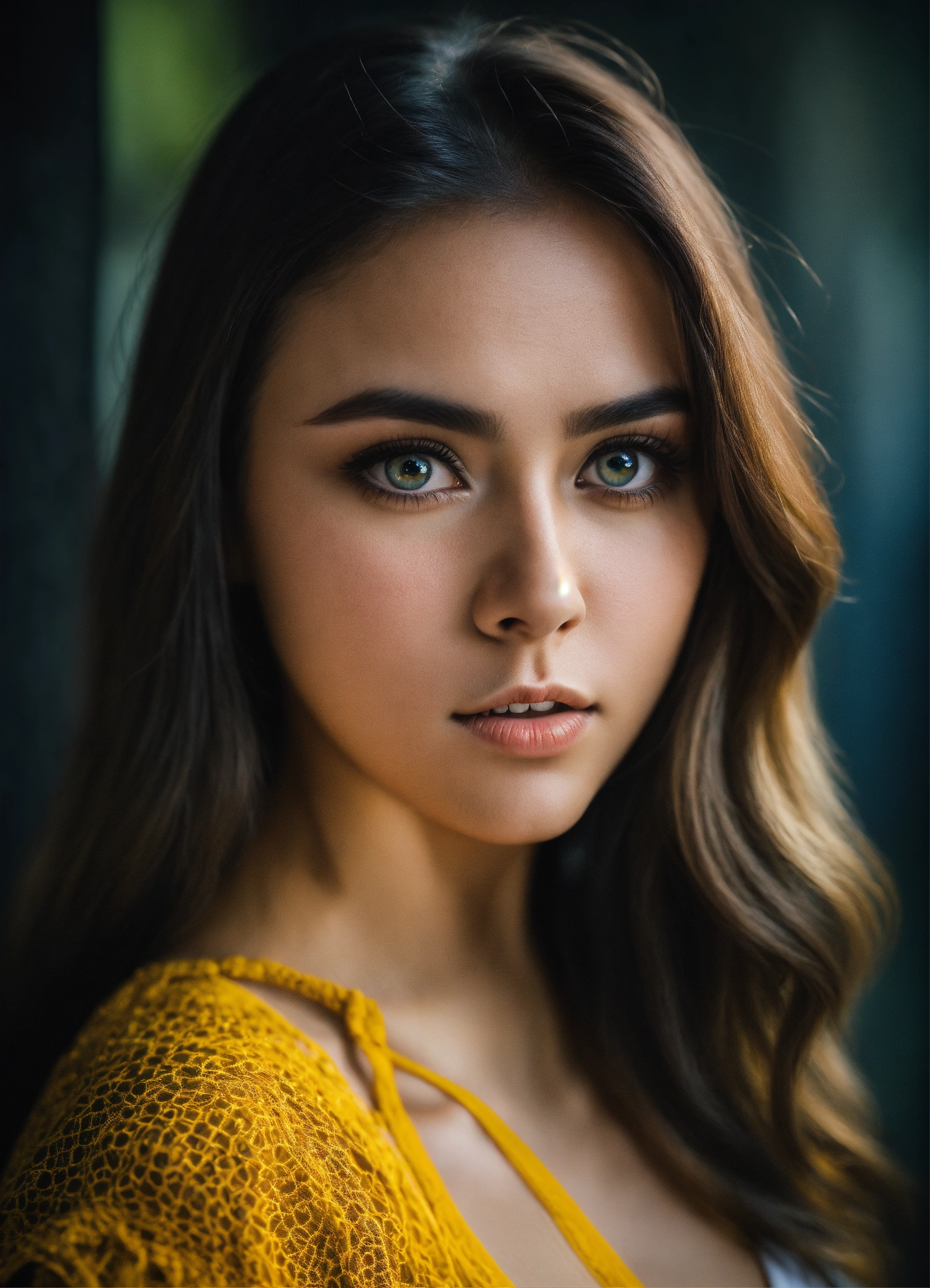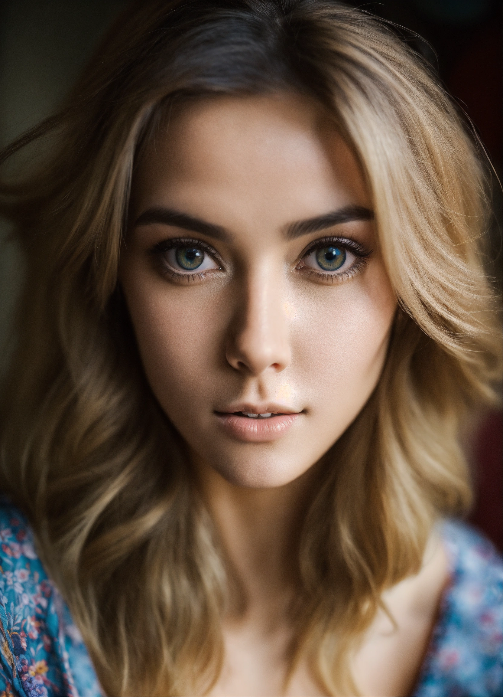 Portrait of a beautiful woman with big expressive eyes looking at the camera for photography